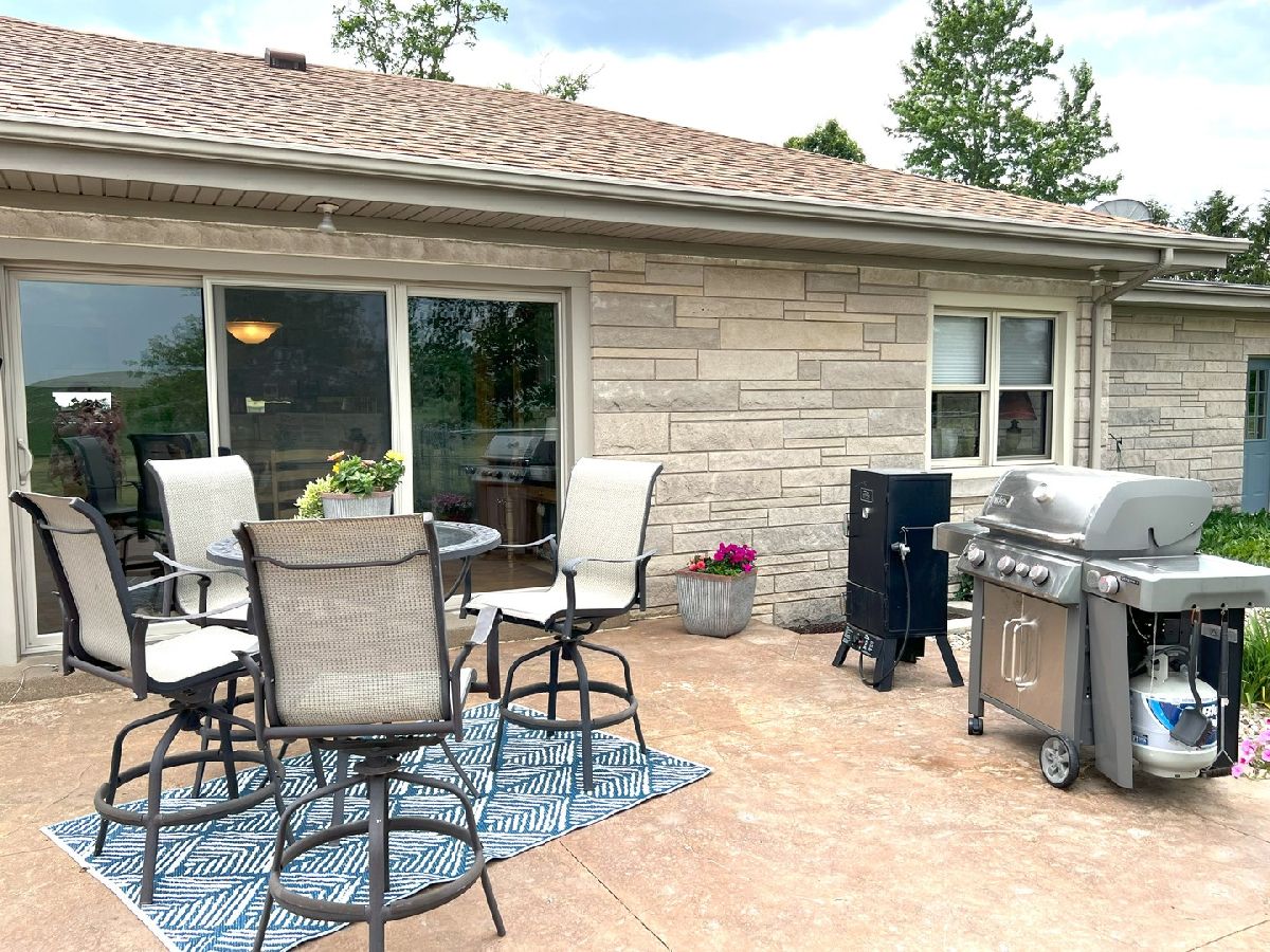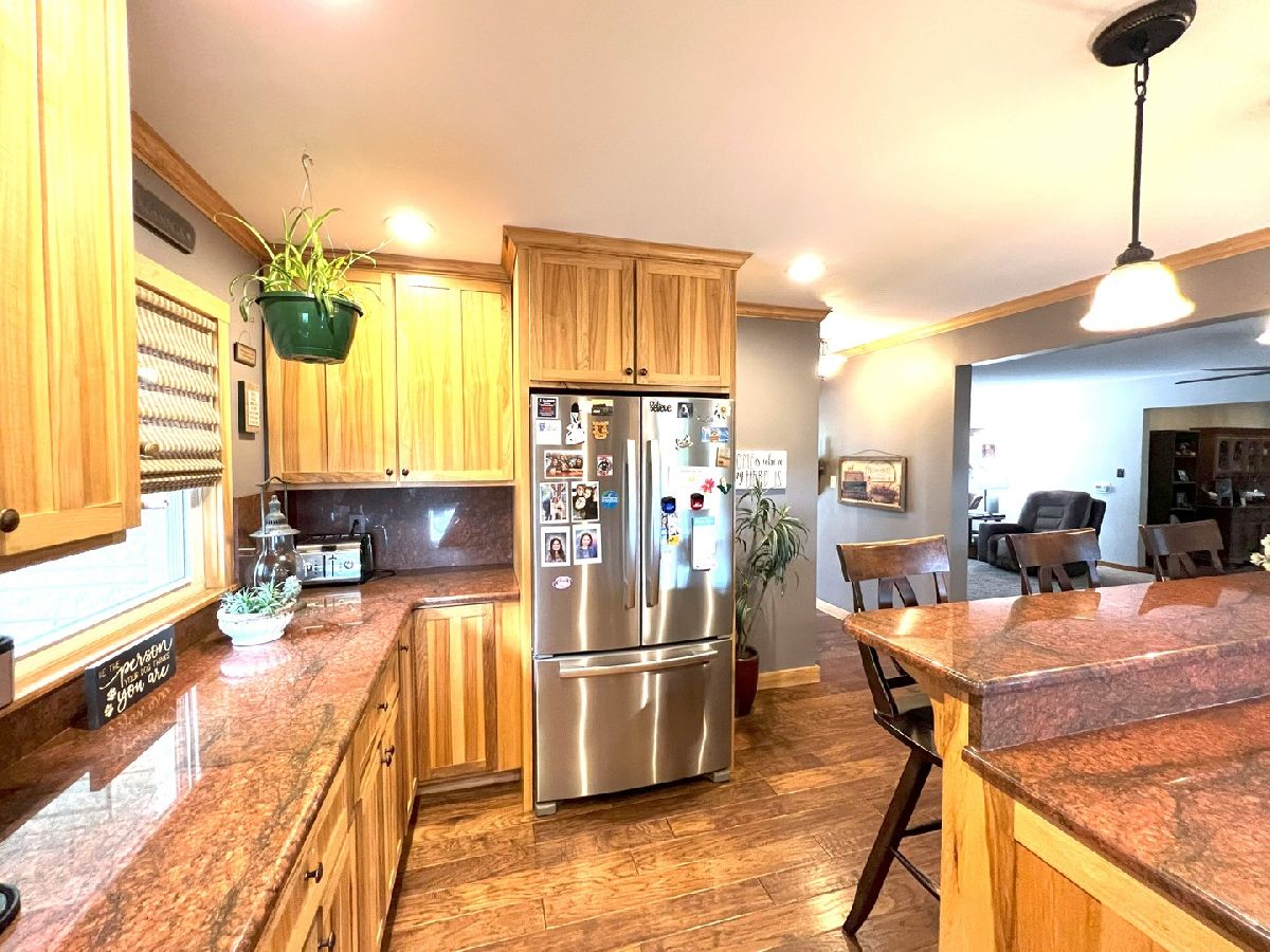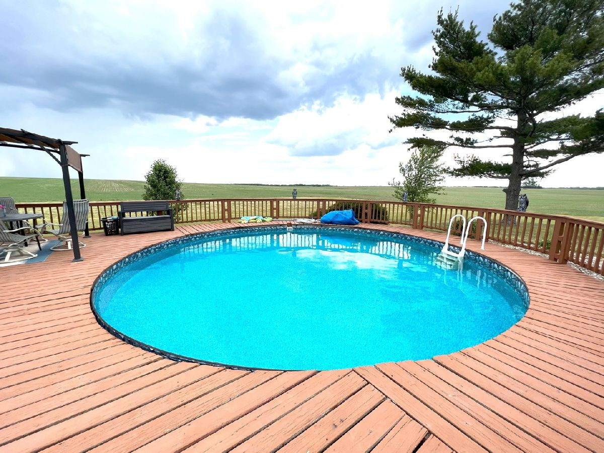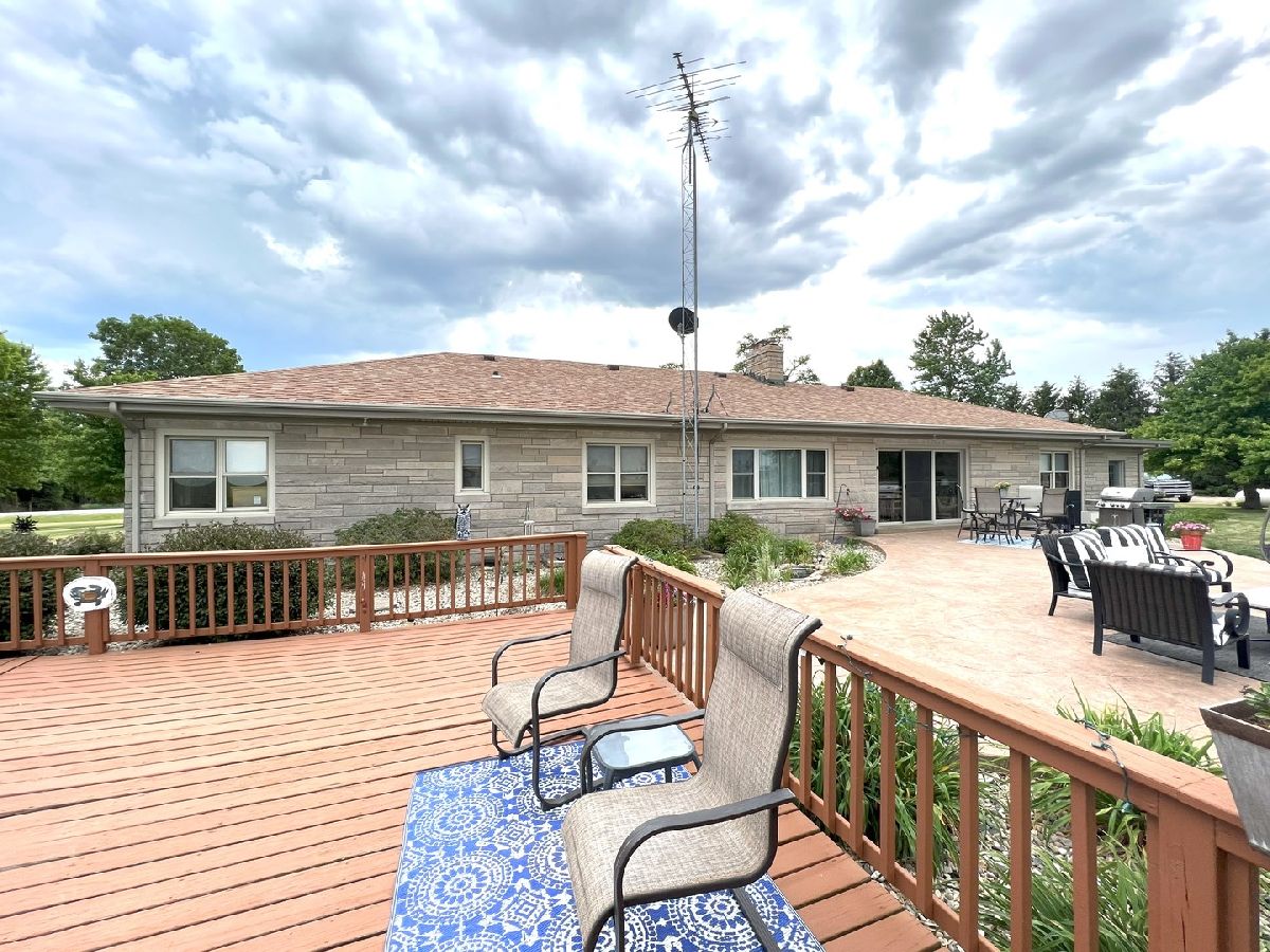 Looking For Something Really Special? Serene Country Views With Quick Access To Needed Amenities. Room To Roam With Almost 2900 Sq Ft Plus A full Basement Sitting On 3.52 Acres. Attractive Bedford Stone Exterior With Haydite Block Interior Walls - This Is A Solid Built Home! Inviting Enclosed Front Porch Leads To A large Entry Way With Bedrooms On One Side Of The Home And All The Living Spaces And Office For Two On The Other Side. Warm Hardwood Floors In The Bedrooms, Office, Kitchen, And Dining Room. Nice Sized Bedrooms With Built Ins And An Updated Bath In Between Which Includes A Walk In Shower. The Master Bedroom Is Quite Large And The Master Bath Has A 6Ft Soaking Tub, Double Sinks, Built In Vanity, And An Amazing Tiled Shower With Dual Shower Heads That Will Not Disappoint. The Doors And Trim Are Stained Wood, Crown Molding In The Kitchen, Vinyl Plank Wood Look Flooring In Entry & Hallway, And Wood Look Ceramic In The Baths. The Living Room And Basement Family Room Both Have Wood Burning Fireplaces With Lovely Stone Work. The Office Easily Works For 2 With Built In Desks & Cabinets Galore. Kitchen Remodel Includes Custom Hickory Soft Close Cabinets, Granite Tops, Stainless Appliances, Pantry W/Pull Out Shelving, Abundant Work Space, Bar W/Seating For 3 or 4, Two Sets Of Corner Windows & Another Window Provide A Super Sunny Spot For Your Morning Routine. Huge Laundry Room W/Half Bath & Storage Leads To The Basement And To The Garage. The Basement Has Vinyl Plank Flooring In the Family Room, A Mechanical Room & Others, Also a 31 x 34 Room Of Potential Future Finishable Space With A Painted Floor & Nice Sized Storage Closet. Let's Head Outside To The Grain Bin Pool W/A New Liner And Deck All The Way Around With A Pergola Too - Very Enjoyable Space! There's A Fenced In Area For Your Fur Babies. Lots Of Nice Spaces To Sit Outside On The Stamped Concrete Patio With Fireplace. There's An Additional Concrete Pad Set Up For Basketball But Would Also Be A Good Spot To Add A Second Garage Or Out Building. Complete With A One Year Home Warranty. Make Your Move Towards Country Living Today!