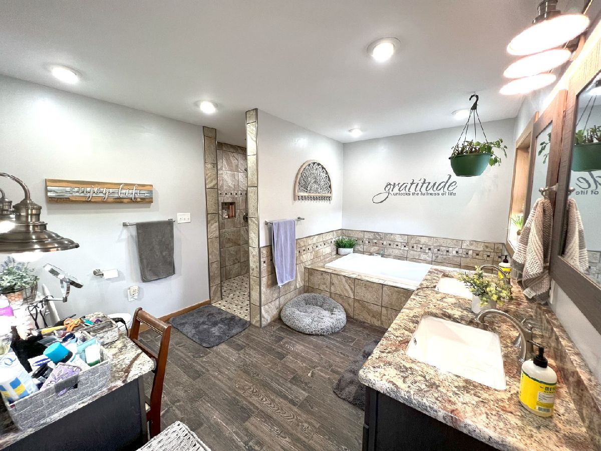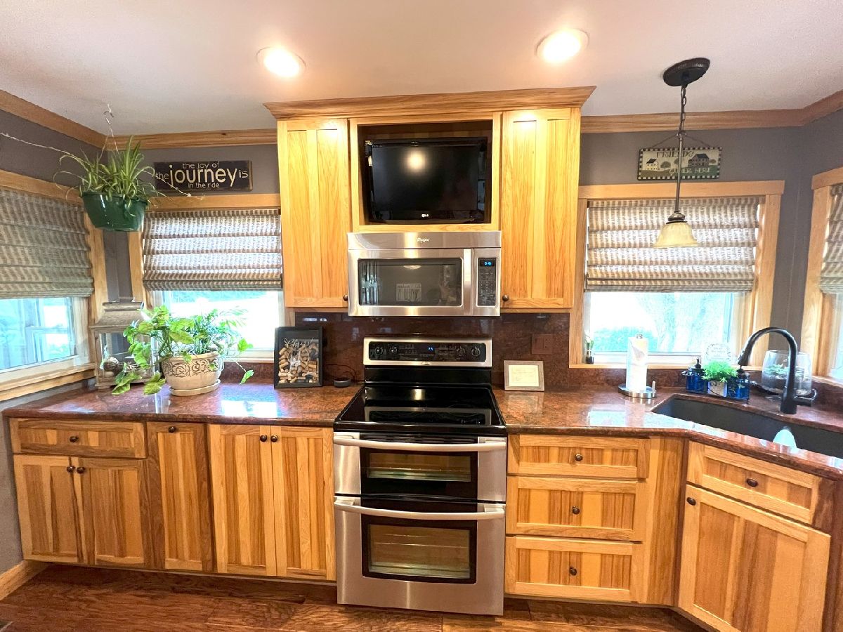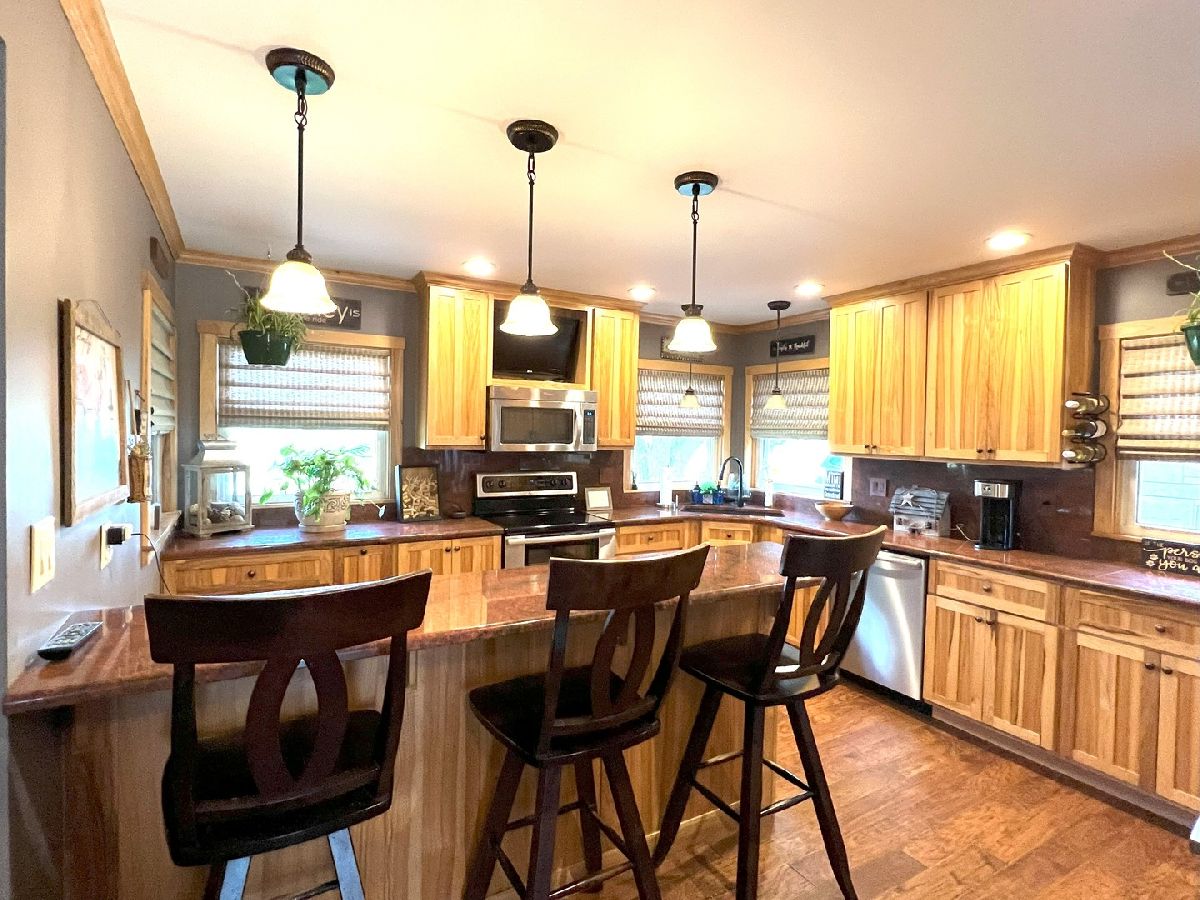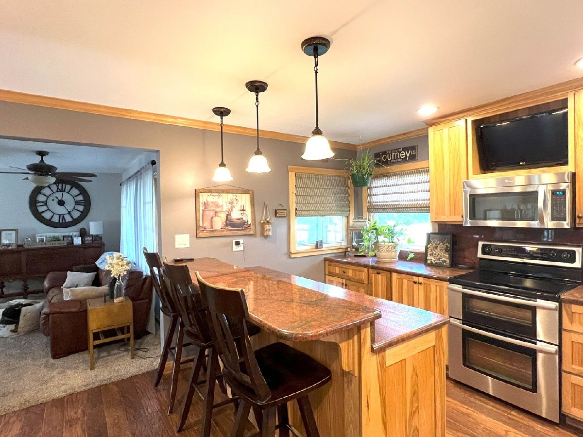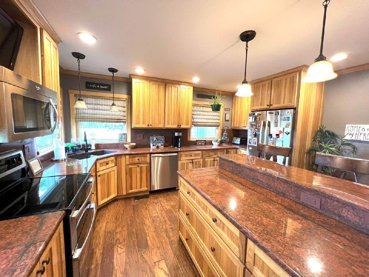 Looking For Something Really Special? Serene Country Views With Quick Access To Needed Amenities. Room To Roam With Almost 2900 Sq Ft Plus A full Basement Sitting On 3.52 Acres. Attractive Bedford Stone Exterior With Haydite Block Interior Walls - This Is A Solid Built Home! Inviting Enclosed Front Porch Leads To A large Entry Way With Bedrooms On One Side Of The Home And All The Living Spaces And Office For Two On The Other Side. Warm Hardwood Floors In The Bedrooms, Office, Kitchen, And Dining Room. Nice Sized Bedrooms With Built Ins And An Updated Bath In Between Which Includes A Walk In Shower. The Master Bedroom Is Quite Large And The Master Bath Has A 6Ft Soaking Tub, Double Sinks, Built In Vanity, And An Amazing Tiled Shower With Dual Shower Heads That Will Not Disappoint. The Doors And Trim Are Stained Wood, Crown Molding In The Kitchen, Vinyl Plank Wood Look Flooring In Entry & Hallway, And Wood Look Ceramic In The Baths. The Living Room And Basement Family Room Both Have Wood Burning Fireplaces With Lovely Stone Work. The Office Easily Works For 2 With Built In Desks & Cabinets Galore. Kitchen Remodel Includes Custom Hickory Soft Close Cabinets, Granite Tops, Stainless Appliances, Pantry W/Pull Out Shelving, Abundant Work Space, Bar W/Seating For 3 or 4, Two Sets Of Corner Windows & Another Window Provide A Super Sunny Spot For Your Morning Routine. Huge Laundry Room W/Half Bath & Storage Leads To The Basement And To The Garage. The Basement Has Vinyl Plank Flooring In the Family Room, A Mechanical Room & Others, Also a 31 x 34 Room Of Potential Future Finishable Space With A Painted Floor & Nice Sized Storage Closet. Let's Head Outside To The Grain Bin Pool W/A New Liner And Deck All The Way Around With A Pergola Too - Very Enjoyable Space! There's A Fenced In Area For Your Fur Babies. Lots Of Nice Spaces To Sit Outside On The Stamped Concrete Patio With Fireplace. There's An Additional Concrete Pad Set Up For Basketball But Would Also Be A Good Spot To Add A Second Garage Or Out Building. Complete With A One Year Home Warranty. Make Your Move Towards Country Living Today!