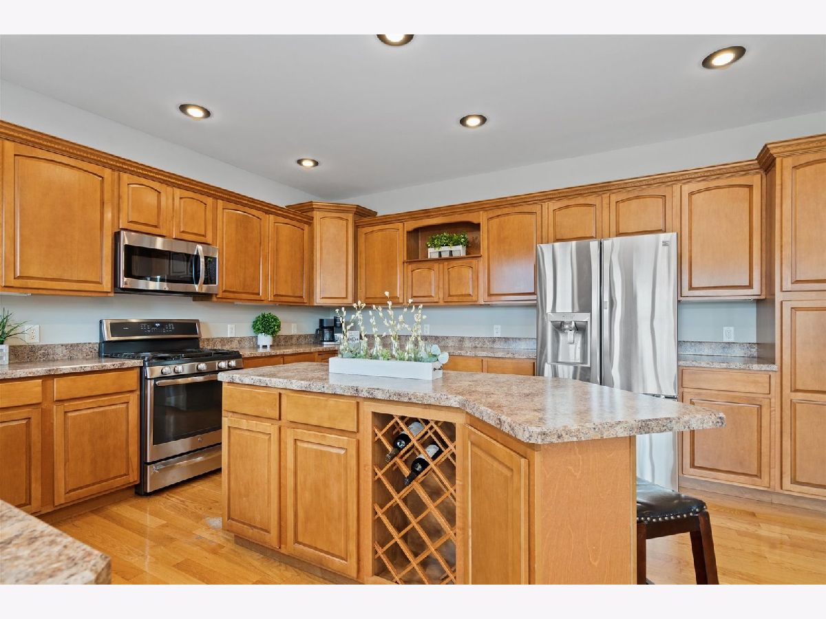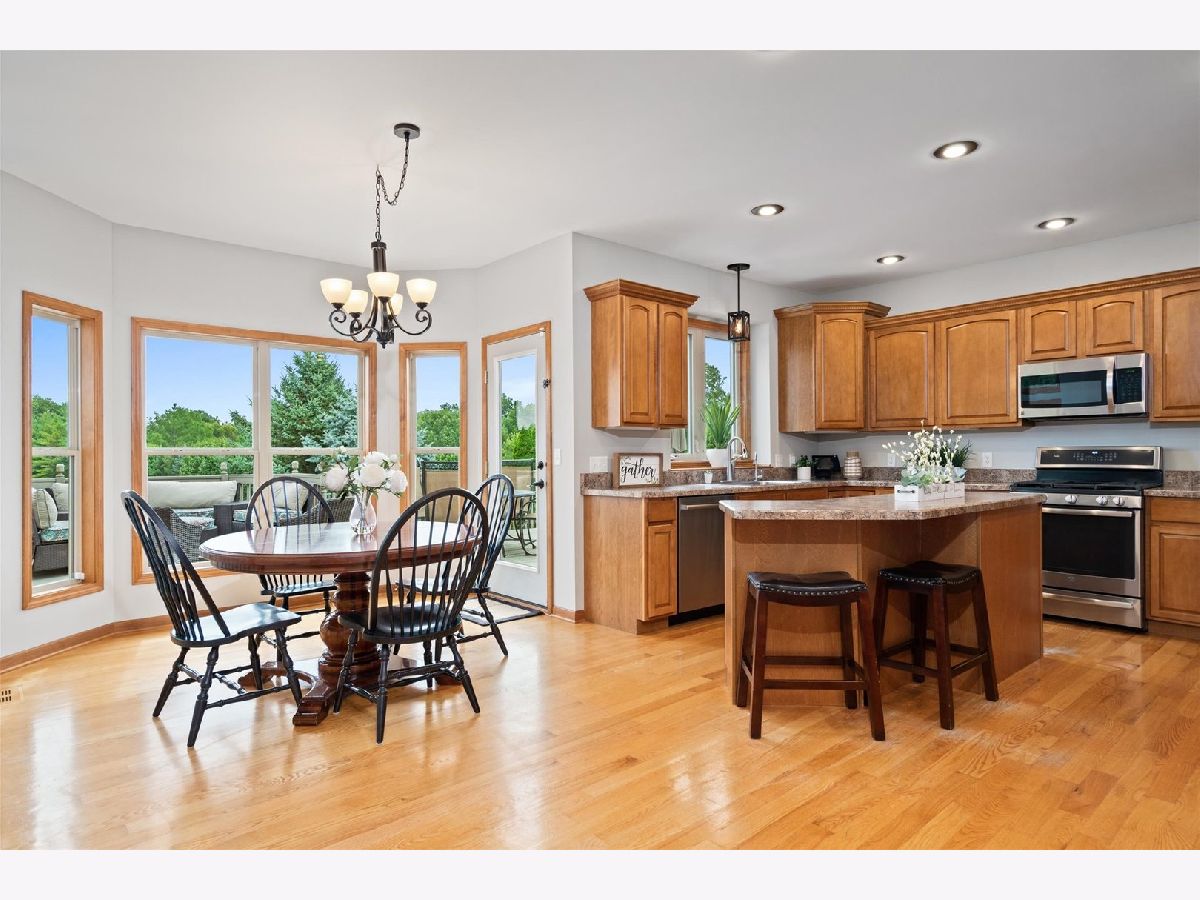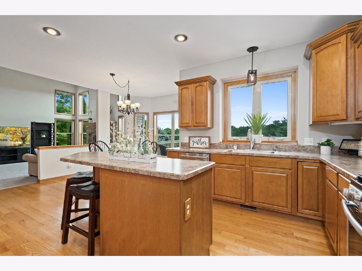 It's not too late to enjoy all the summer fun you'll have in this fenced-in backyard oasis w/ plenty of areas to entertain on your raised deck, patio & quaint firepit area. Nestled on an interior, premium lot w/ mature landscaping, this quality built beauty showcases over 4700 square feet of finished living space! A grand foyer, ornate columns and hardwood floors welcome you. Formal living and dining room w /tray ceilings. This very bright kitchen boasts abundant canned lighting, custom staggered cabinetry w/crown molding, an elongated island w/wine rack, SS appliances- a newer stove (2020), a lovely plant shelf, and a sunny, breakfast area where you can enjoy those pond views while sipping your morning coffee. This beauty also has a massive two-story family room which features a soaring wall of windows and a decorative fireplace w/ custom mantle. Superb area for entertaining your loved ones! Pretty French doors open to roomy office w/ built-in shelving... ideal for working remotely. Take either staircase to second floor where you will find an elegant master suite w/ luxurious private bath and large walk-in closet. Bedrooms 2, 3 and 4 have roomy closets too. Check out the professionally WALKOUT, FINISHED BASEMENT! You will love the SECOND kitchen/ bar, media area/ w SECOND fireplace, recreational area (great area for pool table), a gymnasium w/ rubber matting (could be used a 5th bedroom) and a full bath. FOUR CAR GARAGE w/ cabinets & shelving. Get ready to fall in love with those sunsets and spectacular views of the pond. Best views in Heartland Circle. New paint throughout (2022). New carpet in office, den and basement (2022). Water heater replaced in 2016, Additional features: RO filtered water system, Ring doorbell w/ backyard camera, basketball hoop with lighting, Barska biometric wall safe and hot tub stays! Home Warranty included too! Enjoy all the amenities that Yorkville has to offer like the Silver Springs State Park, Fox River, Marge Cline Whitewater Rapids, Forest Preserves, Kiddie Themed Parks, Raging Waves Waterpark, the quaint downtown w/ yearly festivals, local shopping and restaurants. Make this beauty your home today! Welcome Home!