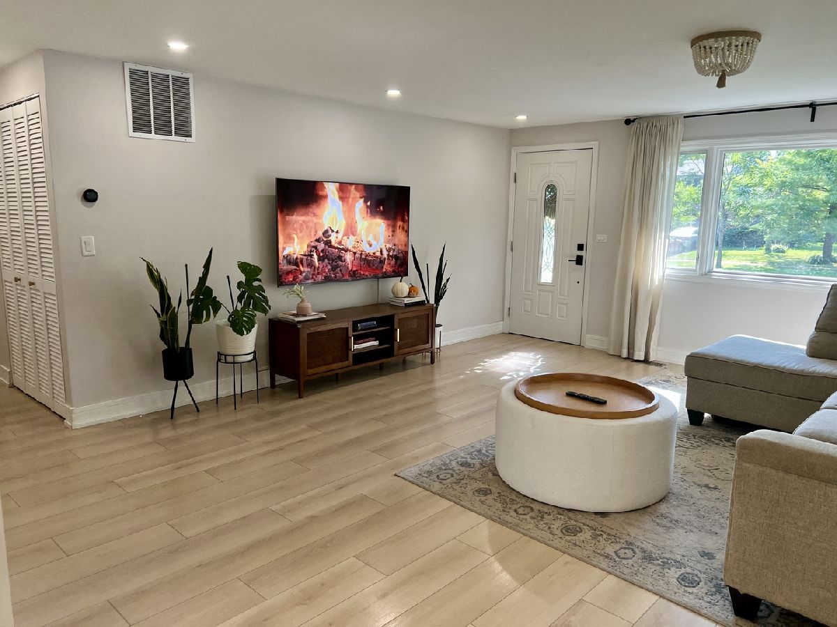 Beautifully updated ranch in Schaumburg's desirable Weathersfield subdivision! This move-in ready home features a stunning renovated kitchen with modern cabinetry, quartz counters, and all new stainless steel appliances. Fresh luxury laminate flooring flows seamlessly throughout the home, complementing the bright, open floor plan. Recent improvements include new furnace, A/C, hot water heater, wood fence, and Pella windows. Spacious living and dining areas are filled with natural light, while the main floor laundry and 1.5 baths add everyday convenience. Freshly painted inside and out, this home offers stylish updates with nothing to do but move in and enjoy.