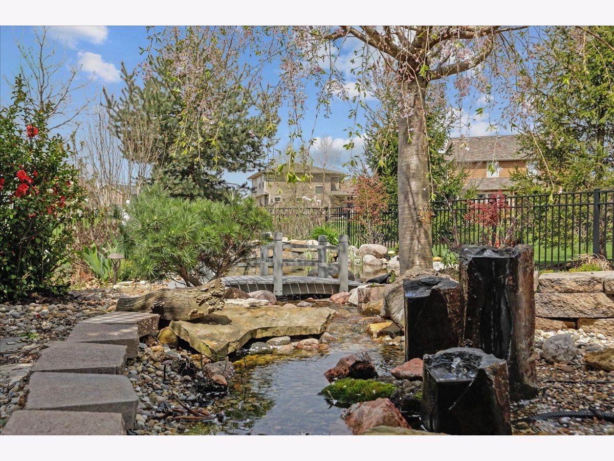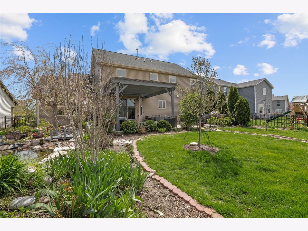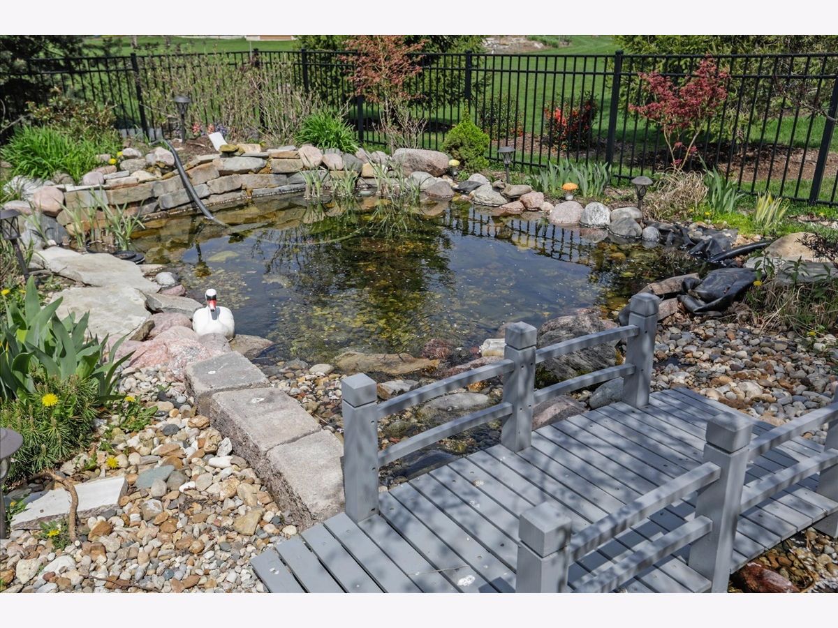Better than new! This well-loved and meticulously maintained home is the Remington floor plan by Armstrong Construction. Features welcoming covered front porch, open concept main floor with hand tinted hardwood floors throughout. Large great room with custom fireplace, built-in bookshelves, and vaulted ceiling. Formal dining room with bay windows give you lovely views of the front gardens. Spacious eat-in kitchen with extended views of the backyard gardens. Make meals to remember in this chef's kitchen with large island, spacious pantry, granite countertops, and stainless-steel appliances including new dishwasher (2020) and French door refrigerator (2021). Hardwood butterfly staircase leads to the second floor featuring the master suite with cathedral ceiling, huge walk-in closet, and ensuite bath with dual vanities, soaker tub and separate shower. Three additional bedrooms, full bath, with double sink and separate bath and commode. Easy access to 2nd floor laundry room. Enjoy family movie nights in the full finished basement complete with 85" Sony HD TV, plus, full bath, 5th bedroom and plenty of storage space. HVAC includes a whole house humidifier, and newly installed UV germicidal light (2021) to keep your family comfortable and healthy. Mud room access from the 3-car tandem garage complete with drop-zone lockers. You will feel like you are always on vacation in the backyard resort like oasis that offers privacy and an extra-large patio for friends and family to gather. Professionally designed landscape, fully fenced and surrounded with mature trees and lush perennials that were well-tended by a master gardener. Relax to the sound of your private pond with natural custom built filtration system and fountains leading to a stream coursing under a mini bridge into your fishpond, with frequent visits from local ducks (but no geese), you will never want to leave home. New roof in 2020. Don't hesitate to schedule a showing, this one will not last. Property backs up to a common area.