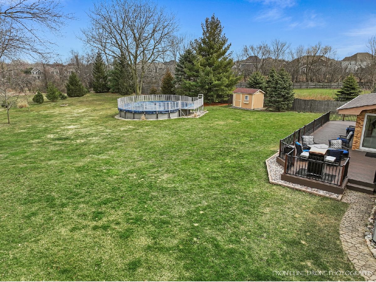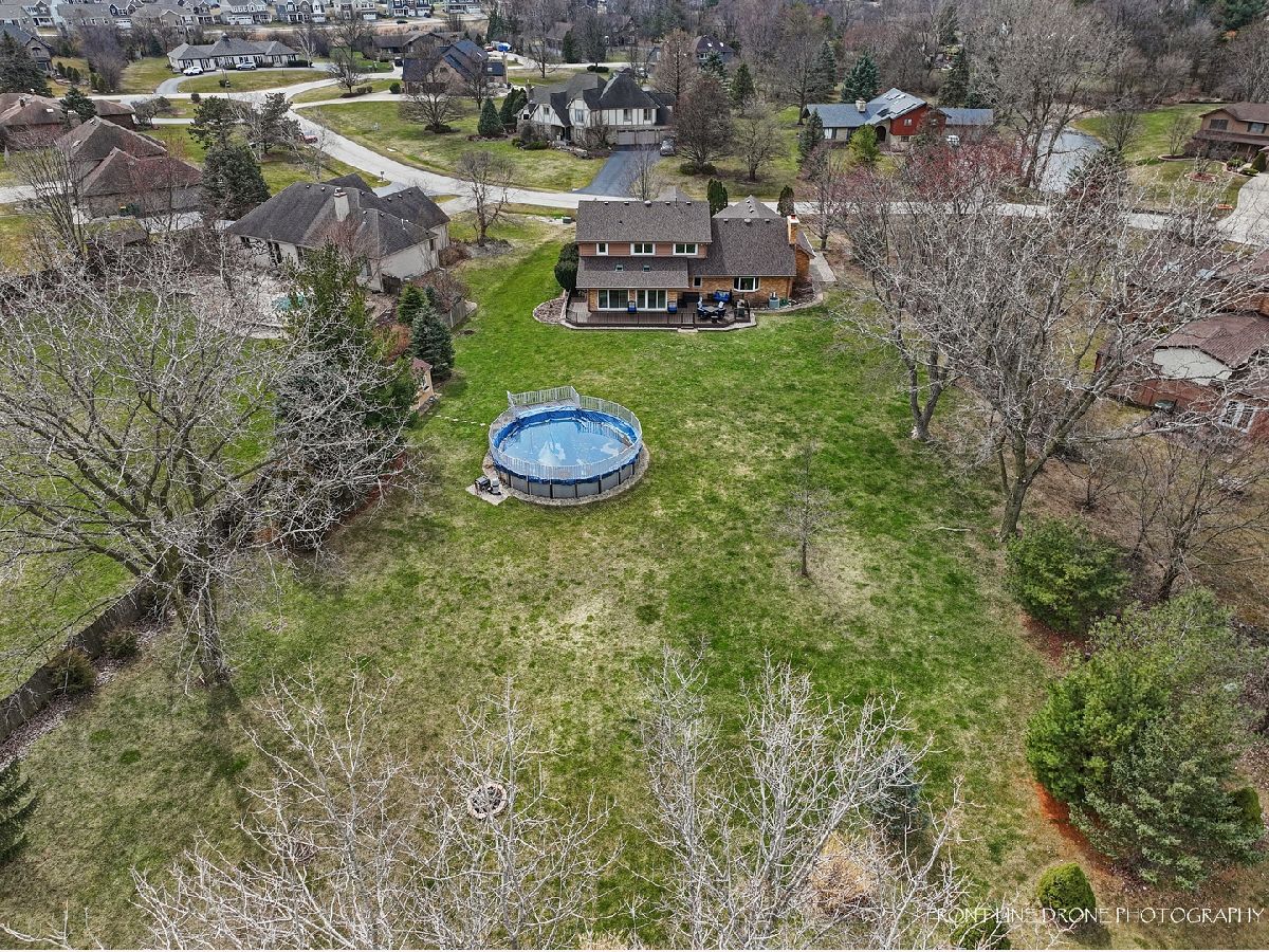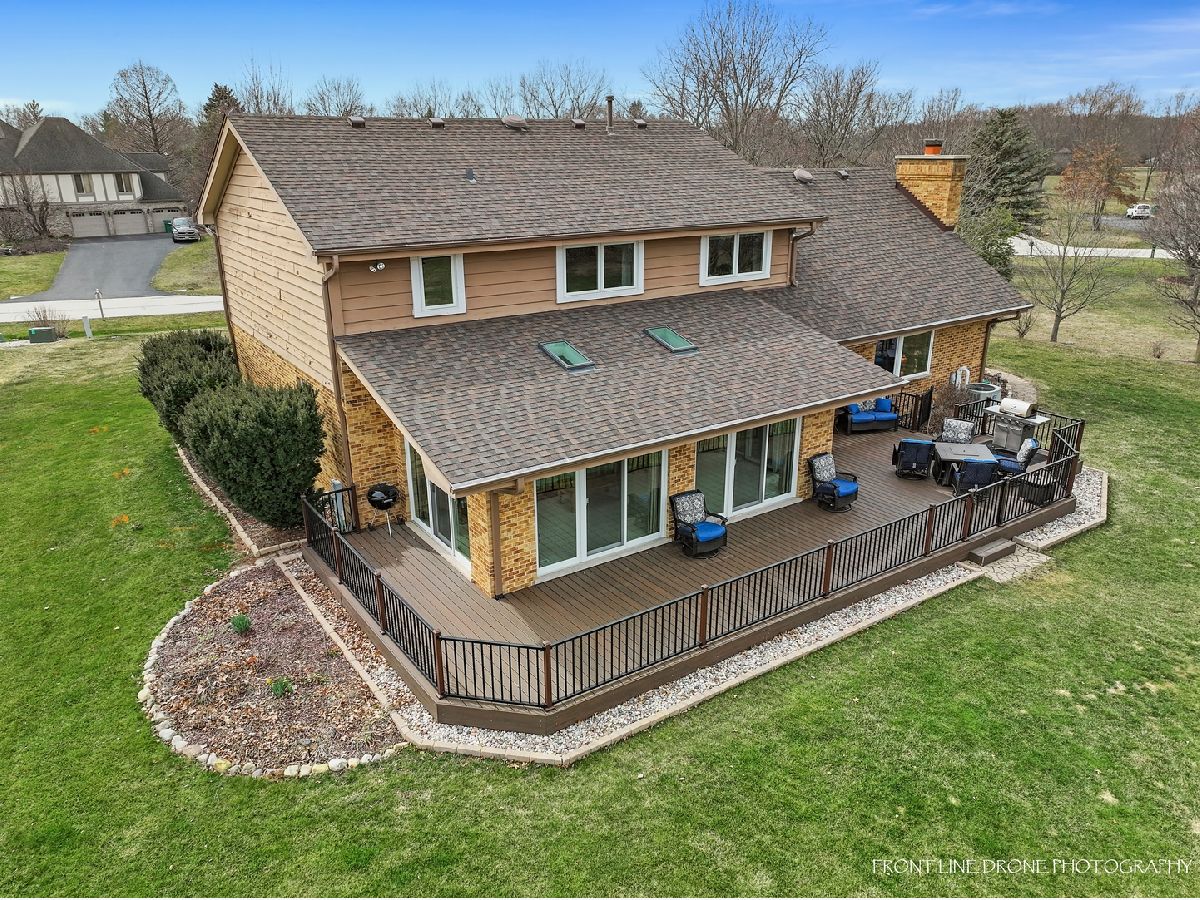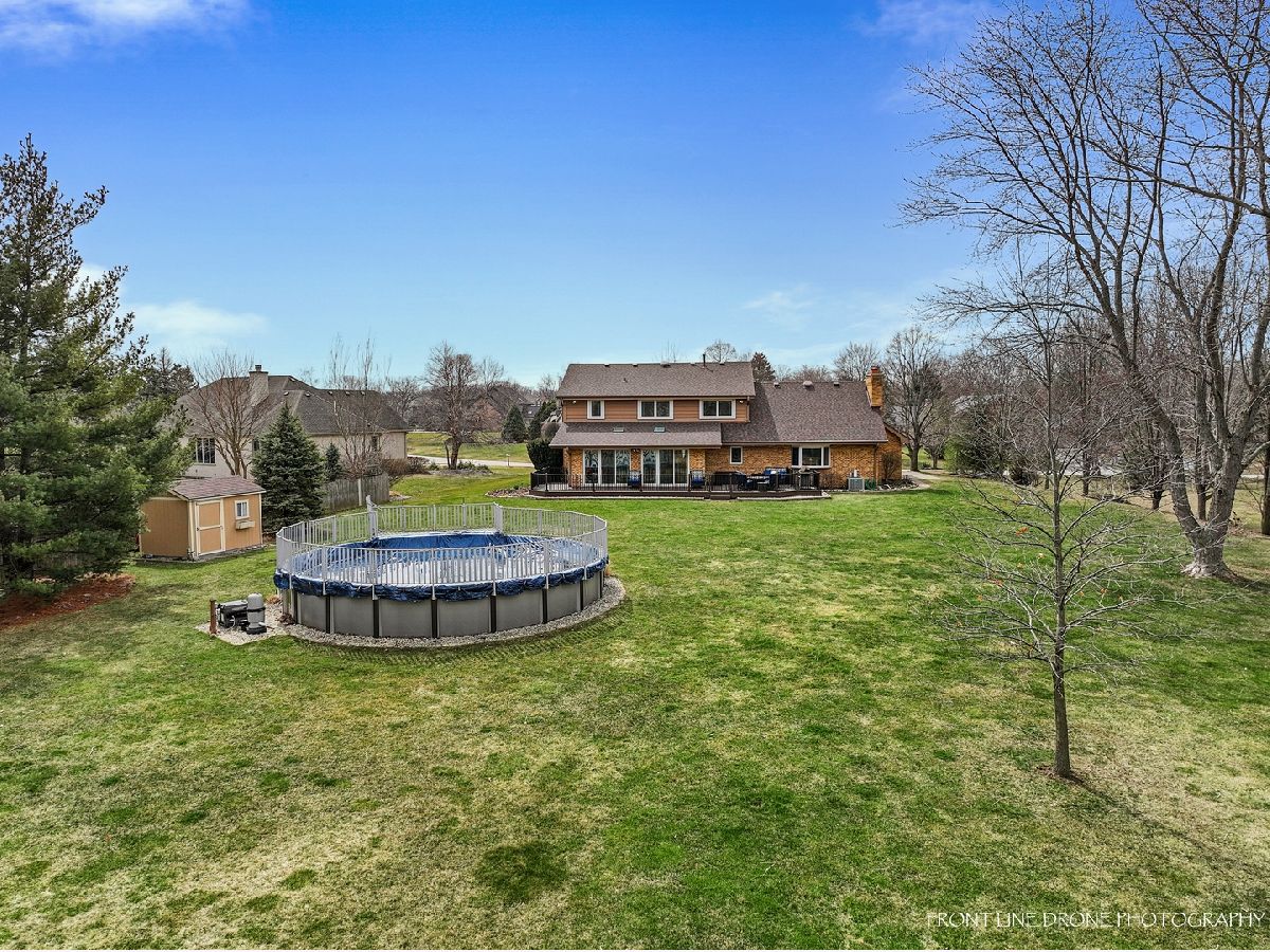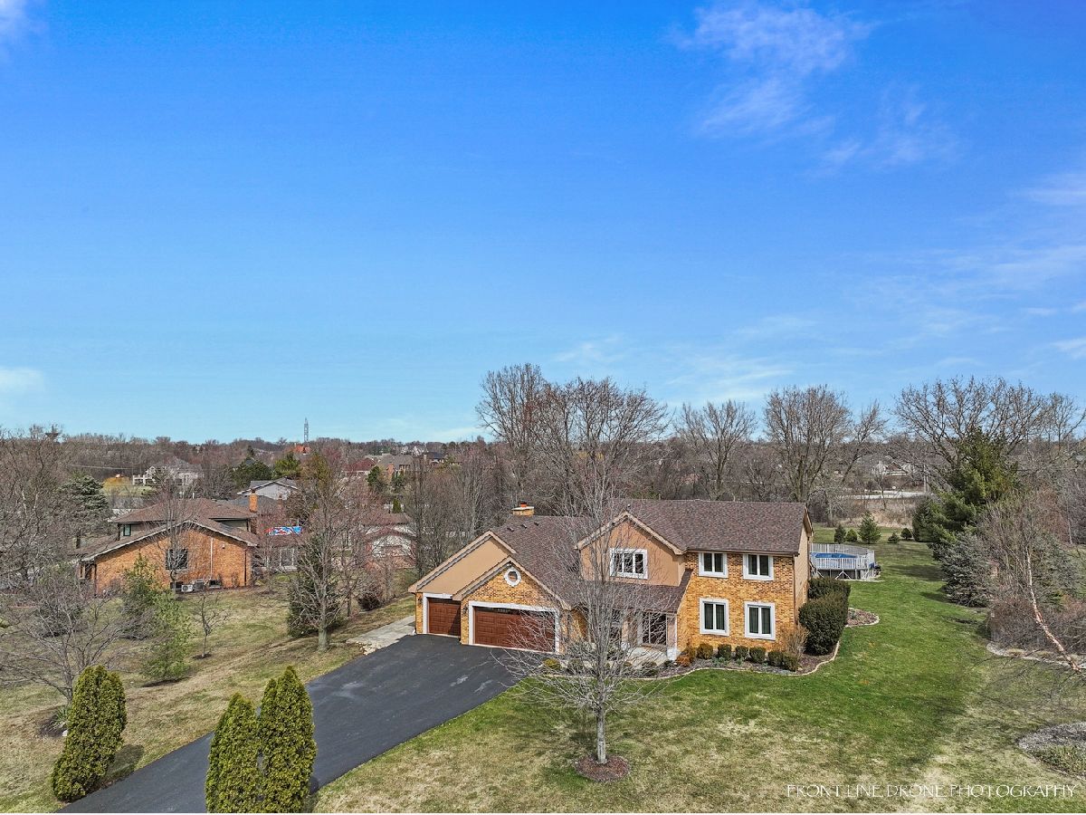This beautiful and spacious 4 bedroom and 2.5 bathroom home in Lemont has many desirable features and is a must see! Step into the spacious foyer with a large coat closet and hardwood floors. The first-floor office is perfect for those who work from home or need a quiet space to relax. The expansive eat-in kitchen is perfect for cooking and entertaining which offers great cabinet space, pantry, hardwood floors, stainless steel Whirlpool appliances (2019), and french doors that lead to the sunroom that provides additional living space and brings in plenty of natural light with newer sliding doors (2019) and skylights (2020). Enjoy a cozy fire from the floor to ceiling brick fireplace with gas logs and starter. Other features on the first floor include a dining room, living room, half bathroom, and laundry/mud room with utility sink, cabinet space and brand new Whirlpool washer and dryer (2023). Take the gorgeous hardwood staircase with newer carpet runner (2022) upstairs to 4 generous sized bedrooms all with durable luxury vinyl flooring (2022). The large master bedroom provides a luxurious retreat, with walk-in closet, oversized vanity, separate shower and jetted tub. The 3 additional bedrooms offer ample closet space. Full bathroom with tiled shower and spacious vanity completes the second floor. The massive finished basement is a great bonus space for a home gym or media room and tons of extra storage space. A 3-car garage is perfect for those who need extra storage or have multiple vehicles. The private .96-acre lot provides plenty of space for outdoor activities and privacy. Enjoy your summers entertaining on the wrap around Trex deck (2021) with lighting and the above-ground heated pool that adds a fun and refreshing touch to the backyard. This home features many upgrades with roof/gutters (2020), HVAC (2014), Hot water heater (2014), Basement windows (2022), all windows upstairs except bay window (2019). Additional features include, ring doorbell, security system with 5 cameras, invisible fence, central humidifier, Illinois American water, and shed. Lemont Blue Ribbon school districts.