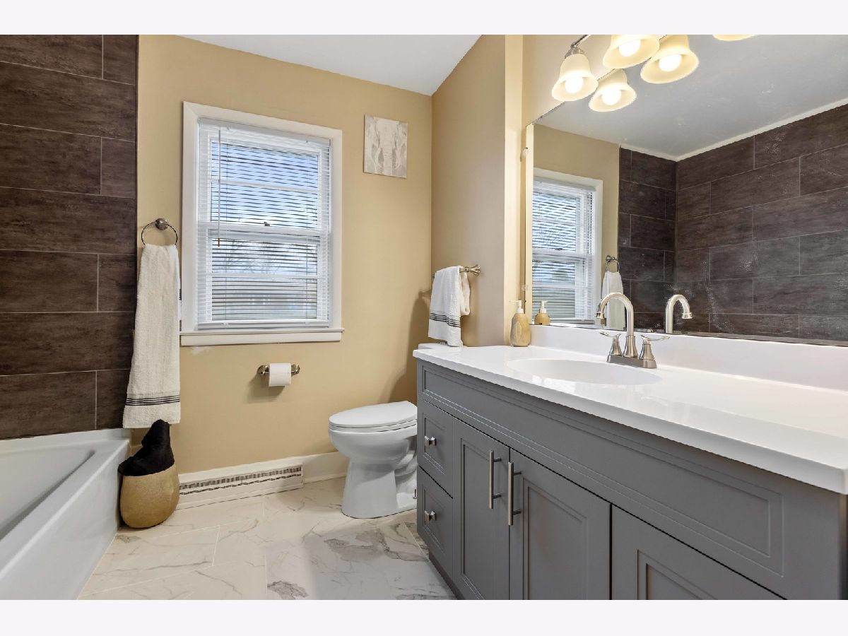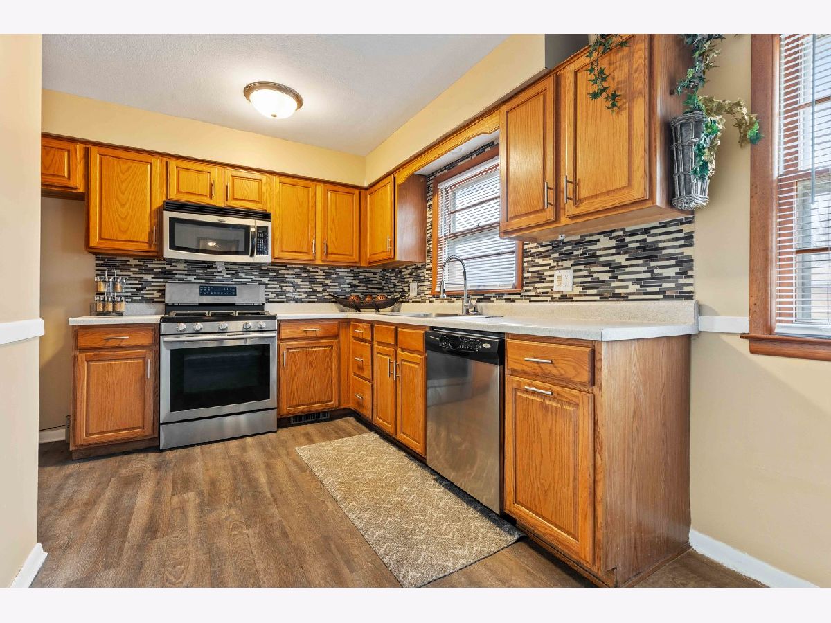Welcome home! Move-in ready ranch home with 3 bedrooms, 2 bathrooms and 2.5-car garage on quiet cul-de-sac! Light and bright living room with brick accent wall and hardwood floors. Eat-in kitchen has stainless steel appliances, oak cabinets with new hardware, new vinyl plank flooring and glass tile backslash. All three bedrooms have hardwood flooring. Updated bathroom on main floor with new tile flooring, new tile surround, new toilet and new vanity. Freshly painted, white trim and new light fixtures throughout! Finished basement has new carpet. There is a large rec room that has a wood burning fireplace, bonus room, flex room that would make a great office, laundry room and bathroom. New roof! Water heater replaced in 2019. Fully fenced backyard.