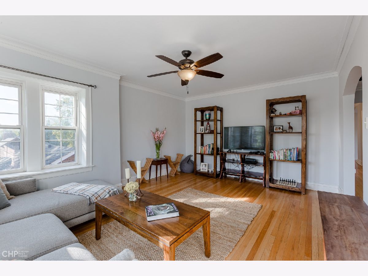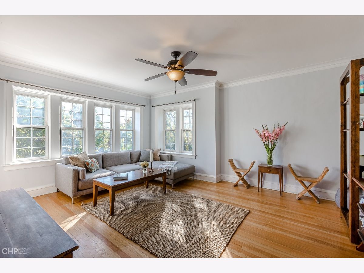Sunny and bright 3 bedroom, 1 bath condo in charming 7 unit vintage building with easy parking on quiet residential street. Enjoy cool summer breezes and gorgeous views from three exposures in this inviting unit with spacious living room and formal dining room along with updated kitchen and bath and hardwood floors. Inviting common patio perfect for quiet summer respite. Conveniently located close to Main Street trains and shops, Washington grade school and new Robert Crown Recreation Center with branch library, ice rinks, baseball and soccer field. Pet friendly and in-unit laundry allowed with board approval.