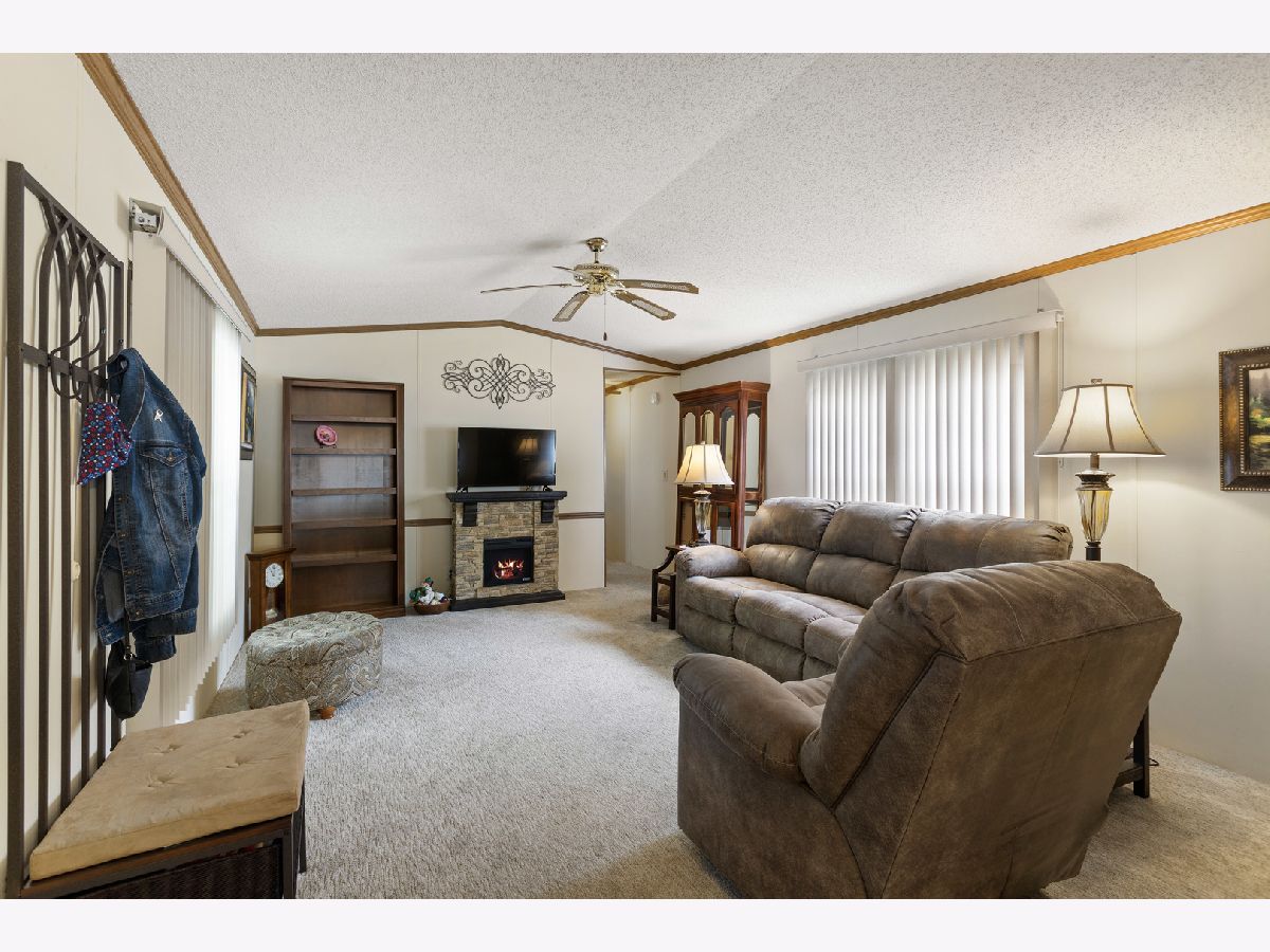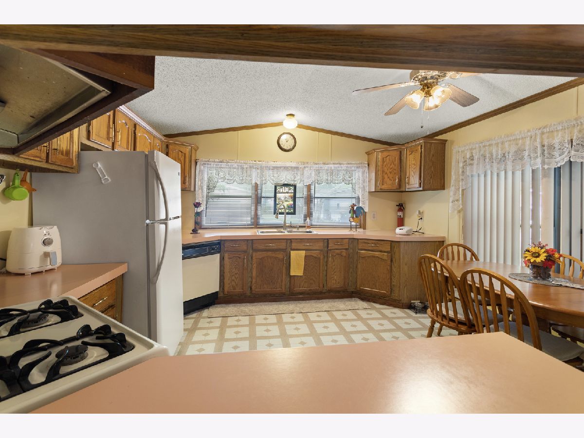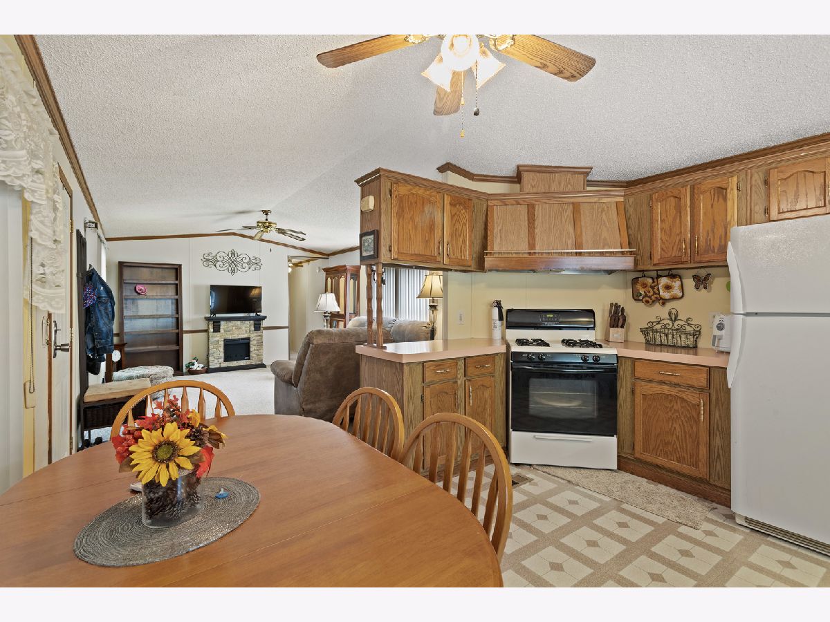Nice 924 sq. ft 2 bedroom home in Poplar Grove's Oak Lawn Park. Quiet residential area to enjoy the country but minutes to Belvidere or Rockford. Large bathroom with double vanity and spacious storage. Open floor concept with living room to kitchen. All appliances stay including washer and dryer. Covered car port with plenty of storage space, plus outdoor shed. Brand new furnace with 10 year warranty. Lot rent $455. Come & Enjoy!