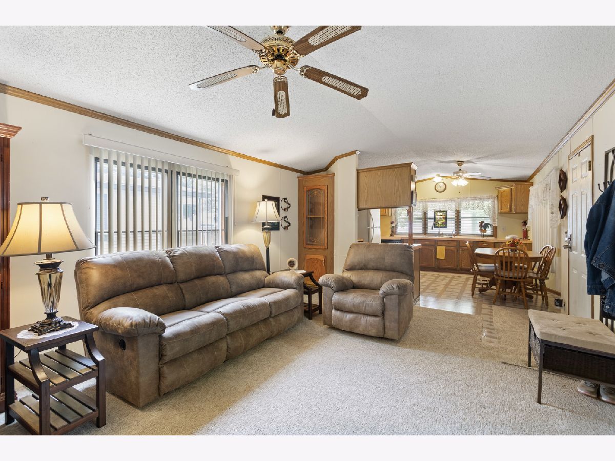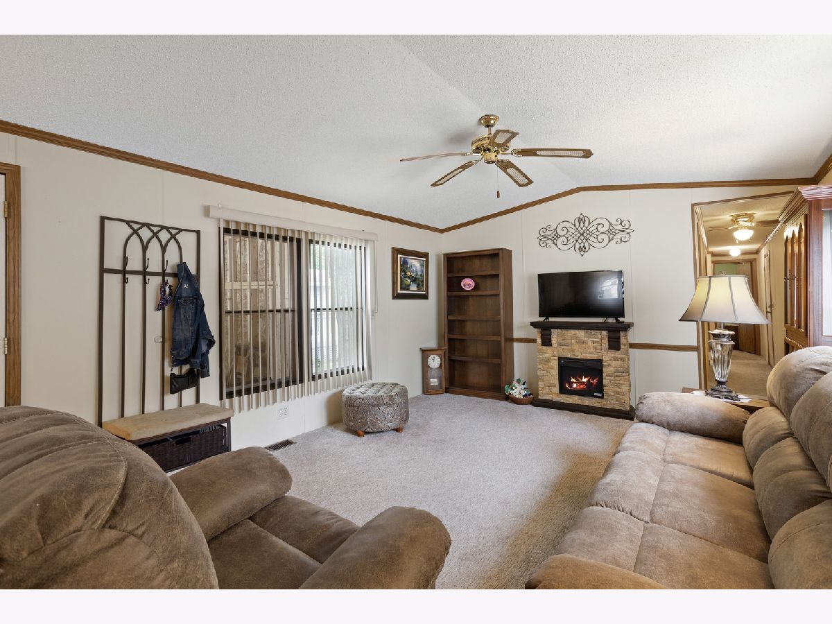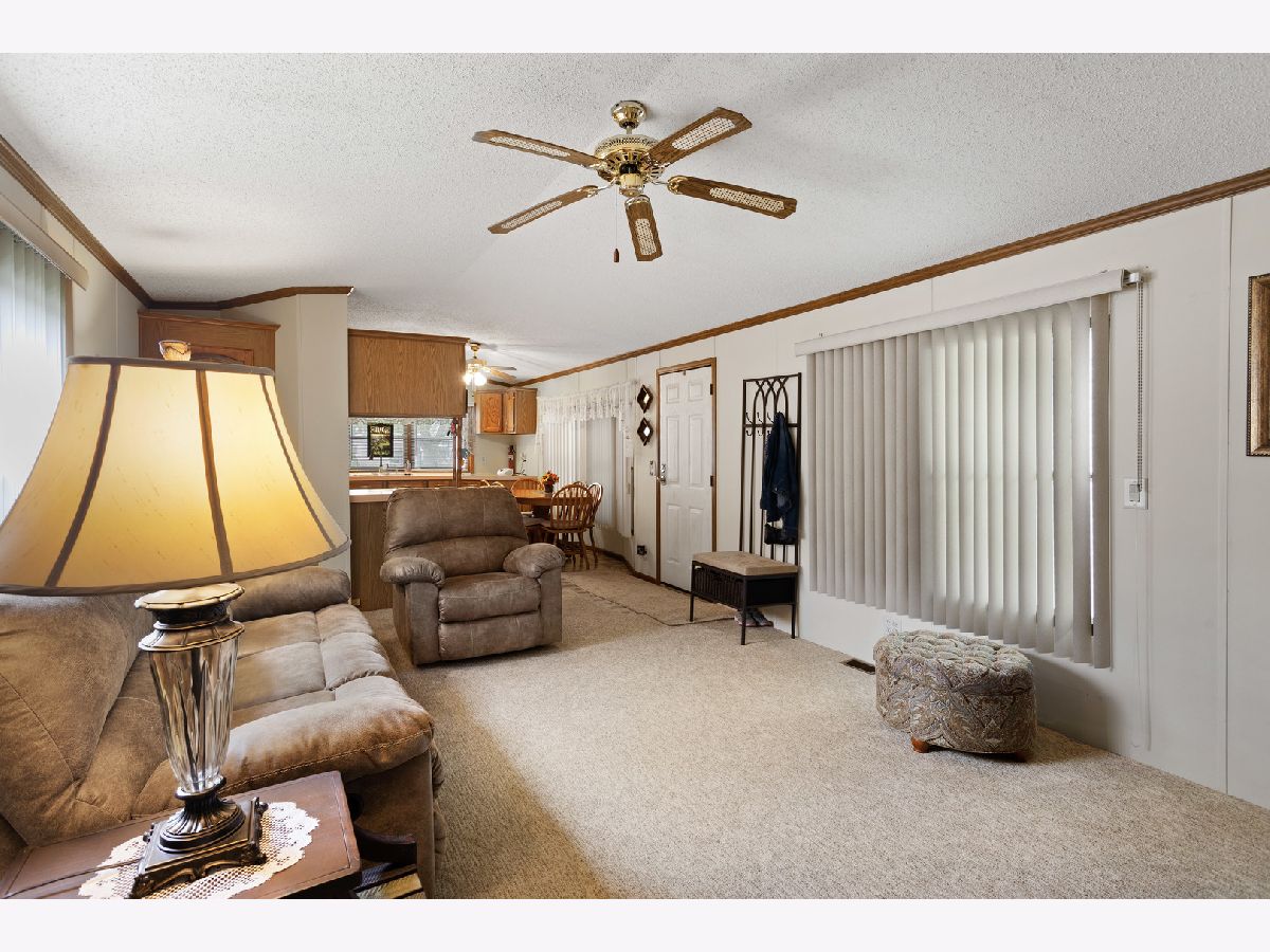 Nice 924 sq. ft 2 bedroom home in Poplar Grove's Oak Lawn Park. Quiet residential area to enjoy the country but minutes to Belvidere or Rockford. Large bathroom with double vanity and spacious storage. Open floor concept with living room to kitchen. All appliances stay including washer and dryer. Covered car port with plenty of storage space, plus outdoor shed. Brand new furnace with 10 year warranty. Lot rent $455. Come & Enjoy!