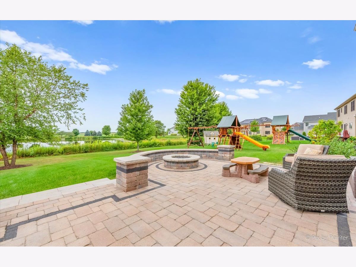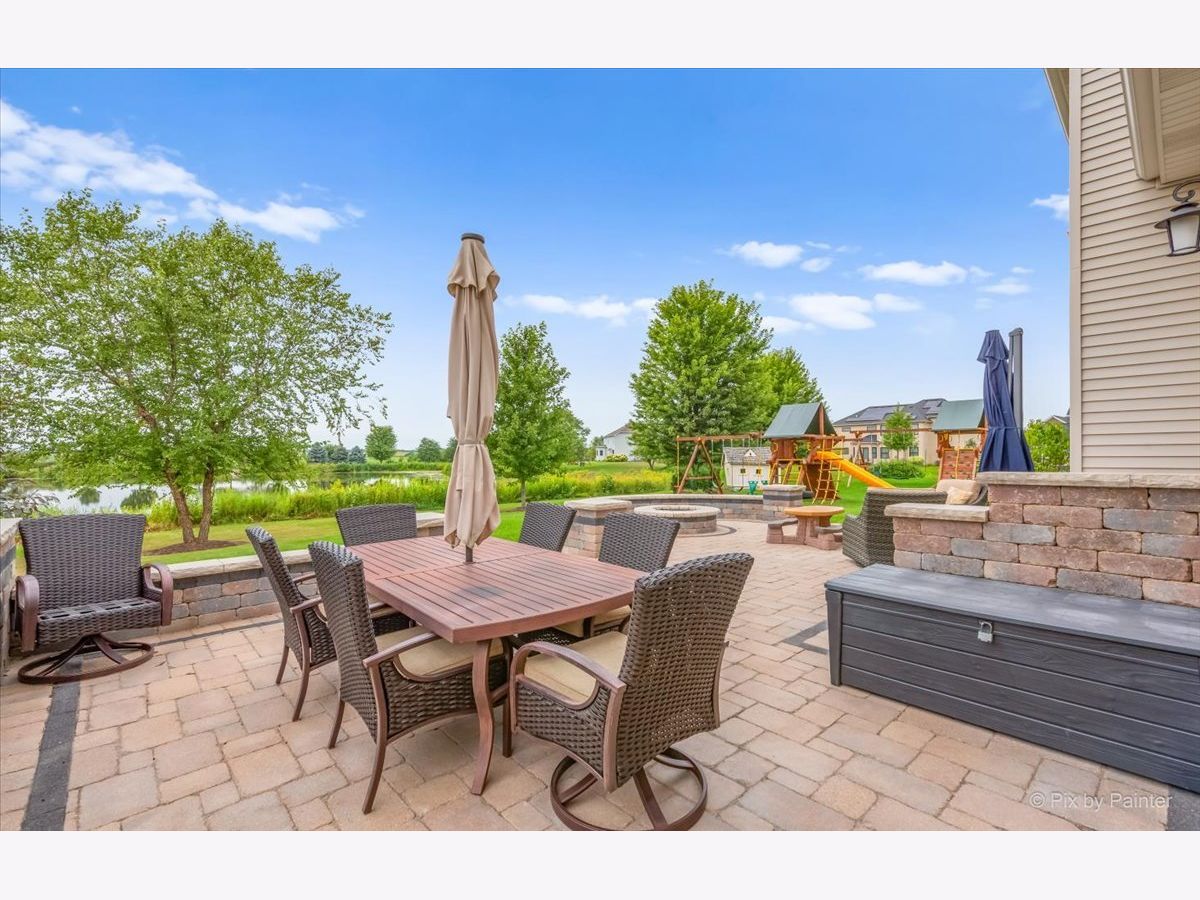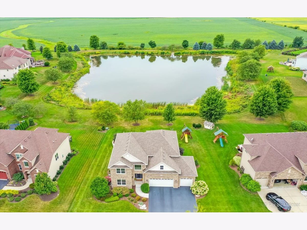 Better than new! Be prepared to be impressed from the minute you step through the front door! This is a gorgeous home built on a beautiful pond lot with an amazing view of water. Relax and watch the sunset right from the patio/kitchen/family room. This home offers a great open floorplan with all the sought after modern finishes throughout entire home. Enter through the elegant 2 story foyer, showcasing a beautiful staircase, chandelier and wide entry. Kitchen got a fantastic new look with white cabinetry, quartz countertops, glass tile backsplash all in 2020; This eat-in kitchen has a spacious breakfast area, oversized center island, abundance of cabinets and counterspace and walk in pantry! Private office built out with floor to ceiling walnut cabinetry, 2 built in desks for all your business needs to work from home. Formal dining room. Large and cozy family room with fireplace. Dark walnut stained hardwood floors in entire 1st floor. Luxury master suite has a vaulted ceiling, an amazing modern spa like bath, with oversized glass shower, double vanity and 2 huge walk in closets. All bedrooms have spacious walk in closets. 1st floor laundry with built in white cabinets. Extensive paver patio was built 5 years ago with a gas firepit, built in grill and walled flower beds. Wired surround sound in kitchen, fam room and patio. Sprinkler system installed in 2020. Oswego School Dist 308. Located in a pool and clubhouse community of Grande Park that has so much to offer to all ages with abundance of great amenities such as: tennis, volleyball and basketball courts; soccer, football and baseball fields; multiple picnic areas; skating ring, multiple playgrounds and 7 mile walk/bike path. MOVE IN READY.