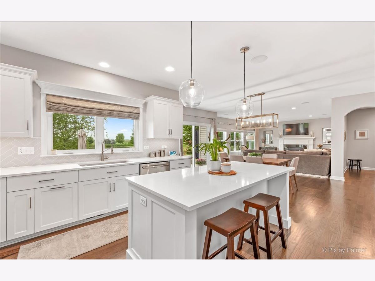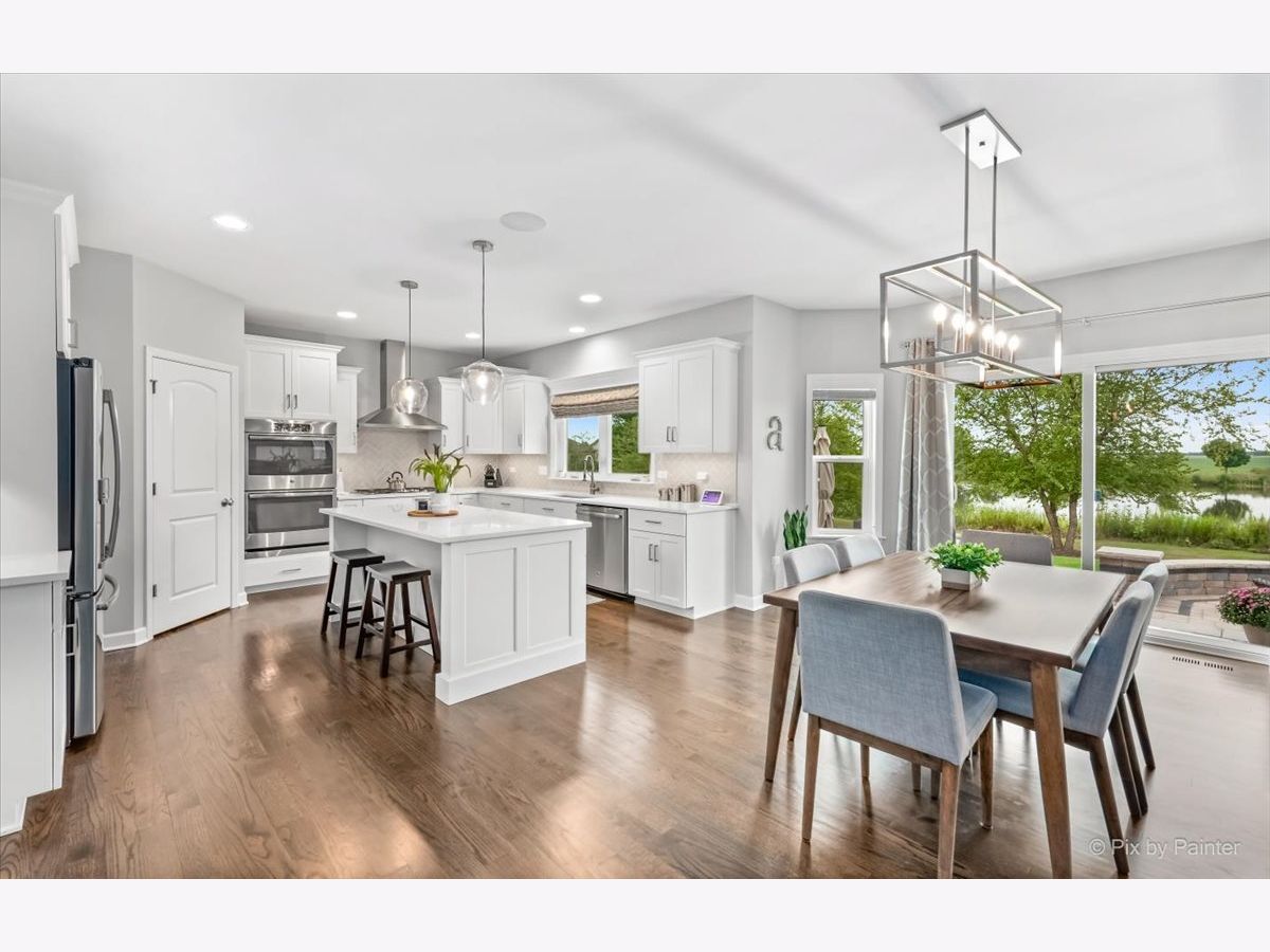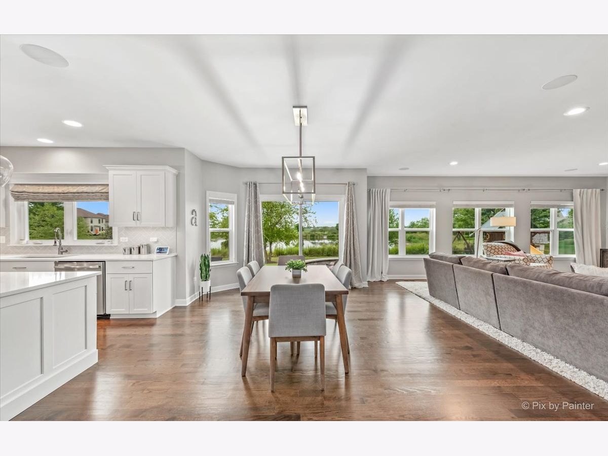 Better than new! Be prepared to be impressed from the minute you step through the front door! This is a gorgeous home built on a beautiful pond lot with an amazing view of water. Relax and watch the sunset right from the patio/kitchen/family room. This home offers a great open floorplan with all the sought after modern finishes throughout entire home. Enter through the elegant 2 story foyer, showcasing a beautiful staircase, chandelier and wide entry. Kitchen got a fantastic new look with white cabinetry, quartz countertops, glass tile backsplash all in 2020; This eat-in kitchen has a spacious breakfast area, oversized center island, abundance of cabinets and counterspace and walk in pantry! Private office built out with floor to ceiling walnut cabinetry, 2 built in desks for all your business needs to work from home. Formal dining room. Large and cozy family room with fireplace. Dark walnut stained hardwood floors in entire 1st floor. Luxury master suite has a vaulted ceiling, an amazing modern spa like bath, with oversized glass shower, double vanity and 2 huge walk in closets. All bedrooms have spacious walk in closets. 1st floor laundry with built in white cabinets. Extensive paver patio was built 5 years ago with a gas firepit, built in grill and walled flower beds. Wired surround sound in kitchen, fam room and patio. Sprinkler system installed in 2020. Oswego School Dist 308. Located in a pool and clubhouse community of Grande Park that has so much to offer to all ages with abundance of great amenities such as: tennis, volleyball and basketball courts; soccer, football and baseball fields; multiple picnic areas; skating ring, multiple playgrounds and 7 mile walk/bike path. MOVE IN READY.