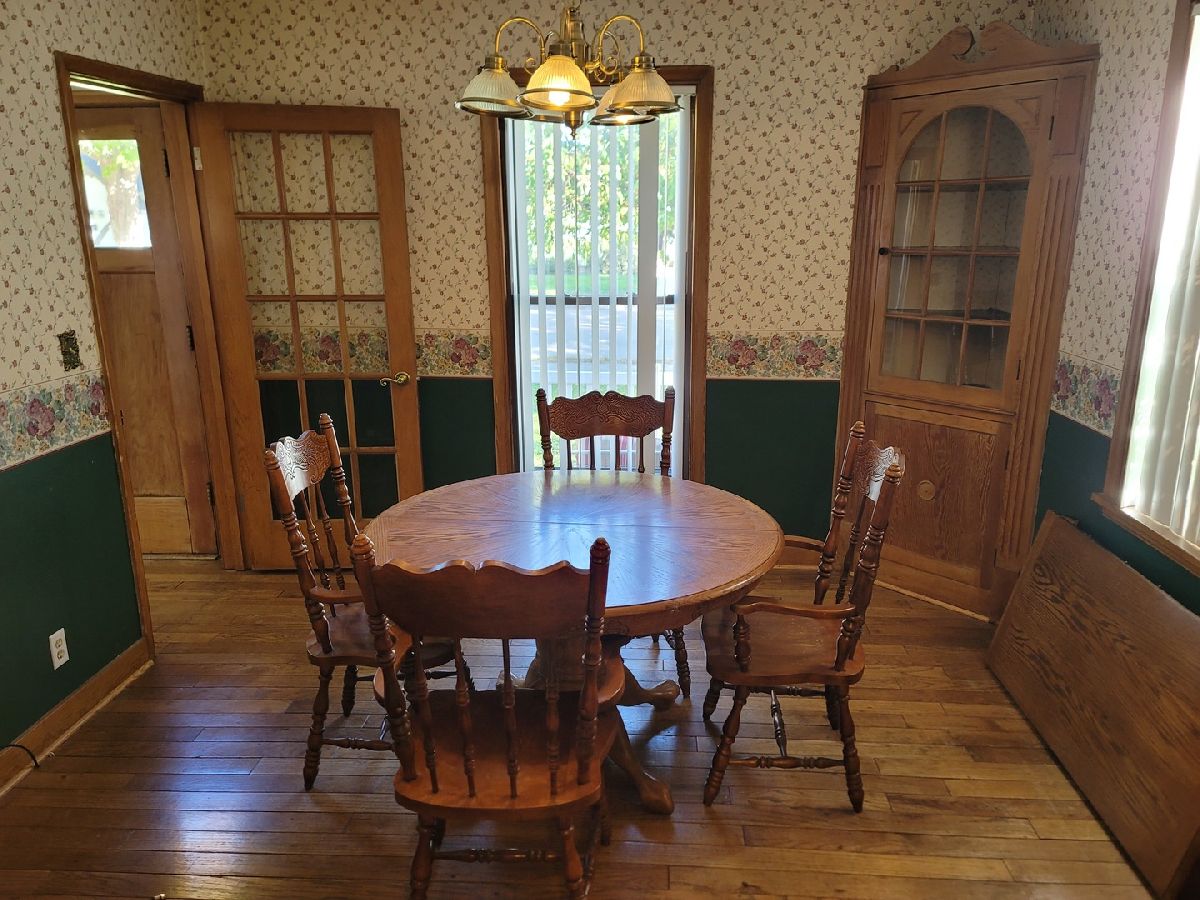 New front deck 2022, hard wood floors in living, dining and main floor bedroom. Corner hutch in dining room. New furnace (2018). Corner shower in basement. Fenced back yard. 10 x 27 back porch, and new dryer 2022.