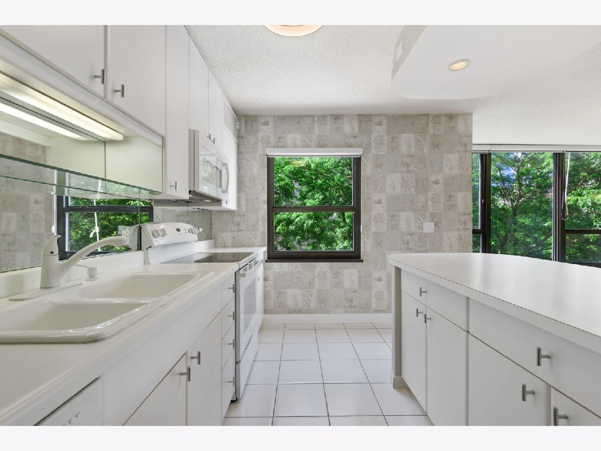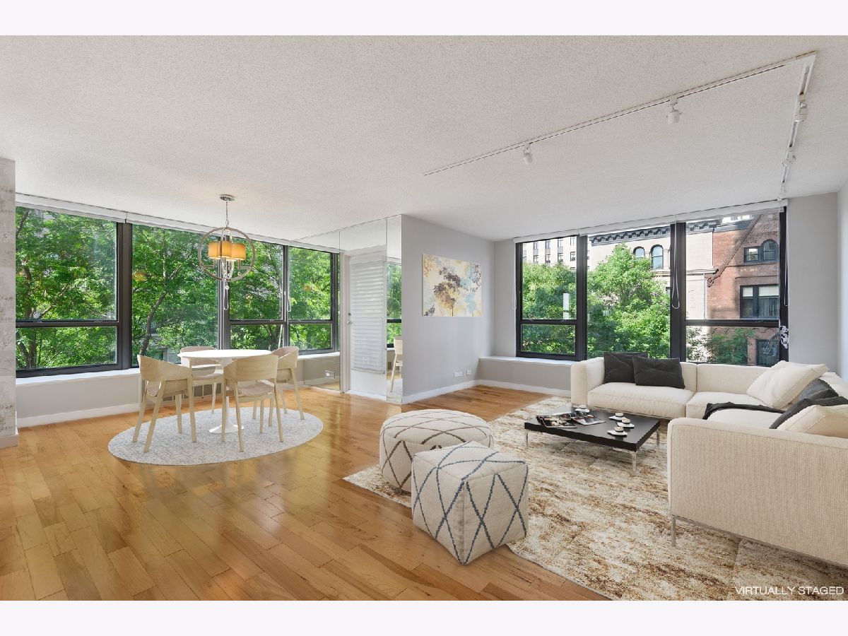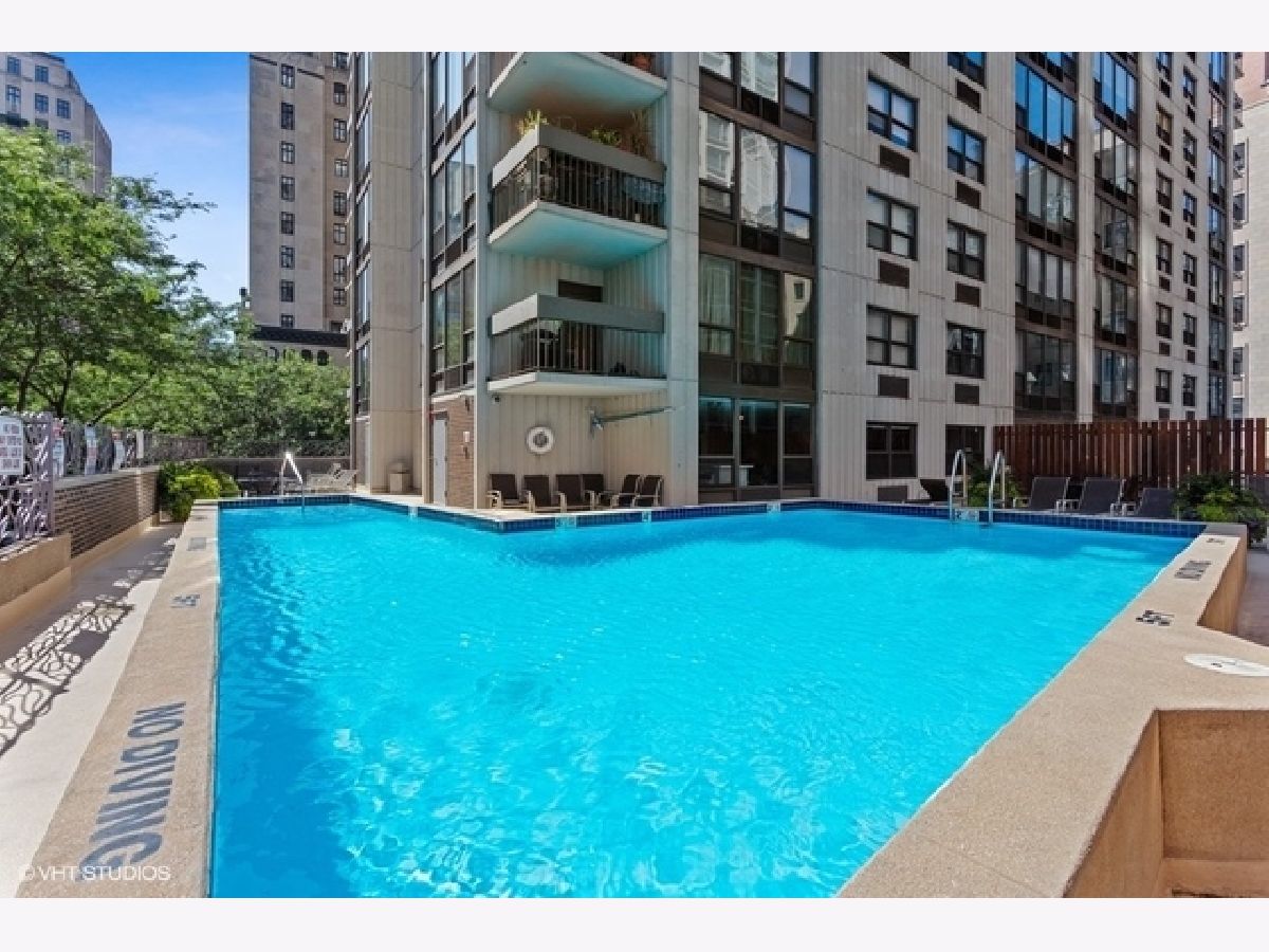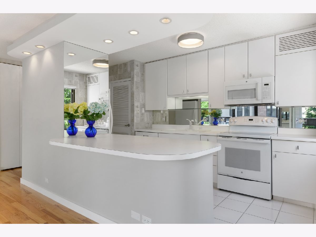 GREAT CORNER UNIT FACING SOUTH WITH TREE-TOP AND PARK VIEWS ALONG WITH HISTORIC ROW-HOUSES ON THE WEST. LOOKING FOR TRANQUILITY AND PRIVACY? THIS IMMACULATE HOME HAS BOTH PLUS A BIT OF THE LAKE FROM YOUR KITCHEN WINDOW. NICE OPEN FLOOR-PLAN IN THE MAIN SPACE OFFERS COMFORT AND FLEXIBILITY. FRESHLY PAINTED, BEAUTIFUL HICKORY HARDWOOD FLOORS. PRISTINE WHITE KITCHEN WITH BREAKFAST ISLAND. LARGE BALCONY FOR GRILLING & ENTERTAINING, PLENTIFUL CLOSET/STORAGE SPACE, AND IN UNIT WASHER & DRYER. FULL AMENITY BUILDING WITH 24-HOUR DOORMAN, FITNESS CENTER, OUTDOOR POOL, SUN DECK, PARTY ROOM, STORAGE SPACES, AND ENGINEERING MAINTENANCE STAFF. ON-SITE FULL SERVICE SPA AND DRY CLEANER. COVETED LOCATION ACROSS FROM GOUDY PARK & WITHIN SHORT WALKING DISTANCE OF OAK STREET BEACH, RUNNING/BIKING PATHS, PARKS, MAGNIFICENT MILE RESTAURANTS, SHOPPING, AND NIGHTLIFE. DEEDED HEATED PARKING SPOT AVAILABLE FOR PURCHASE. BEST NEIGHBORHOOD IN THE CITY. PET & INVESTOR FRIENDLY. CAN'T BEAT THIS LOCATION.