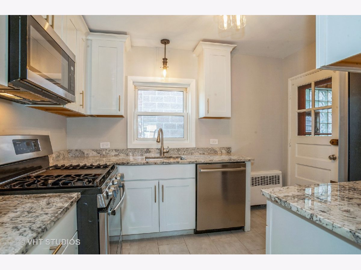 This top floor, two bedroom, one bath condo in Evanston has been fully updated and ready for its new owner. Beautifully upgraded kitchen with granite countertops, white, soft-close cabinetry, industrial lighting and all stainless steel appliances. Freshly renovated bathroom with modern chrome fixtures, subway tile shower surround and brand new vanity. Luxury vinyl plank flooring throughout and freshly painted. Exterior parking spot included. Near Northwestern campus, Ryan Field, Purple Line CTA and Metra.