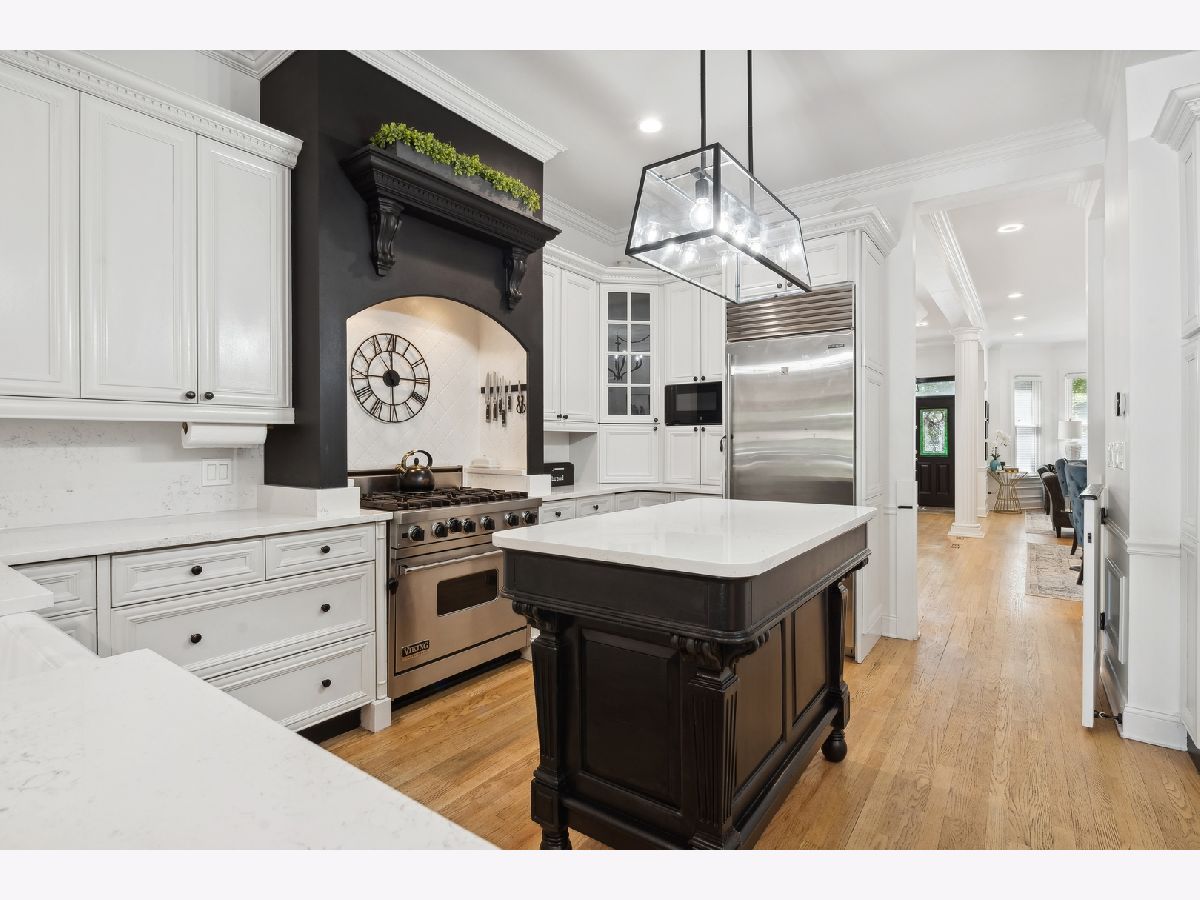 Absolutely stunning Red Brick Victorian single family home that has been flawlessly updated combining vintage charm with modern finishes and conveniences. This one of a kind single family home has five bedrooms and three full bathrooms on the top two floors accessed by front and rear staircases giving buyers options galore for how to set up this massive home. The main level starts with an inviting foyer with a timeless wood coat hutch before you move into the spacious formal living and dining areas with an additional sitting area with a gas fireplace. A dry bar setup completes the formal room setup as you enter into the sprawling open kitchen and family room. The Chef's kitchen has white cabinets, quartz countertops, stainless steel appliances, and a large island perfect for entertaining. Built-ins galore surround the spacious family room with breakfast table, custom pantry, powder room and same level access to the large back deck. The second floor has a luxe primary suite with his/her closets, Juliet balcony overlooking the lush backyard and a spa-like primary bathroom with double bowl vanity, stand-up shower with marble subway tile and large freestanding soaking tub. The 2nd bedroom has its own study room with french doors and a built-in loveseat in the turret window. In the middle of the primary and 2nd bedrooms is a large sitting area, in-unit W/D and a pristine full bathroom with freestanding clawfoot tub. The 3rd level has three generous sized bedrooms, one with a hidden playroom, a full bathroom with stand-up shower, a cozy family room area with a gas fireplace and access to a rooftop deck with fantastic city views. Lastly, the lower level has a huge family room for kids, a well appointed full bathroom, homework area with built-in desks, a private office, large gym area and a private sauna room. Completing this masterpiece is an outdoor oasis in the city with a large composite deck immediately off the family room perfect for grilling and summer fun, a turf backyard space with side putting green area and a two car garage. An excellent value family home in an ideal Lincoln Park location steps to multiple parks, amazing restaurants, Southport shopping, and public transportation.