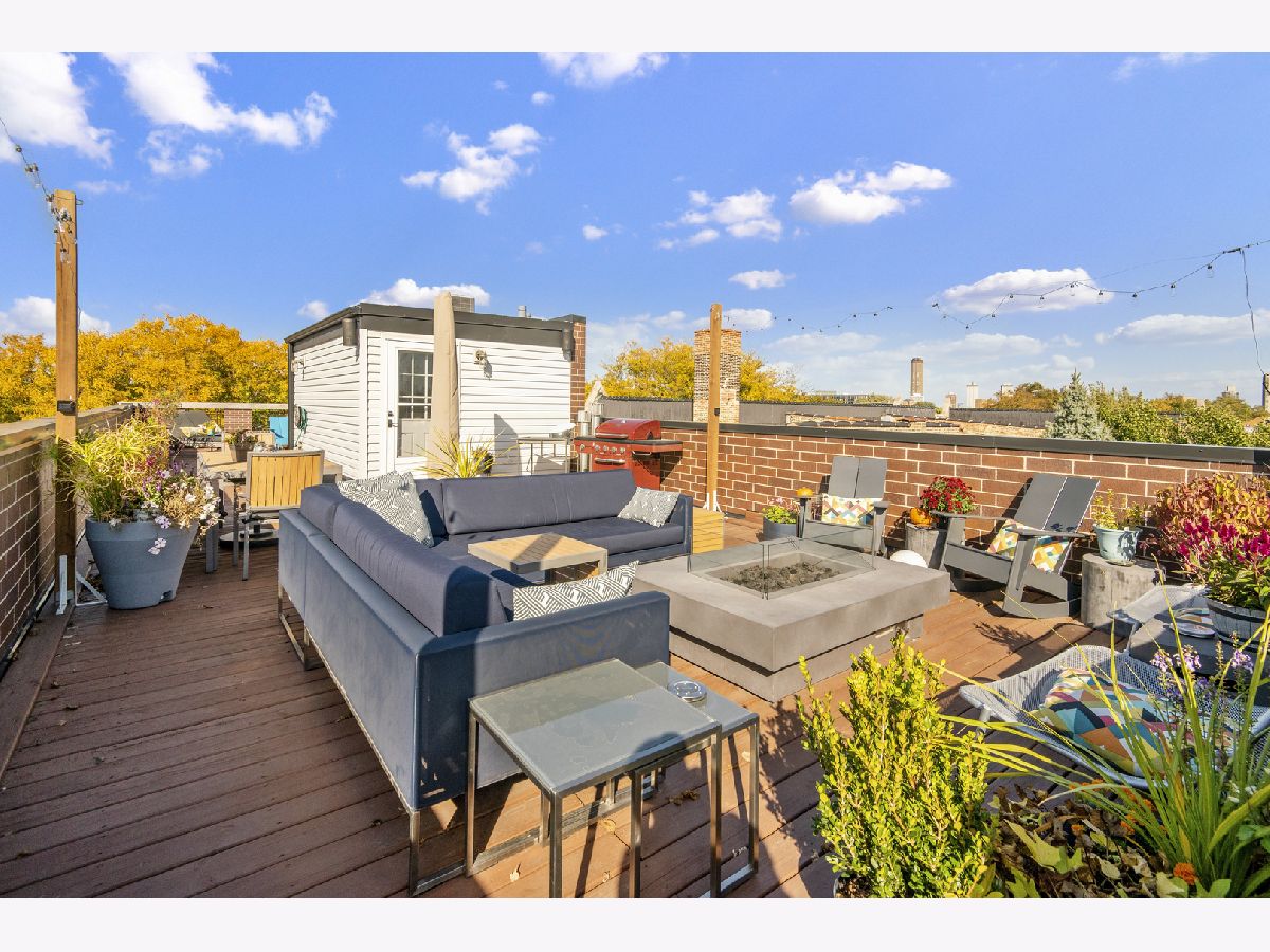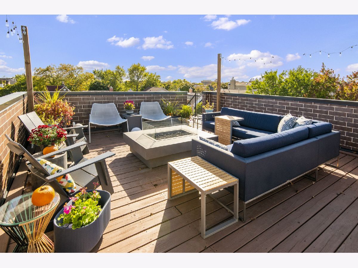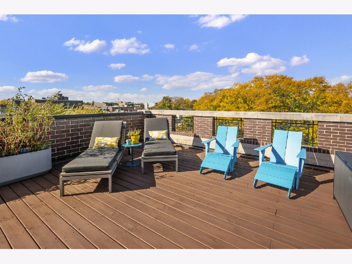 Amazing top floor, extra wide Southport Corridor condo with enormous private outdoor roof deck. This two bedroom two bath home is situated on a quiet one way street just one block from the best restaurants, shops, coffee houses, bars of Southport Corridor. The condo also features hardwood flooring throughout, custom millwork, a beautifully designed kitchen with top of the line Wolf, Miele and Subzero appliances. Condo is wired for dual zone sound throughout with equipment included. Other features include a primary suite with custom built out walk in closet as well as large soaking tub and steam shower. Two private outdoor spaces including a beautifully built out roof deck with stunning 360 degree city views. An internal staircase leads to the roof deck that is exclusive to the top floor unit and includes gas, water, electric access as well an interior landing complete with sink, Monogram wine refrigerator, Monogram beverage refrigerator and ice maker. Garage space included. This home's amazing location and outdoor space make it one of a kind.