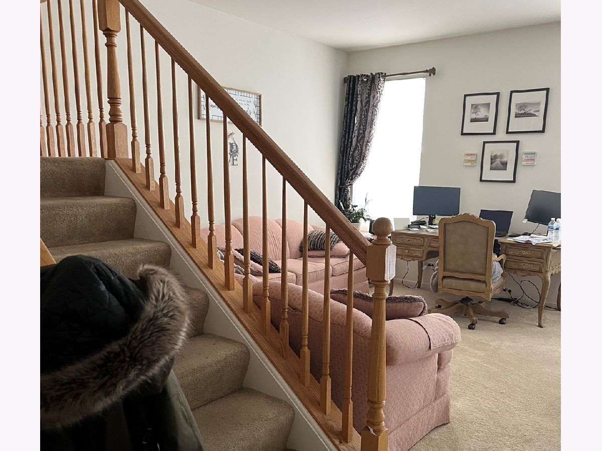 Open concept floor plan with 2 1/2 bedrooms, large loft, and 2 1/2 baths. Kitchen has stainless steel appliances and an abundance of cupboards. Living and dinning room overlooks a open green common area. Laundry room conveniently located off of kitchen with front loading washer and dryer. Large loft great for an office, exercise equipment or TV viewing area. Garage has plenty of space for extra storage. Minutes from Metra station, park, dog park and library. Some photo's taken before renter moved in. Renter's lease is up Feb 28th. After renters is out the home will be professional cleaned.
