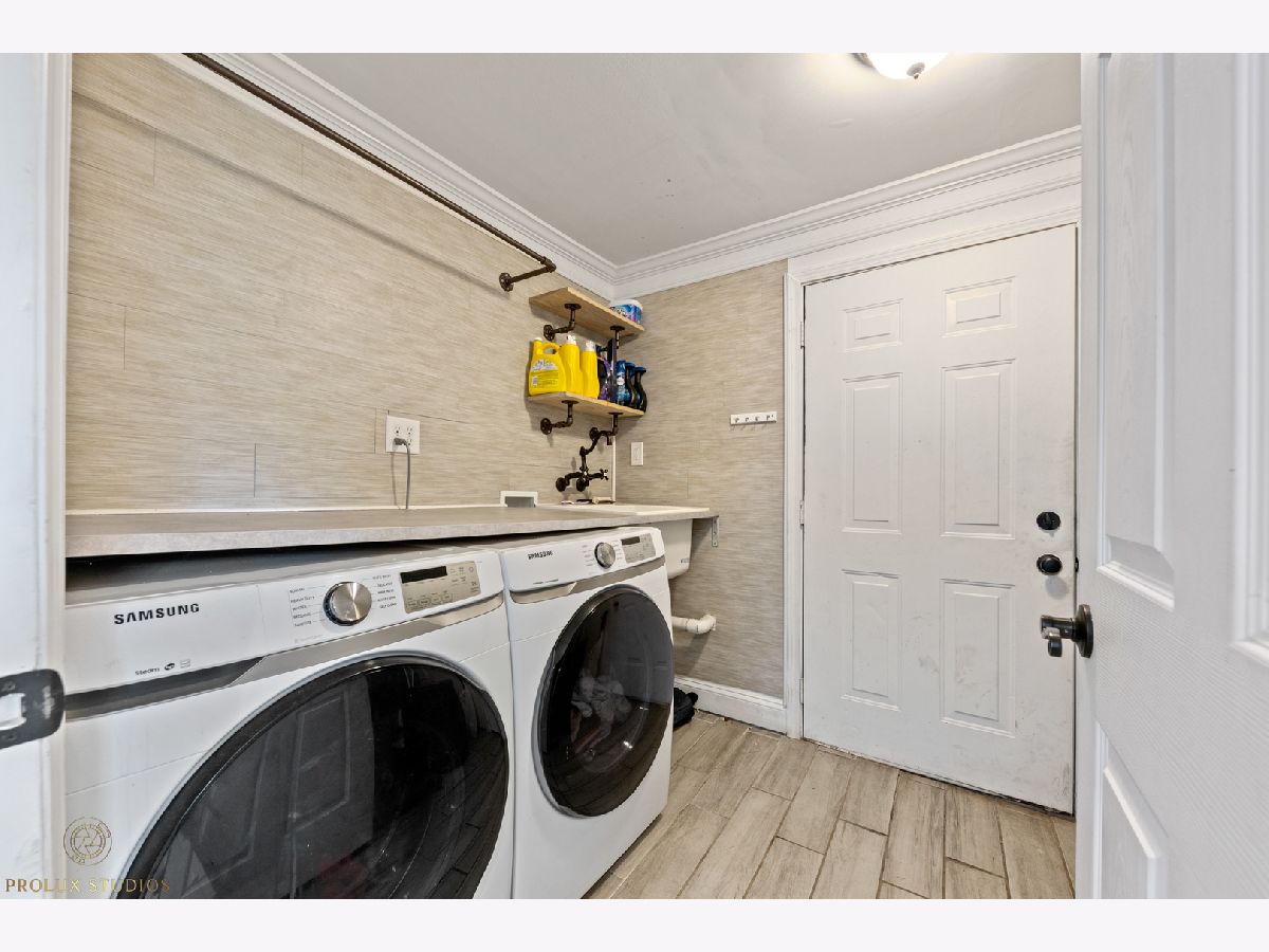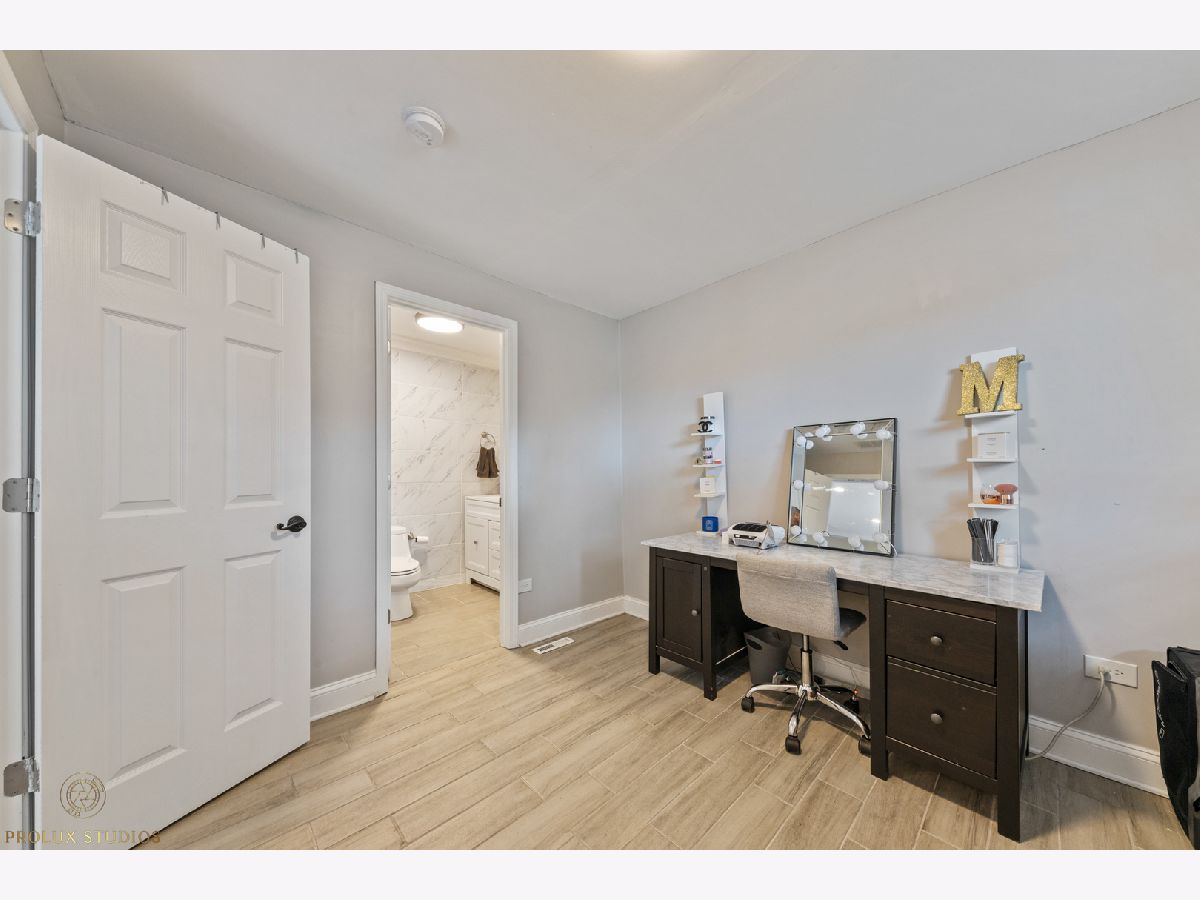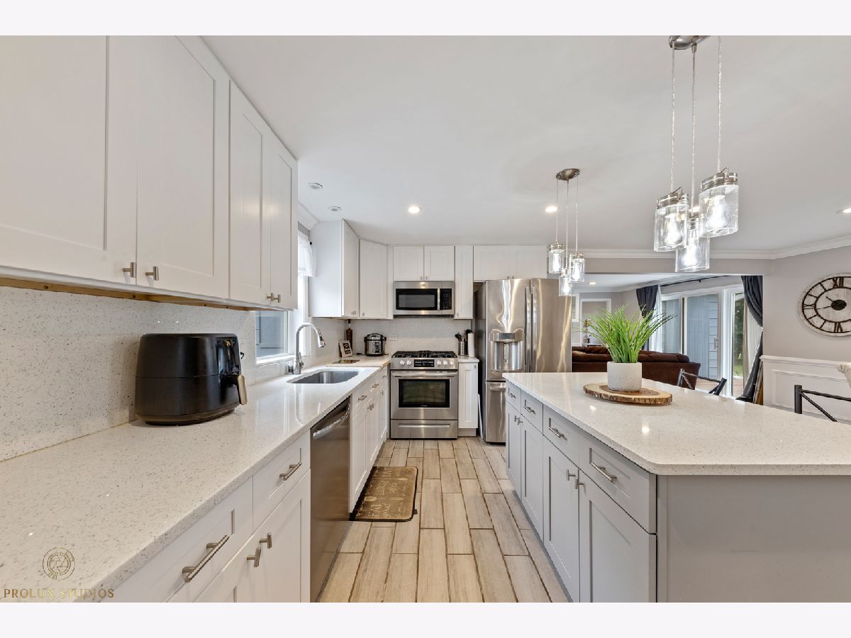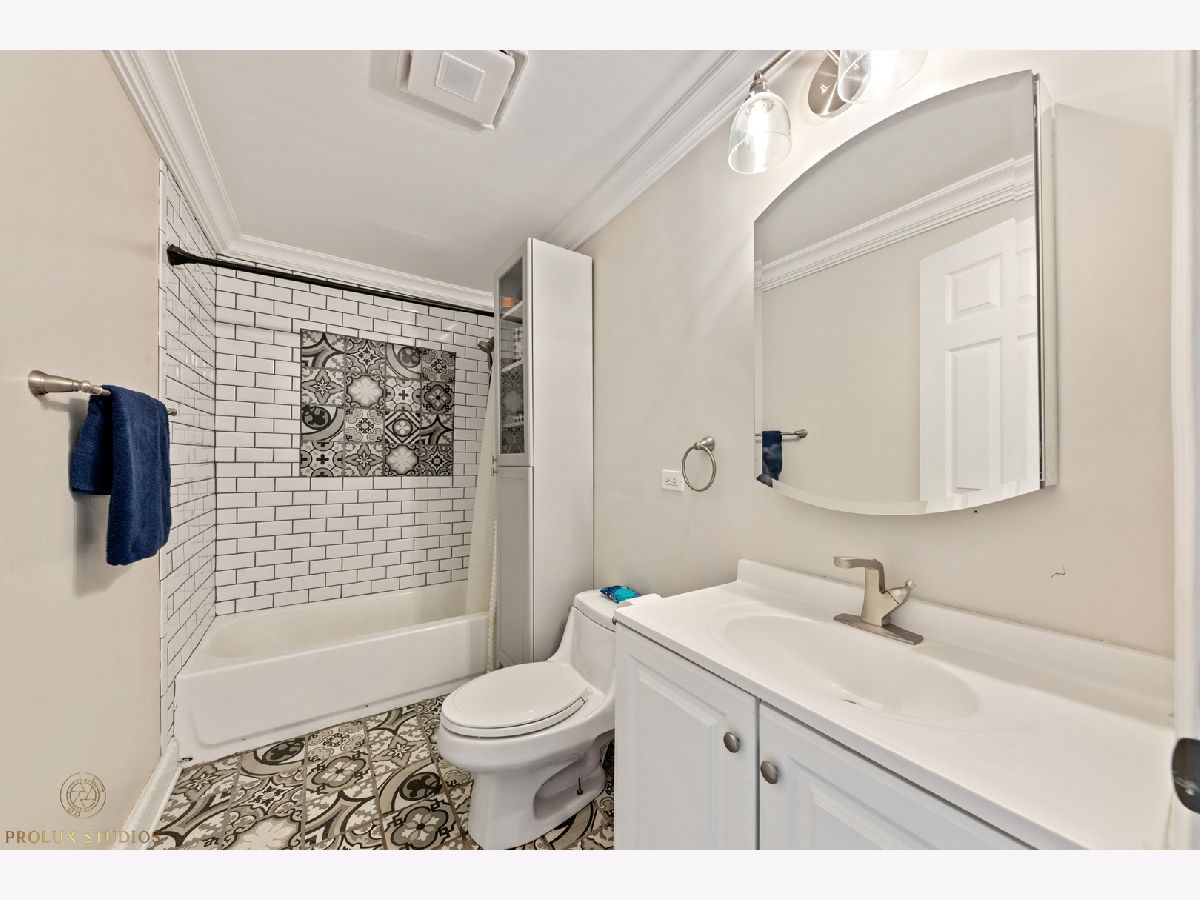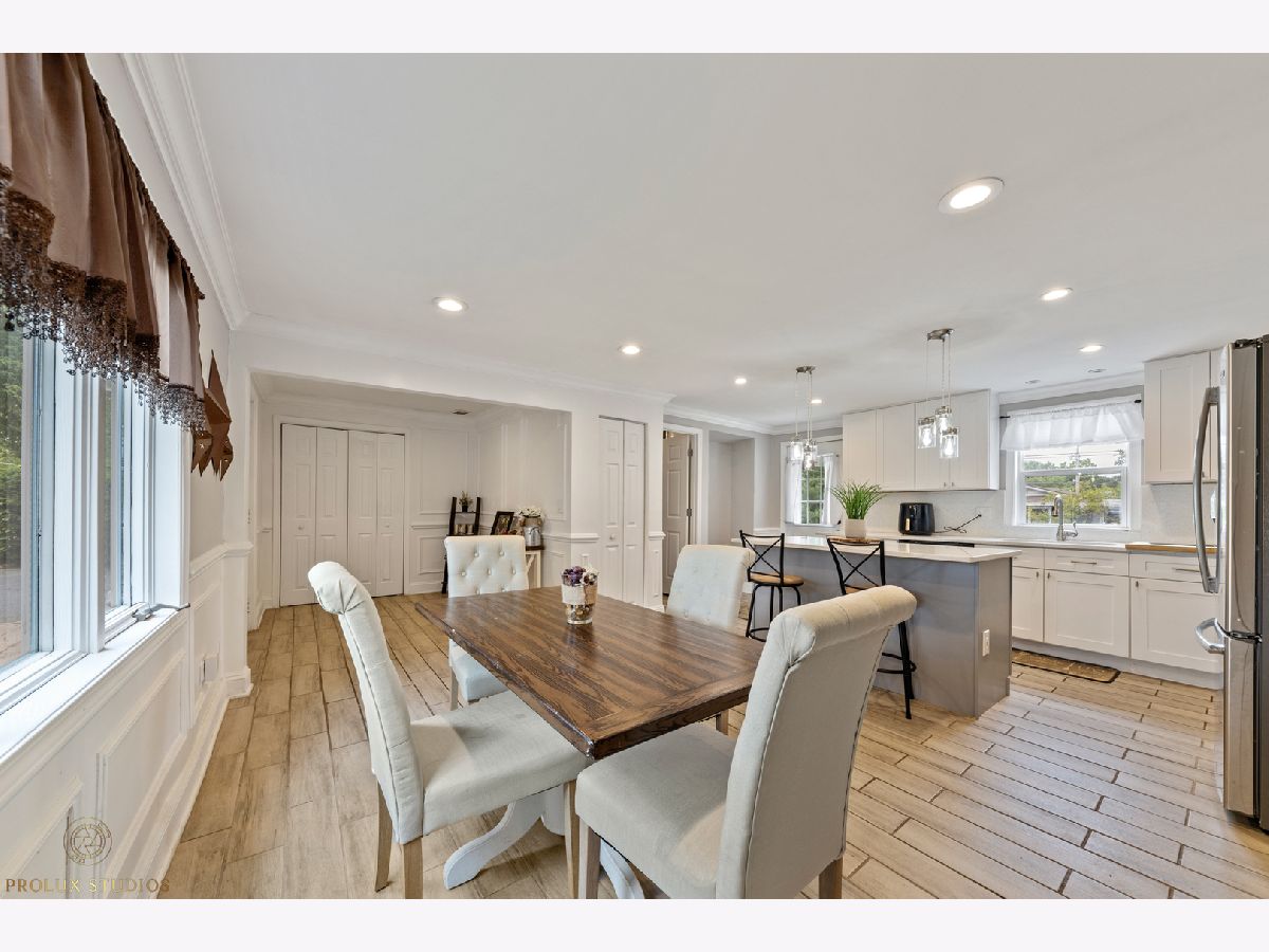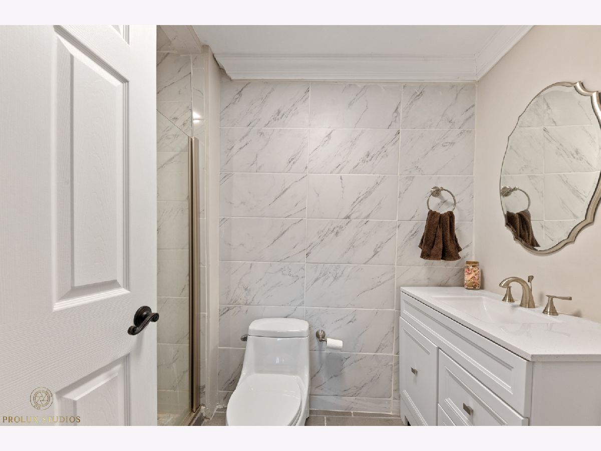 Home completely remodeled in 2020. Open concept kitchen, dining, & living room featuring porcelain tile floors. Upscale crown moldings & wainscoting throughout. Upgraded light fixtures, new doors & handles. Kitchen has white shaker cabinets w/crown molding, back-splash, quartz counter-tops, stainless steel appliances. 3 Bed, primary bedroom with new porcelain tile and full bath with vanity, custom shower walls & floors. Shared bath features custom wall and premium vanity. Great patio and large fenced yard. Double lot close to schools, park, & Metra. New Furnace & fence. Water heater, roof, plumbing and remodel done 2020