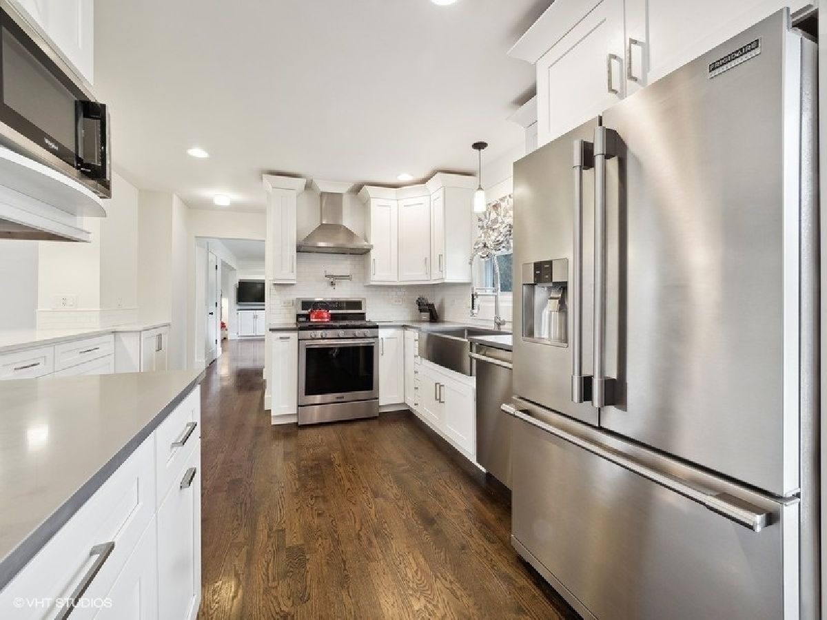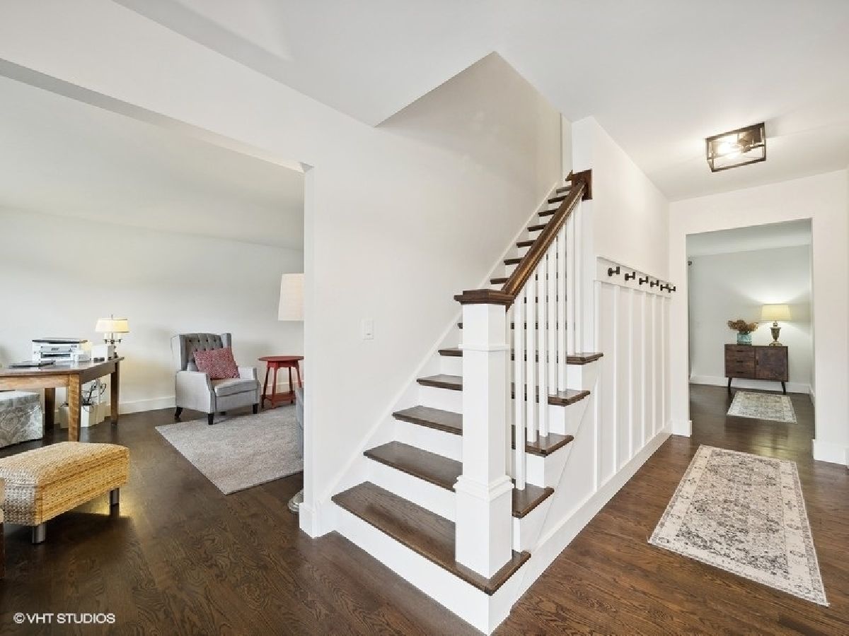 Welcome to this exquisite 5-bedroom, 3.5-bath colonial located in a highly sought-after Arlington Heights neighborhood. Situated on a tranquil cul-de-sac, this completely renovated home offers an ideal blend of modern amenities, thoughtful design, and a prime location. Upon entering you are greeted by pristine hardwood floors, large moldings and a freshly painted interior. The chef's kitchen stands as the heart of the home, equipped with state-of-the-art stainless steel appliances, quartz countertops, pot filler and a convenient breakfast bar. The adjacent first-floor laundry/mudroom, furnished with a high-end washer and dryer, blends luxury and practicality to daily living. The expansive living spaces include a large living room and a family room adorned with a fireplace, providing a warm and inviting atmosphere. These rooms overlook a spacious fully fenced yard, perfect for outdoor gatherings or peaceful relaxation. The second floor boasts four spacious bedrooms. The beautifully remodeled primary bedroom en-suite creates a pampered retreat. The basement of this residence presents a versatile space, including a recreation room, fifth bedroom and a full bathroom. This additional living space offers flexibility for various needs, whether it be a home office, guest suite, or entertainment area. Beyond the confines of this remarkable property lies a highly desirable location. Families will appreciate the proximity to award-winning Olive Elementary and Thomas Middle School, making driving kids to school a thing of the past. Outdoor enthusiasts will enjoy the convenience of pickleball/tennis courts, parks, and a sled hill within walking distance. Venture out on your bicycle and the Memorial Library, ARC (family indoor pool/gym) and downtown area providing restaurants, shopping and Metra are right at your fingertips. Don't let this gem get away - Welcome home!