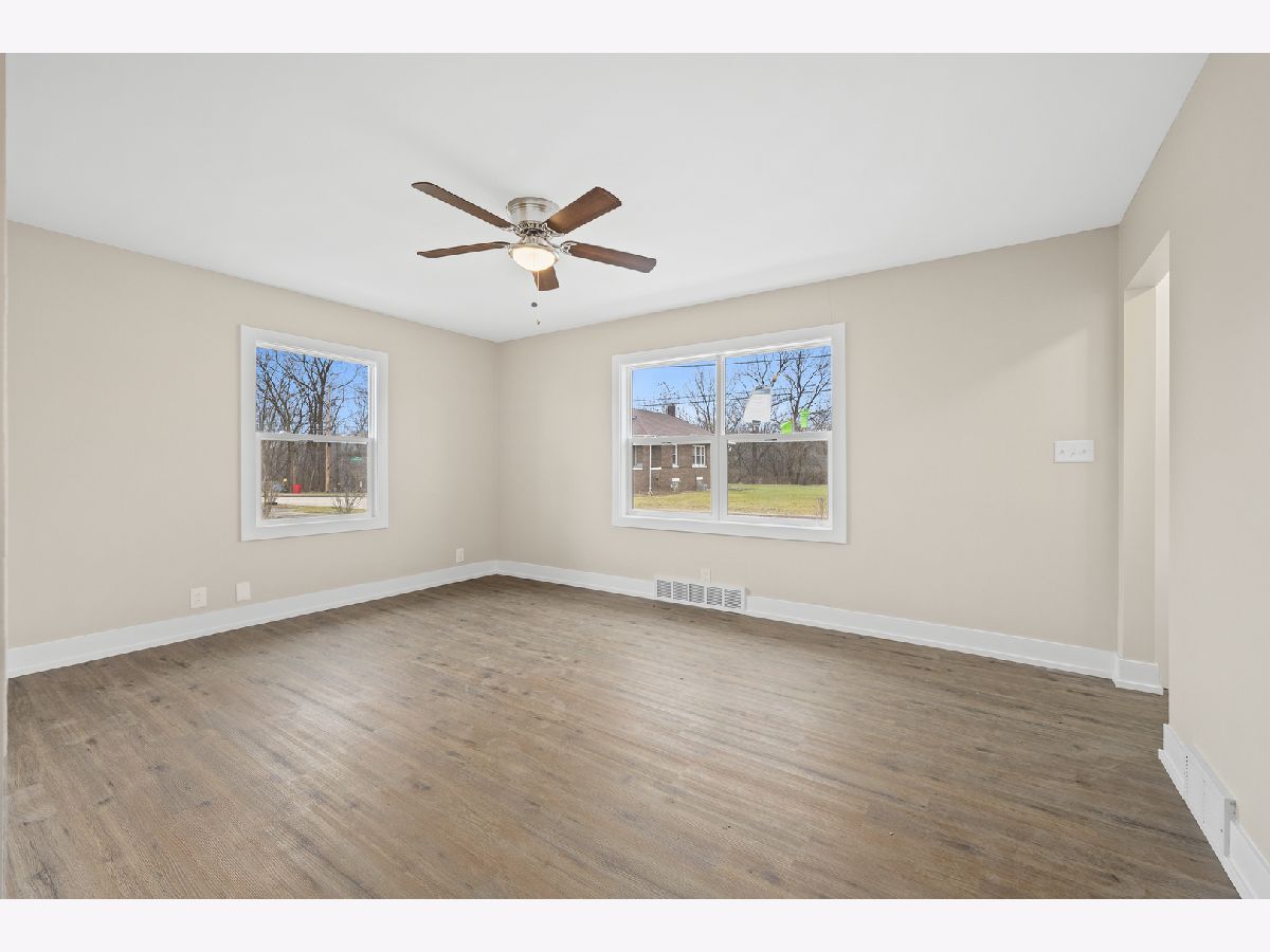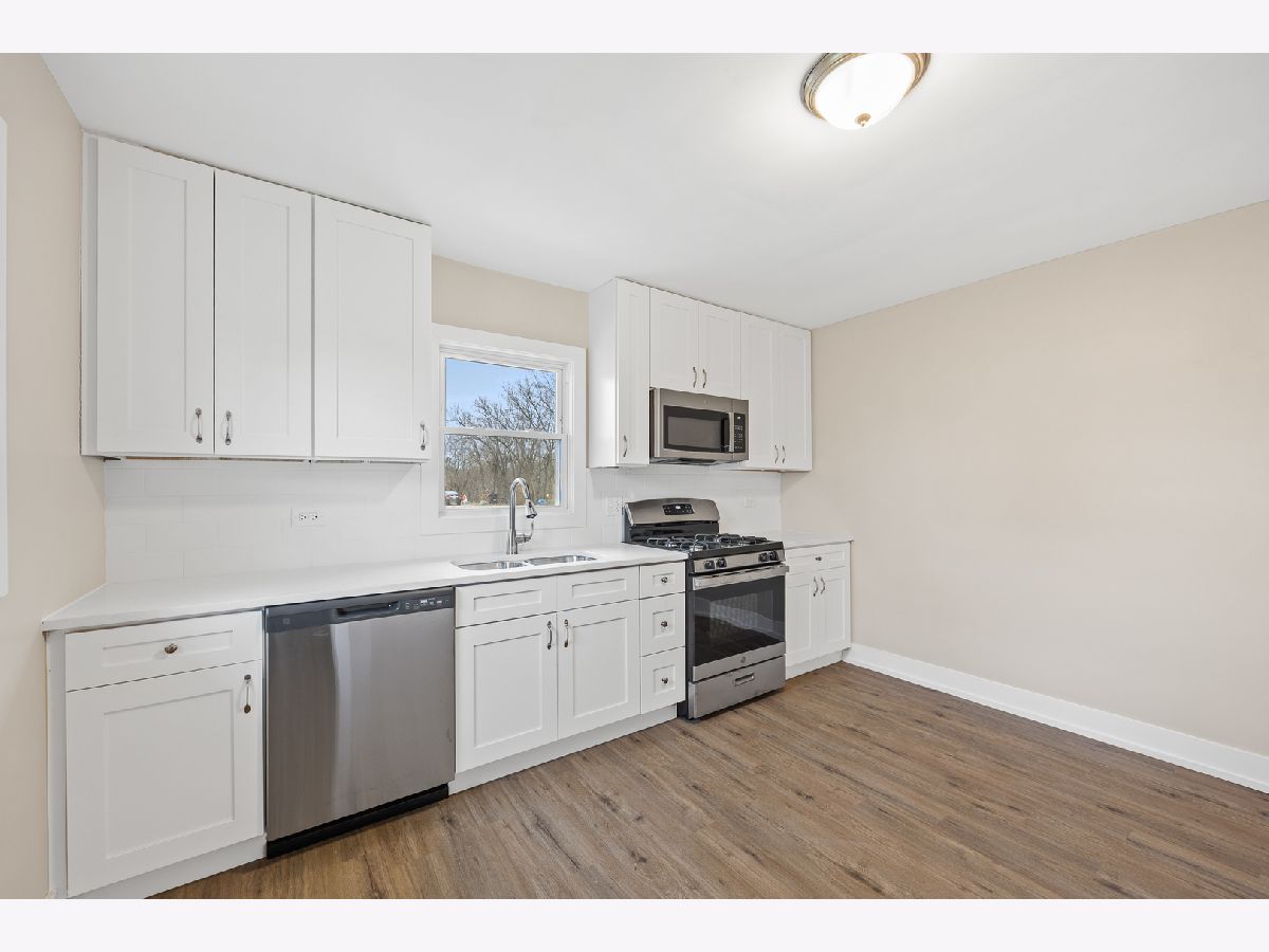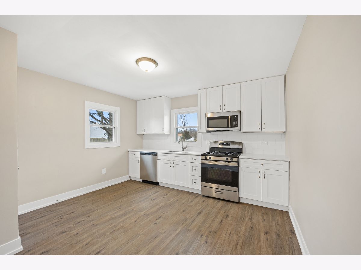 Completely renovated throughout-All Permitted through the City of Joliet. This ranch style home offers 2 bedrooms, 1 full bath and a full basement. Brand new roof, windows, siding and exterior doors. New electrical panel, new switches, outlets, and light fixtures. Brand new kitchen features white cabinetry, quartz counter tops, stainless steel appliances and a subway tiled back splash. The bathroom has been completely remodeled and has a new tub, fixtures, tub surround, new vanity, and vanity top. Freshly painted throughout. All new white trim and doors. Brand new vinyl plank flooring in every room. New HVAC system. This home sits on a huge corner lot, comprising 3 Separate PINS. Nothing to do but move right in!