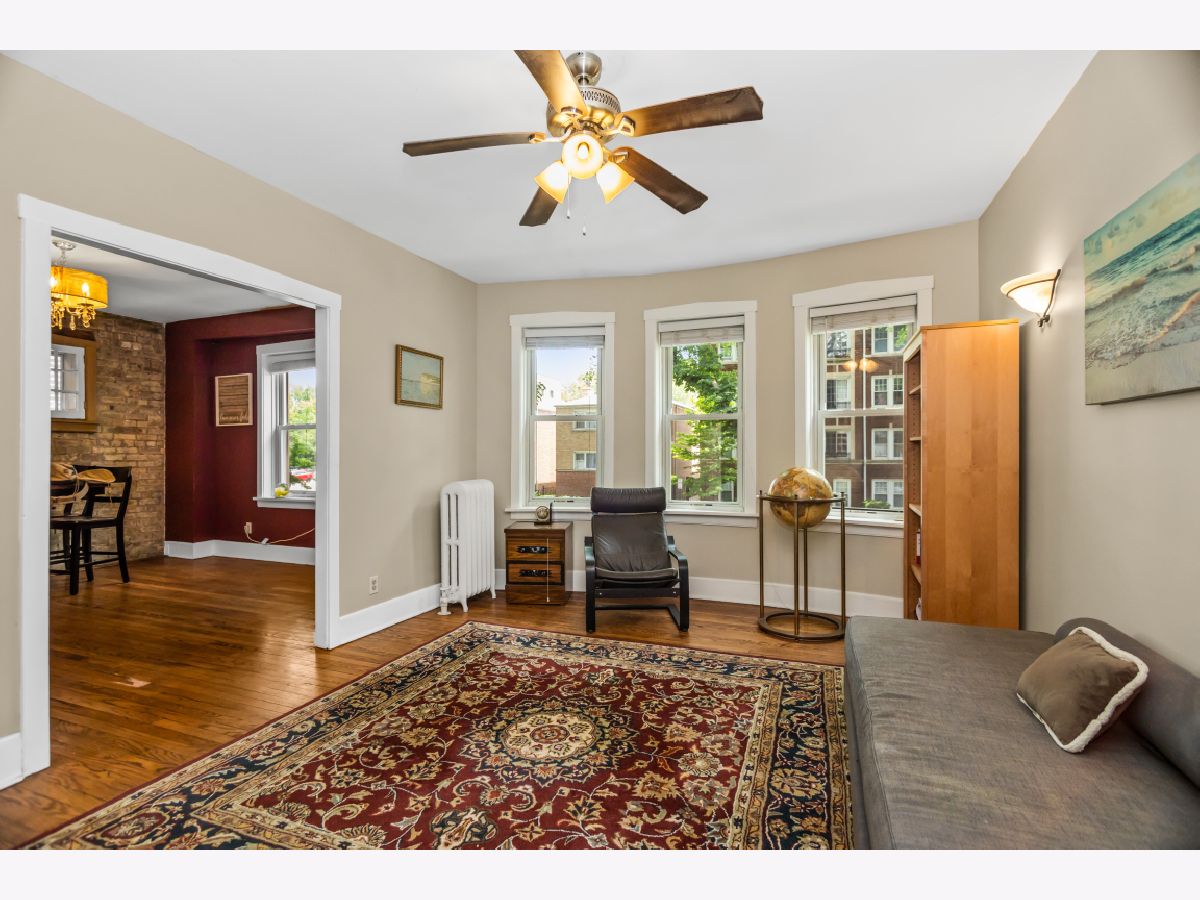 Massive 3 bedroom, 2 bath condo in lovely vintage courtyard building. This spacious home combined 2 units to create over 1800 sq ft of living space. Flexible space including a living room AND family room. The separate dining room features an exposed brick wall, breakfast bar and opens to the kitchen. Hardwood floors and ample closet space throughout. In-unit washer/dryer! Walk to Howard Street "el" stop, shopping, dining and entertainment. Close to Lake Michigan, Northwestern University and easy access to the city.