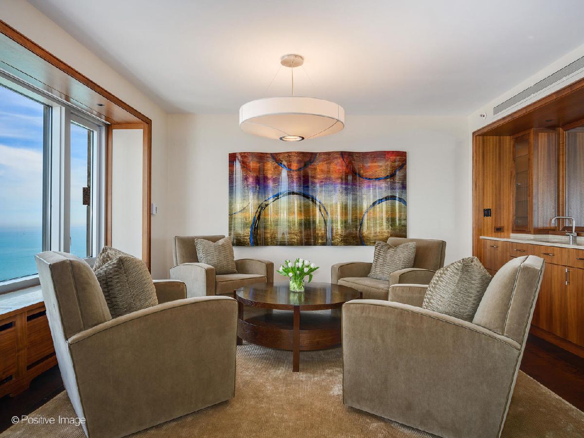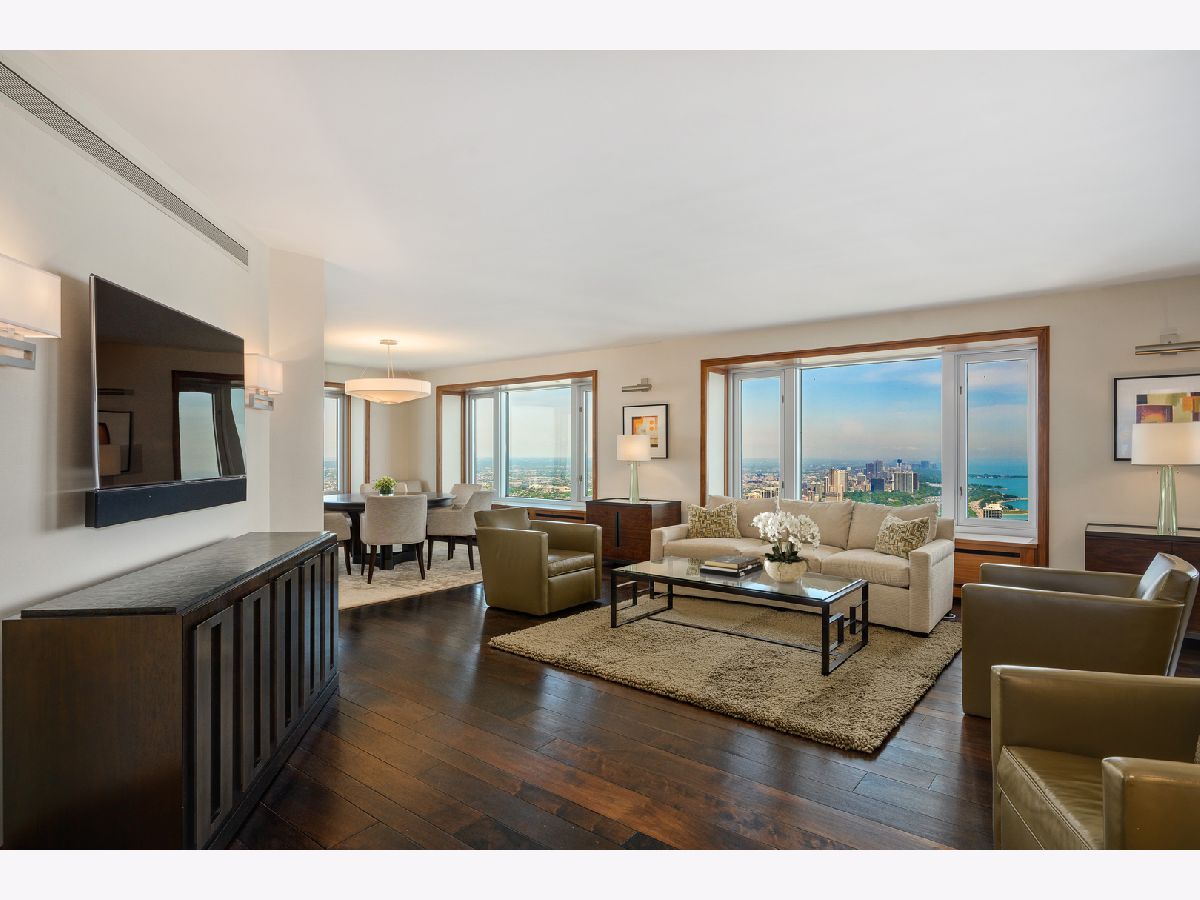 Turnkey offering - Residence 6005 is a pristine, one-of-a-kind residence that may be purchased fully furnished. Reimagined for today's lifestyle by architect Eric Mullendore and executed to perfection by general contractor Garry Hattam of CSI, the gut-renovation transformed a combined 3,584 square foot apartment into a custom-dressed home with an unparalleled level of finishes in every room. A beautiful combination of grand space, dramatic views, and excellence in design. The home features custom-made millwork, doors, leather-wrapped hardware, window seats with stone inlays and hand-scraped and waxed finish walnut floors. The rich artistry of rift-cut walnut, accented with burled walnut panels, adorns the cabinetry and wraps the powder room. Touch panels in every room manage lighting and electronic window shades. There is new electric, plumbing and two new HVAC units. The 28-foot living room has forever changing north views of the lake and city and the separate dining area in the north-west corner offers dinner guests a mesmerizing night-scape. There are three large en-suite bedrooms in a private wing, an office, a laundry room, and a large utility room, in addition to two private storage lockers. The top-of-the-line kitchen and butler's pantry with a coffee station is outfitted with the best integrated appliances including two 36-inch Sub-Zero refrigerators with double freezer drawers, a Miele dishwasher, and a Wolf series featuring an induction cooktop, two convection ovens, a microwave drawer, and a warming drawer. The kitchen is open to a family room with a home video system and hidden anti-glare screen. Residents may register for a Four Seasons house account and receive a 20% discount in the Adorn Restaurant and a 20% discount on room reservations. The Spa membership fee is waived for residents. Pets are welcome and there is no weight limit for dogs.