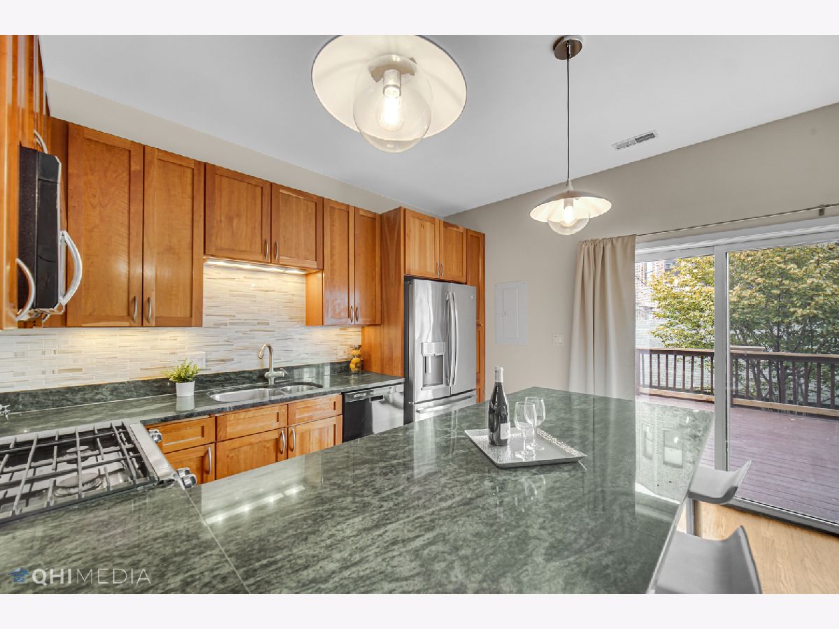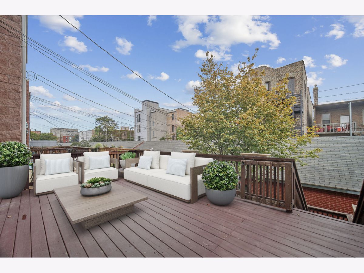 Step from your Chef's Kitchen onto your 350 sf Kitchen deck and gaze downtown as you enjoy this 3 Bed 2.1 Bath Duplex Penthouse with Wide-Open Floor plan. The main level is perfect for entertaining. The Upgraded Eat-In Kitchen hits all the Bells & Whistles: Granite, Backsplash, SS Appliances. Ascend the Hardwood stairs to A Perfect 3 Bed Layout On Sunny Upper Level. The upgraded hardwood floors flow into the bedrooms. The Master bath has upgraded new marble, backsplash and stone countertops. Plenty of storage here: The entry offers Upgraded, Custom Floor-to-Ceiling Wall Closets, the Kitchen has a huge under-the-stairs pantry and nice size closets and over-the-car and in-front-of-car storage in garage. The warm/sunny southern exposure brings the quiet, tree-lined street into the living room. All upgraded light fixtures, ceiling fans stay. The 2nd deck (roof deck) on top level has amazing city views. The City Life is at your fingertips here - launch on foot or in car from this Quiet Tree Lined Cozy Street to enjoy all the Classic Taylor Street neighborhood and City has to offer. You Have : Cafes, Dining, Library, Parks, Green Space, Schools, CTA/EL, Expressway on-ramps, Loop Nearby, UIC, Taylor Street Strolls, Pilsen Concerts and Shops, West Loop friends, Lake Biking. What a Community. What a block. What a Home. What a Layout. Have it all in this Contemporary Affordable, Upper Penthouse Duplex.