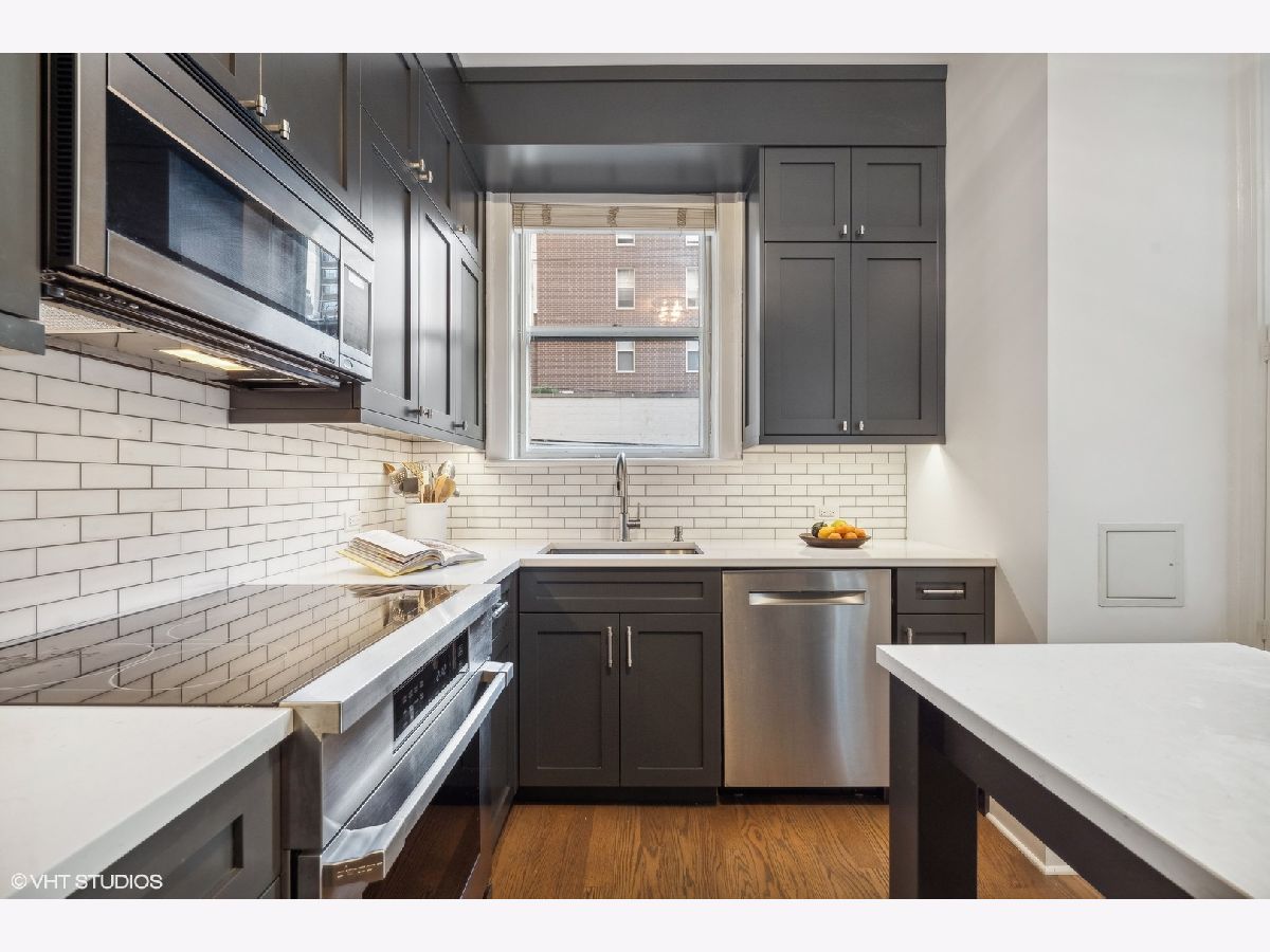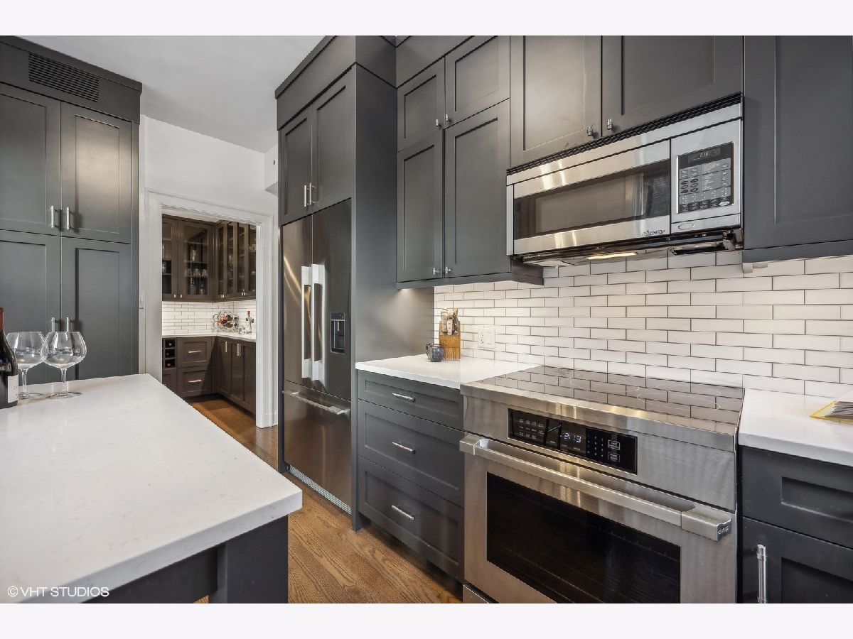 Gorgeous 2400 SQFT vintage residence in a quiet, boutique building on tree-lined State Parkway in the heart of Chicago's Gold Coast neighborhood. This home has recently been tastefully updated with a modern kitchen and baths yet maintains its vintage charm. An elegant entry foyer welcomes you home with arched doorways, coved ceilings, and a gallery perfect for displaying an art collection. A gracious formal living room features a gas fireplace, a wall of built-ins, and enjoys natural light through large windows overlooking State Parkway. Conveniently located between the kitchen and the gallery, providing the ideal space to entertain. The recently renovated kitchen features new cabinetry, quartz countertops, Dacor, Fischer & Paykel, and Bosch appliances, subway tile backsplash, and a butler's pantry. The oversized primary suite has a sitting "nook" in a bay window and a newly renovated en suite bath. A large second bedroom with built-ins features a new ensuite bath. The third bedroom is located just off the kitchen and could also be used as a family room, den, or office. It has a fully renovated dedicated bath. Central air conditioning and in unit washer and dryer. Pet friendly building. Heated valet parking in garage across street for $345/month/car. The assessment includes heat, garbage, recycling, (collected outside your back door every few hours) highspeed internet and 2 cable TV boxes (HBO included), 24 doorman & security, 24-hour engineer, receiving room for mail & packages, daily mail delivered to your private elevator lobby, landscaping, snow removal and window washing quarterly. The building has a full-sized gym with state-of-the-art exercise equipment (including Peloton), as well as party or club room with kitchen and lounge adjacent to outdoor patio garden with gas grills and a basketball hoop. Just steps away from Latin and Ogden School, beaches, historic Gold Coast, Mag Mile, and Lincoln Park.