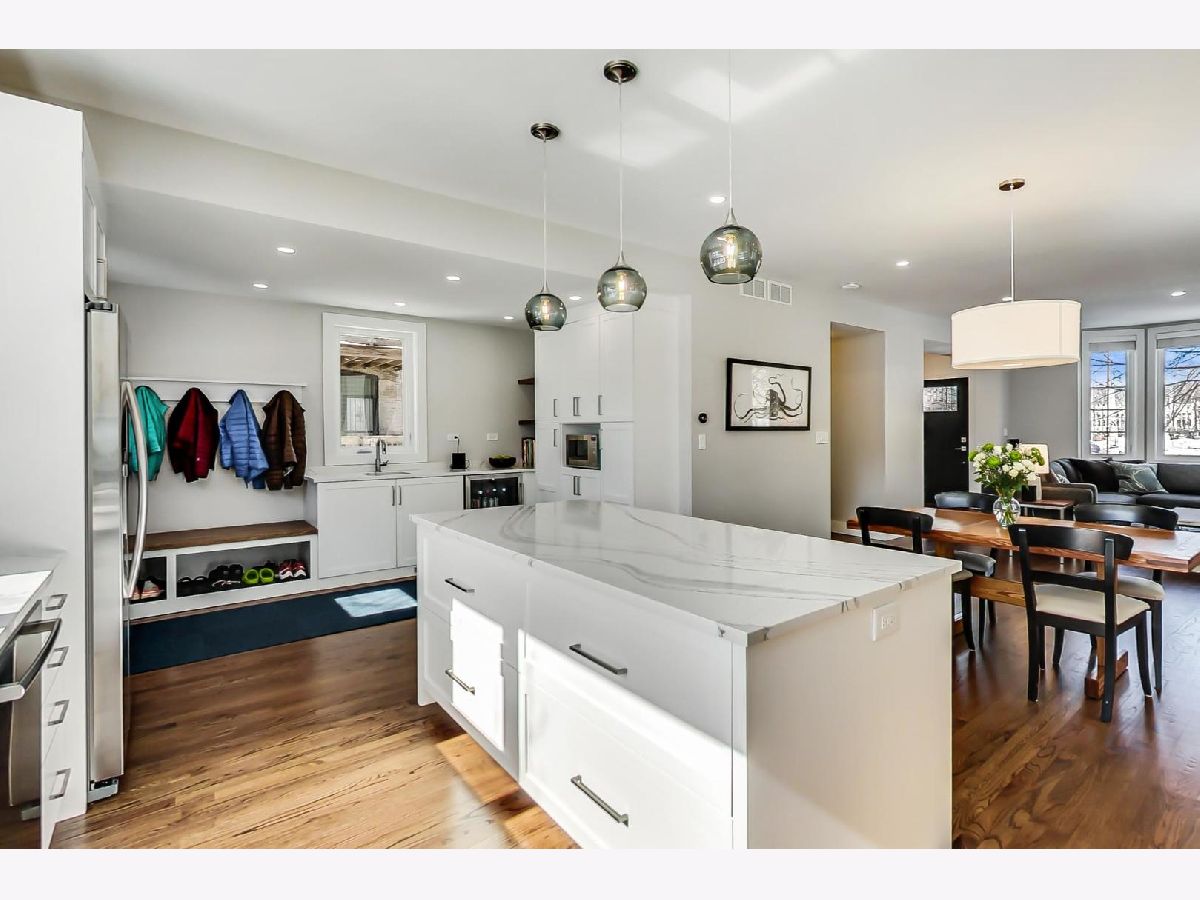 A rare find. A recently designer-renovated single family home in excellent condition with sunny yard, deck, 2 car garage within 2 blocks of the University of Chicago campus and the Lab School. Newer construction, updated windows, gorgeous wood floors and 9 foot ceilings throughout. Open concept first floor includes recently enhanced kitchen with island and stainless appliances. Three bedrooms and 2 baths upstairs including large ensuite bath, laundry on upper floor. Family room in the basement with potential for further expansion into the large storage area. Principal bedroom has vaulted ceiling with extra windows. Recent roof, AC, furnace, hot water heater, and lots more. Virtual tour shows owner's furniture.
