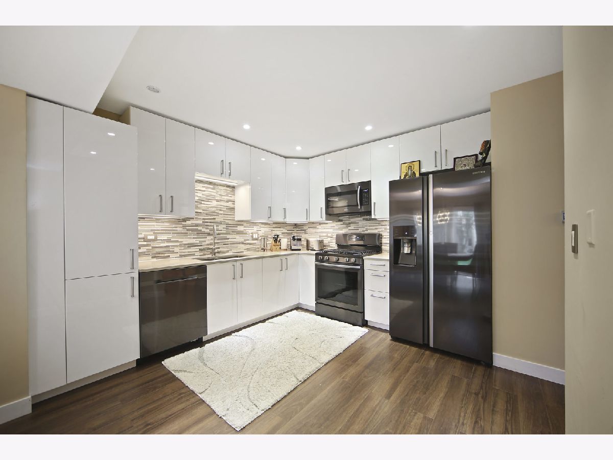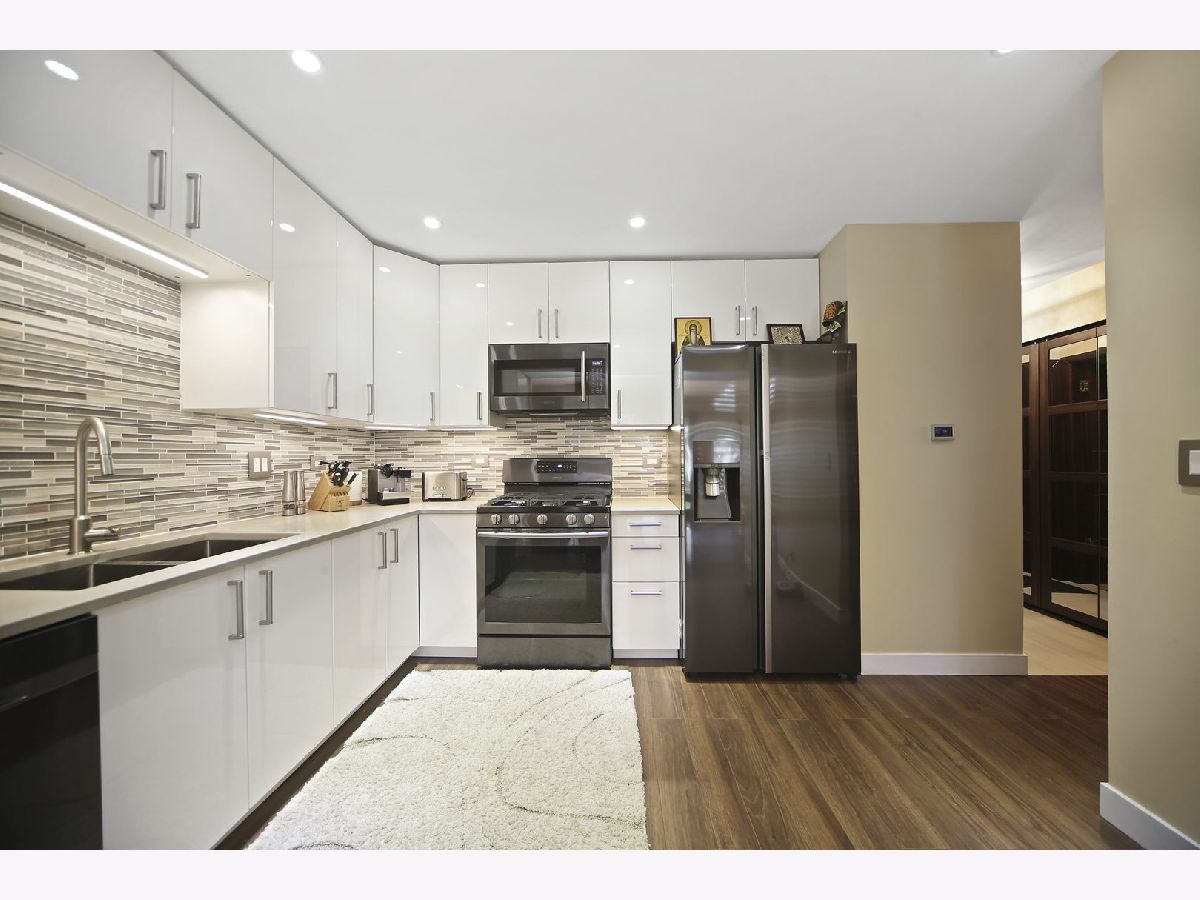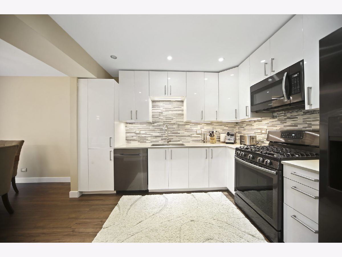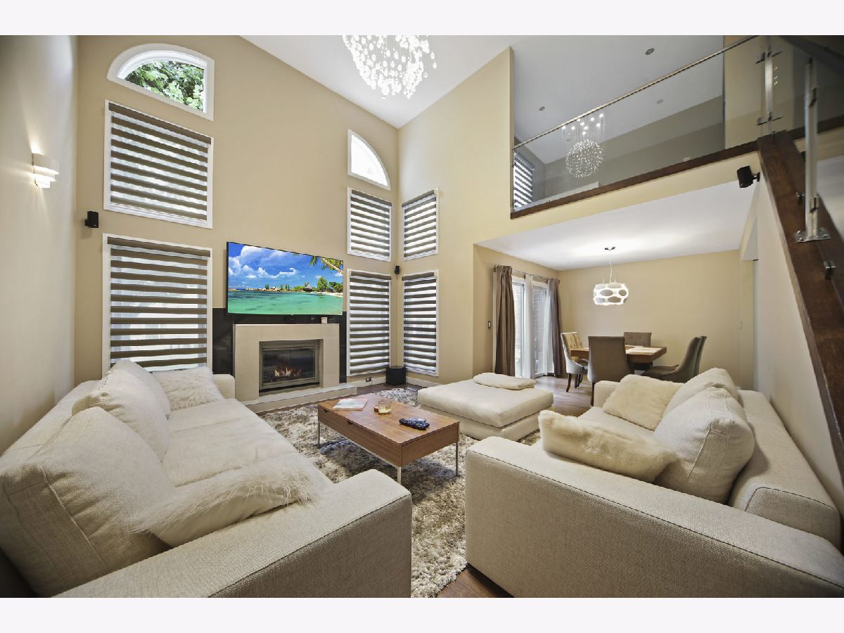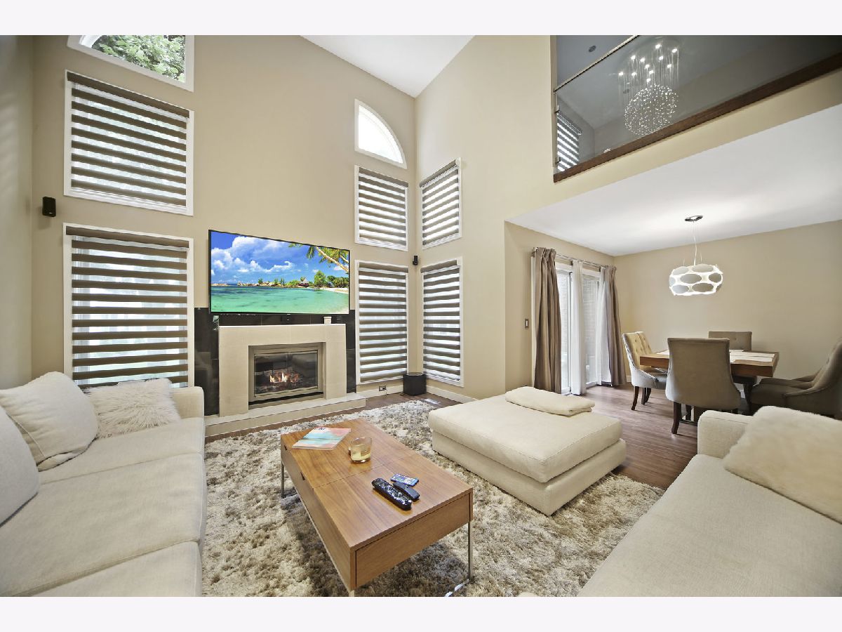 Outstanding modern renovation of this 3 bedroom, 2.5 bathroom townhome. Nothing to do but move in and enjoy. All hardwood throughout. Kitchen is gorgeous with white cabinetry, high end Samsung appliances, quartz countertops, and mosaic backsplash. Large two story living room soaked in natural sunlight. Gas fireplace with porcelain tile surround and wired surround sound. Custom stair railing to the second level. The master suite is quite the retreat with vaulted ceiling, walk-in closet, and phenomenal bath. The master bath features dual European vanities, large walk-in shower with rain shower and handheld. Spacious secondary bedrooms and fully remodeled hall bath with tub/shower. The lower level expands the home dramatically with large rec space, electric fireplace and ample storage. To much to list: surveillance cameras system, custom made glass railings with LED changeable color lights, new fully remodeled modern bathrooms, 3 home sound system in Master Bedroom, Living Room and Basement, modern Italian Doors, Electric Garage Heater with new LED lights, new humidifier, new washer and dryer. It is a MUST see!