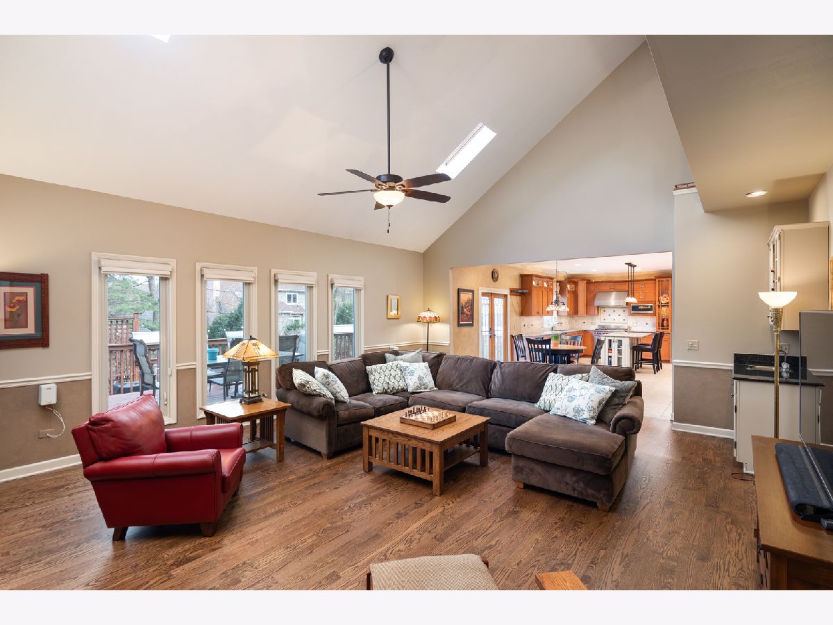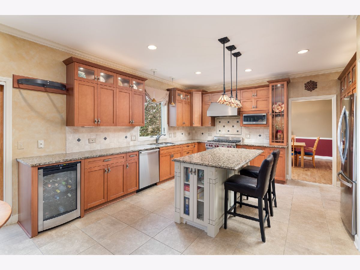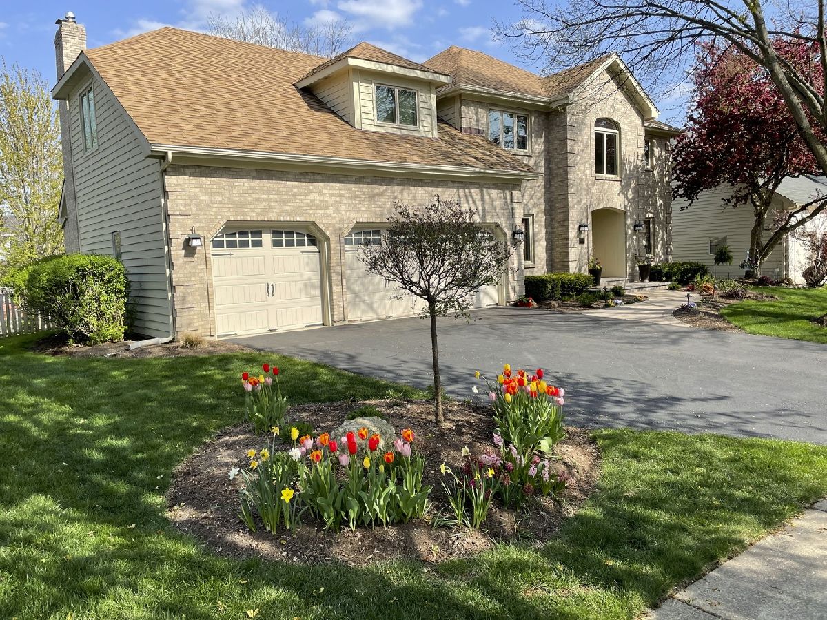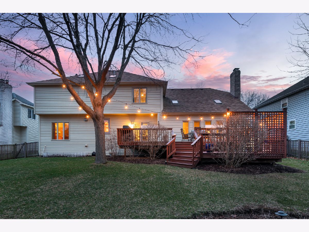 Beautifully situated in the sought after north Naperville West Wind subdivision, this five bedroom home will capture your heart from the moment you enter the two-story foyer. The bright and open prairie-style kitchen is perfect for entertaining with its granite countertops, under-counter beverage center and 6-burner Wolf stove and oven. High-end custom wood cabinets also feature a floor to ceiling pantry with plenty of storage, and the large island offers seating. Leaded glass doors open off the kitchen dining area onto the two-level large deck perfect for grilling and outdoor living. The fenced-in yard showcases professional landscaping and mature plants. For more formal seating, the spacious dining room has a tray ceiling and oak flooring and the living room has crown molding. The vaulted ceilings with skylights and large windows in the family room invite sunlight, and the wood burning fireplace features a floor to ceiling brick surround and wood built-ins. The family room also has a wet bar tucked in the corner and a second floor overlook and wood floors. The first-floor office with crown molding and a closet could double as a bedroom. A half-bath with granite counters and a laundry/mud room finishes the first floor. Upstairs, the master suite offers a private loft sitting area with morning light overlooking the foyer, cathedral ceilings, and a large walk-in closet with custom organizer. The master bath impresses with a dual travertine shower, jacuzzi tub with travertine surround, and granite counters. Four good-sized bedrooms, a hall bath with dual sinks and granite counters, and a laundry chute complete the second floor. The carpeted finished basement has a bar and is wired for music. A finished storage area provides additional space. A solar-thermal water heater working in tandem with a secondary water tank increases the efficiency of the home, and the three-car garage has epoxy flooring. Exterior illumination and a covered porch welcome you home.