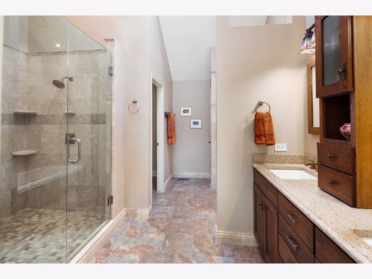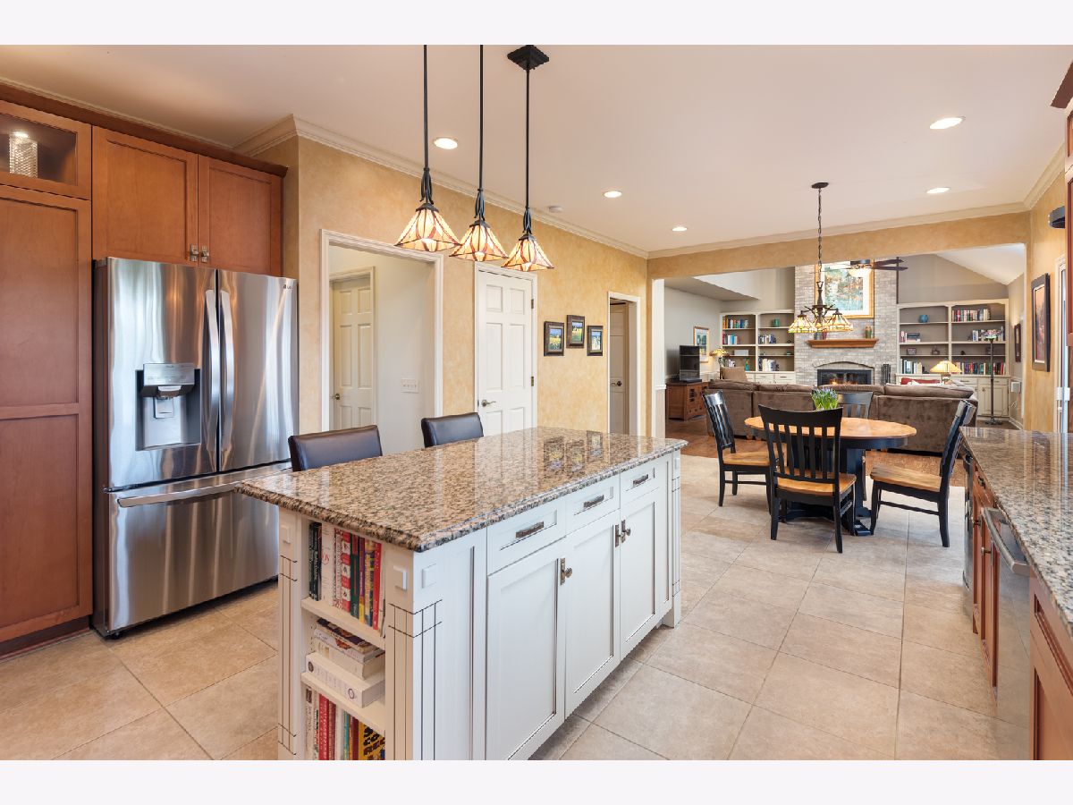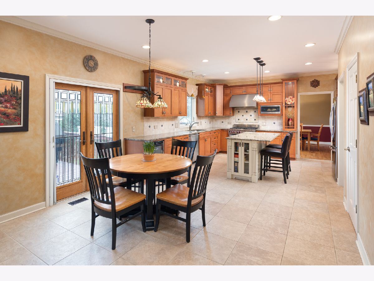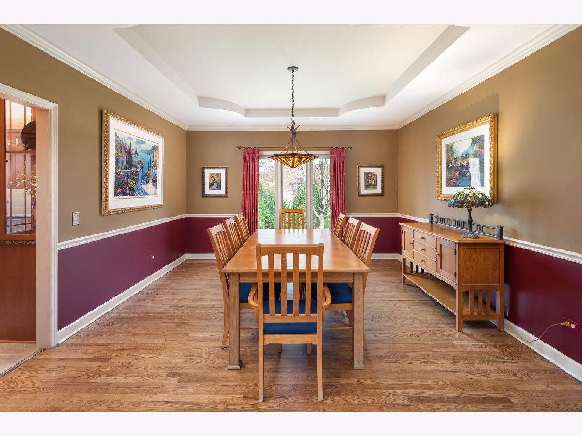 Beautifully situated in the sought after north Naperville West Wind subdivision, this five bedroom home will capture your heart from the moment you enter the two-story foyer. The bright and open prairie-style kitchen is perfect for entertaining with its granite countertops, under-counter beverage center and 6-burner Wolf stove and oven. High-end custom wood cabinets also feature a floor to ceiling pantry with plenty of storage, and the large island offers seating. Leaded glass doors open off the kitchen dining area onto the two-level large deck perfect for grilling and outdoor living. The fenced-in yard showcases professional landscaping and mature plants. For more formal seating, the spacious dining room has a tray ceiling and oak flooring and the living room has crown molding. The vaulted ceilings with skylights and large windows in the family room invite sunlight, and the wood burning fireplace features a floor to ceiling brick surround and wood built-ins. The family room also has a wet bar tucked in the corner and a second floor overlook and wood floors. The first-floor office with crown molding and a closet could double as a bedroom. A half-bath with granite counters and a laundry/mud room finishes the first floor. Upstairs, the master suite offers a private loft sitting area with morning light overlooking the foyer, cathedral ceilings, and a large walk-in closet with custom organizer. The master bath impresses with a dual travertine shower, jacuzzi tub with travertine surround, and granite counters. Four good-sized bedrooms, a hall bath with dual sinks and granite counters, and a laundry chute complete the second floor. The carpeted finished basement has a bar and is wired for music. A finished storage area provides additional space. A solar-thermal water heater working in tandem with a secondary water tank increases the efficiency of the home, and the three-car garage has epoxy flooring. Exterior illumination and a covered porch welcome you home.
