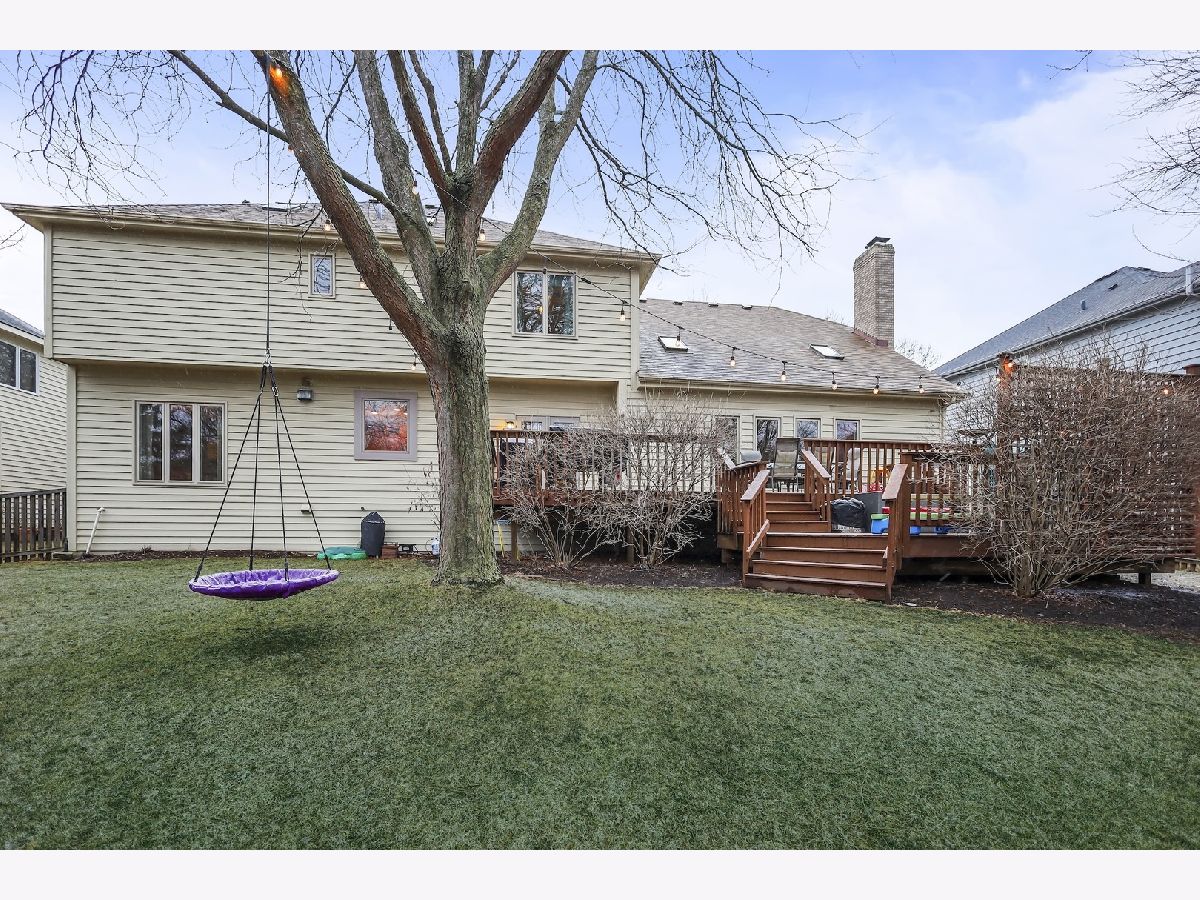 Stunning 5-bedroom home, located in highly sought-after West Wind subdivision of central Naperville. The two-story entry welcomes you into an expansive prairie-style kitchen featuring granite countertops, beautiful cabinetry, under-counter beverage center, 6-burner Wolf stove and oven, floor to ceiling pantry with ample storage, and a spacious island with seating. The two-story vaulted family room is bathed in natural light, showcasing skylights, a wet bar, a wood-burning fireplace surrounded by custom built in bookcases, and a second-floor overlook. The formal dining room, with a tray celling, crown molding, and modern lighting, flows seamlessly into the living room. A first-floor office with crown molding, a large window, and a closet, offers potential as an additional bedroom. The master suite boasts cathedral ceilings, a generous custom walk-in closet, a private sitting room, and a luxurious ensuite bathroom with a Jacuzzi tub, walk-in shower, dual vanity, and private water closet. The fully finished basement includes a spacious recreation room with a bar, a large storage room, and a full bathroom. A solar-thermal water heater working in tandem with a secondary water tank, enhances the home's energy efficiency. Prairie-style leaded glass doors from the kitchen dining area open to a two-level deck and a fenced-in yard, perfect for outdoor entertaining. The 3-car garage has epoxy flooring. Located in award winning School District 204. Walk to May Watts Elementary School and beautiful May Watts Park! Conveniently located near vibrant downtown Naperville, BNSF Metra, and I-88.