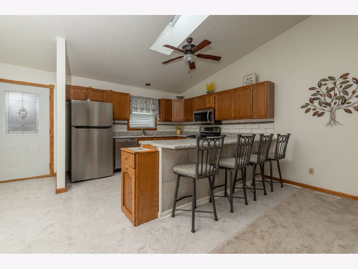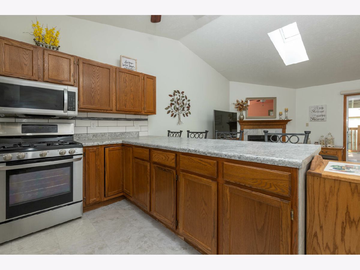 TOTALLY REMODELED RANCH WITH OPEN AND AIRY FLOOR PLAN. VAULTED CEILINGS. SKYLIGHTS WITH BLINDS FOR NATURAL SUNLIGHT. NEWER STAINLESS STEEL LG STOVE, DISHWASHER, MICROWAVE AND REFRIGERATOR. LARGE BREAKFAST BAR FOR ENTERTAINING WITH NEWER COUNTERTOPS. NEWER FLOORING AND TILE BACKSPLASH IN KITCHEN. FIREPLACE IN GREAT ROOM WITH NEWER PATIO DOOR LEADING TO COVERED PATIO WITH NEWER DECKING AND RAILINGS. OVERSIZED SHED WITH ELECTRIC IN ADDITION TO FENCED AND PRIVATE YARD. NEWER SIDING, SOFFITS, GUTTERS AND WINDOWS. NEWER HOT WATER HEATER, SUMP PUMP AND WATER SOFTENER. NEWER CONCRETE 24 FOOT WIDE SIDE DRIVEWAY WITH NEWER SIDEWALK AND GARBAGE PAD. MINUTES TO SHOPPING, INTERSTATE AND SCHOOLS. MOVE IN IMMEDIATELY. A MUST SEE!