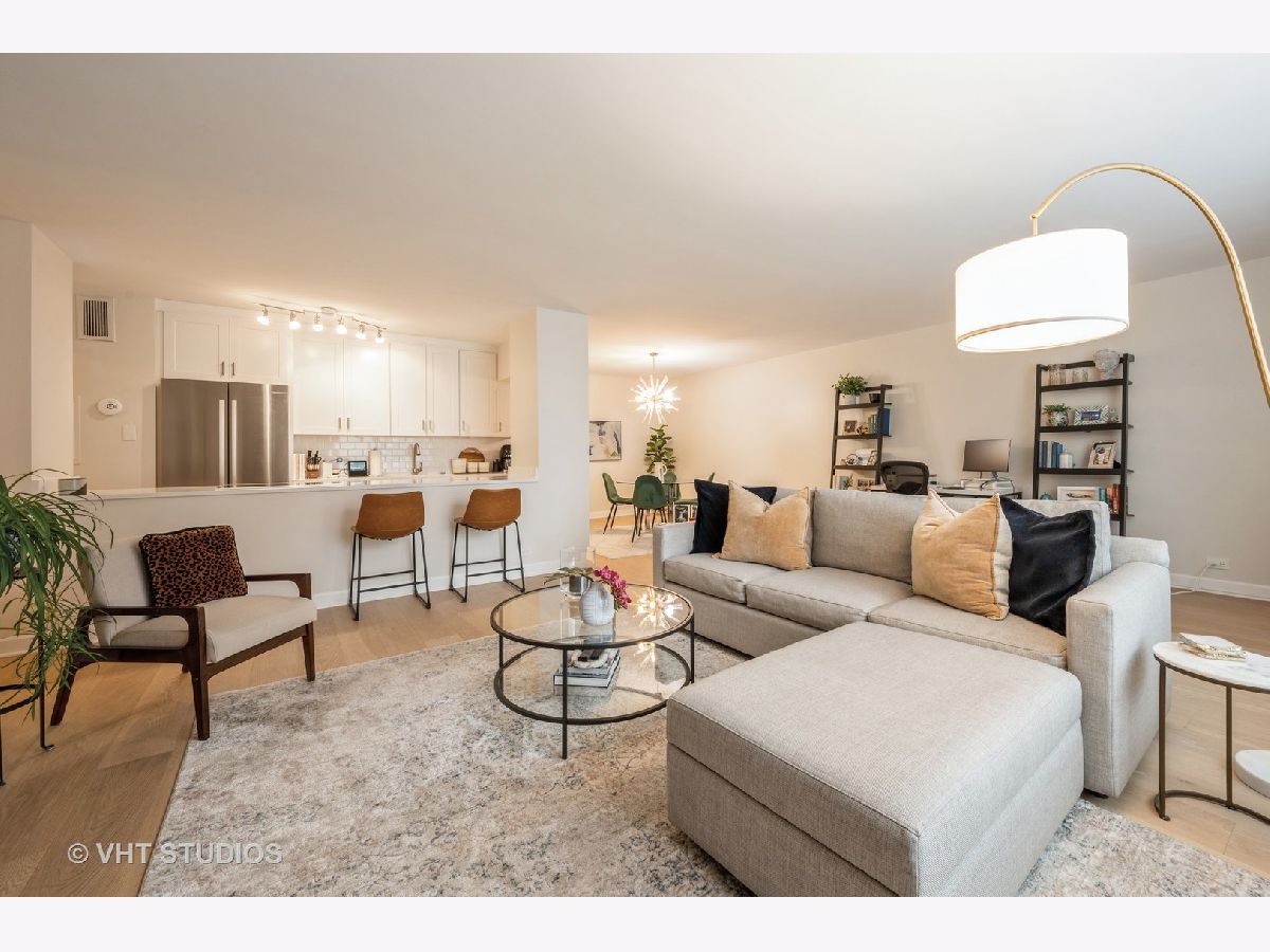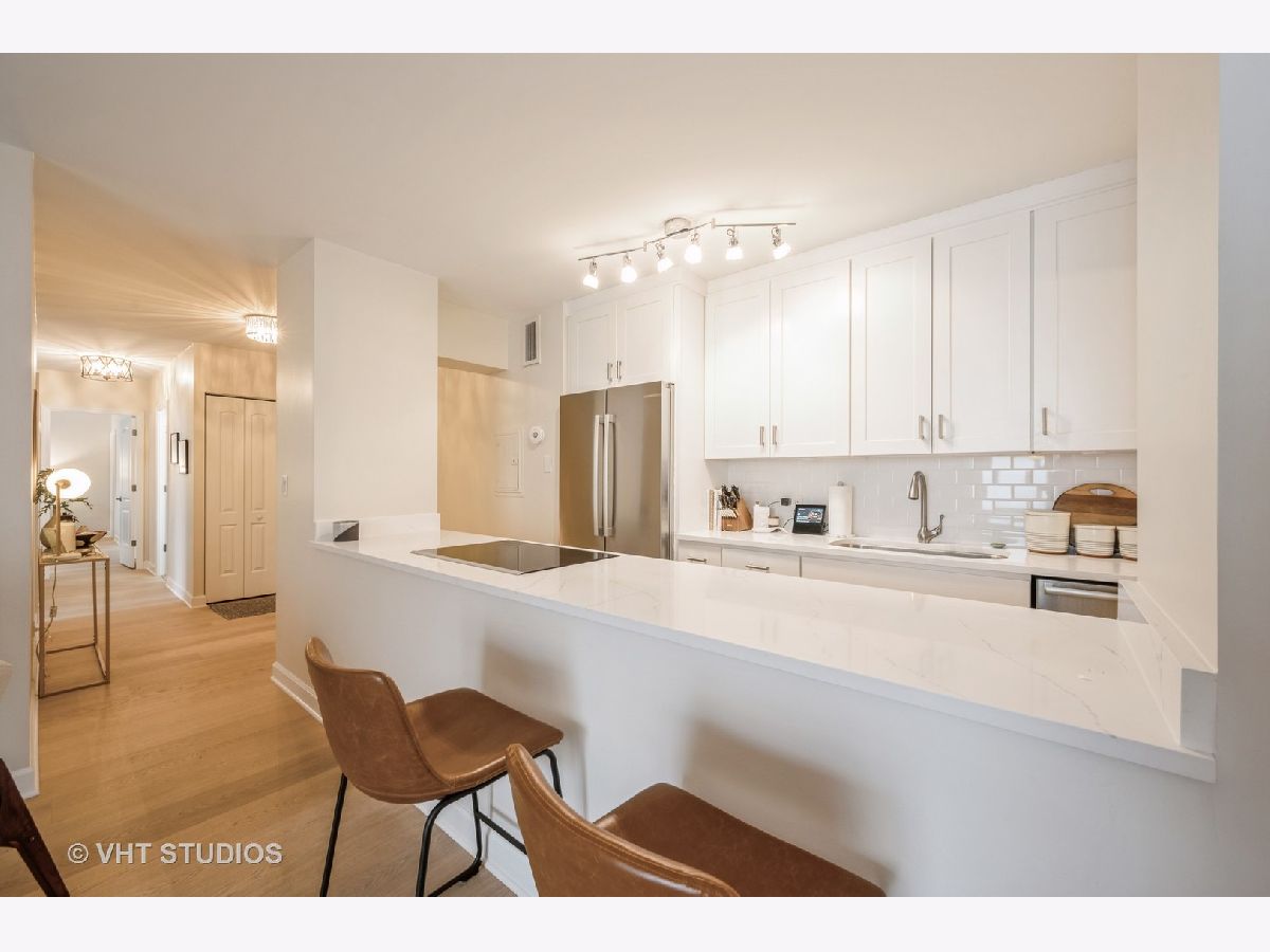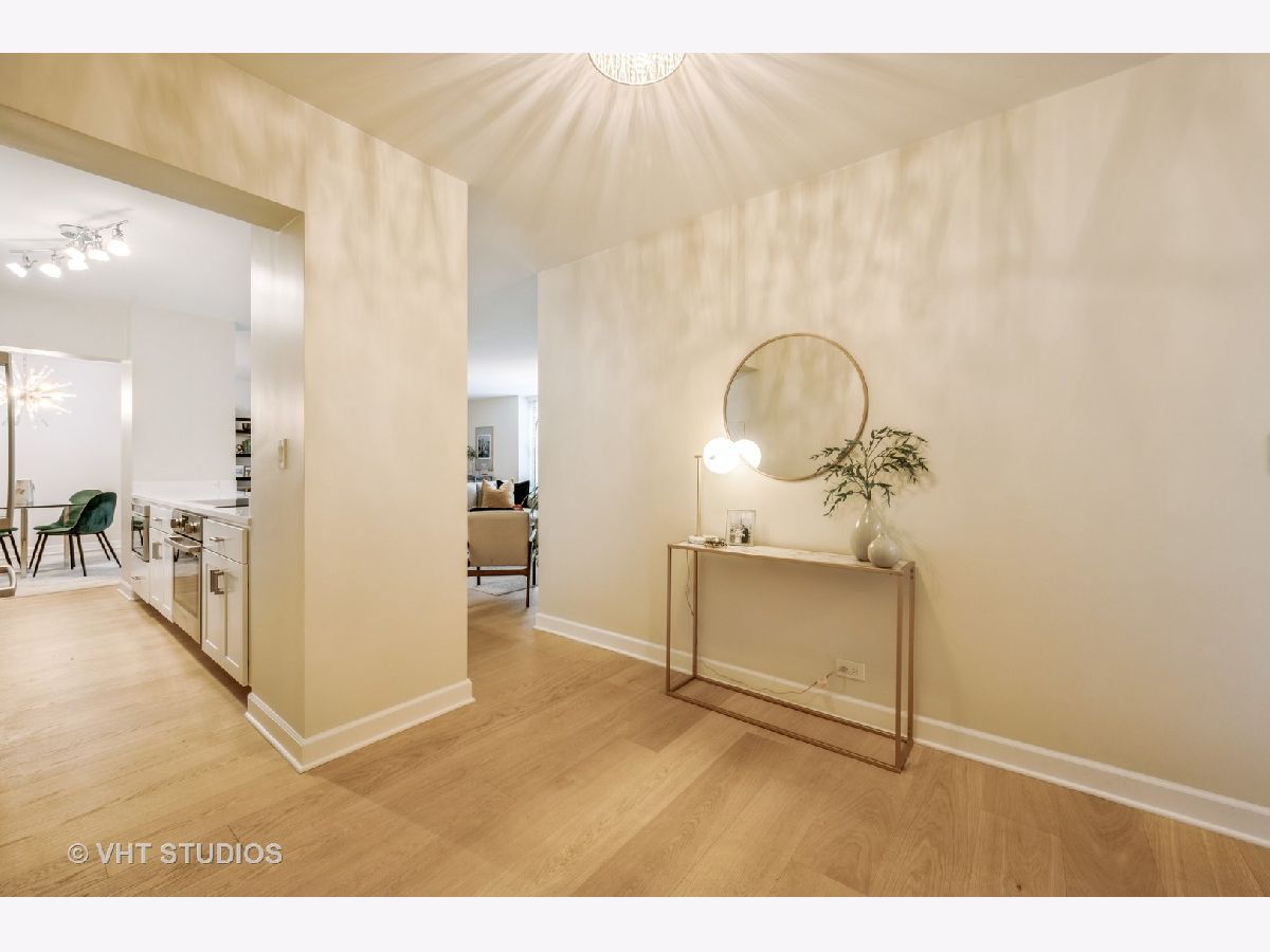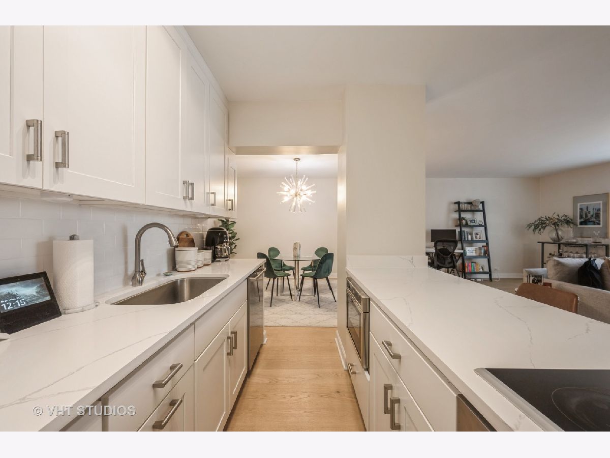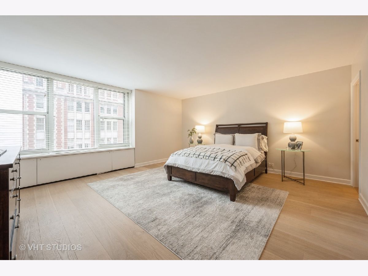 Stunning Gold Coast 2bed/2bath southwest corner unit has been renovated to perfection! Enjoy the desirable open concept floor plan that is flooded with natural light. The spacious 1650sf home features wide-plank oak floors throughout. The upgraded, gourmet kitchen has custom cabinetry, quartz countertops, premium stainless steel Bosch appliances, stone backsplash, a breakfast bar and dedicated space for dining. The extra large primary bedroom boasts a walk-in closet and an en-suite remodeled bathroom. Spacious, second bedroom with oversized closets. A dedicated closet for in-unit laundry with sink. Located on a lovely, tree-lined street in a full amenity, boutique high-rise building, you will also have access to a 24hr doorperson, receiving room, bike room, newer elevators, storage, plus a rooftop with a sundeck, pool and stunning city/lake views. Indoor valet parking available for rent through building, as well as an assigned storage unit. Located just steps from all the Gold Coast has to offer: Chicago's lakefront, parks, shopping, dining, theaters, public transportation, and more!