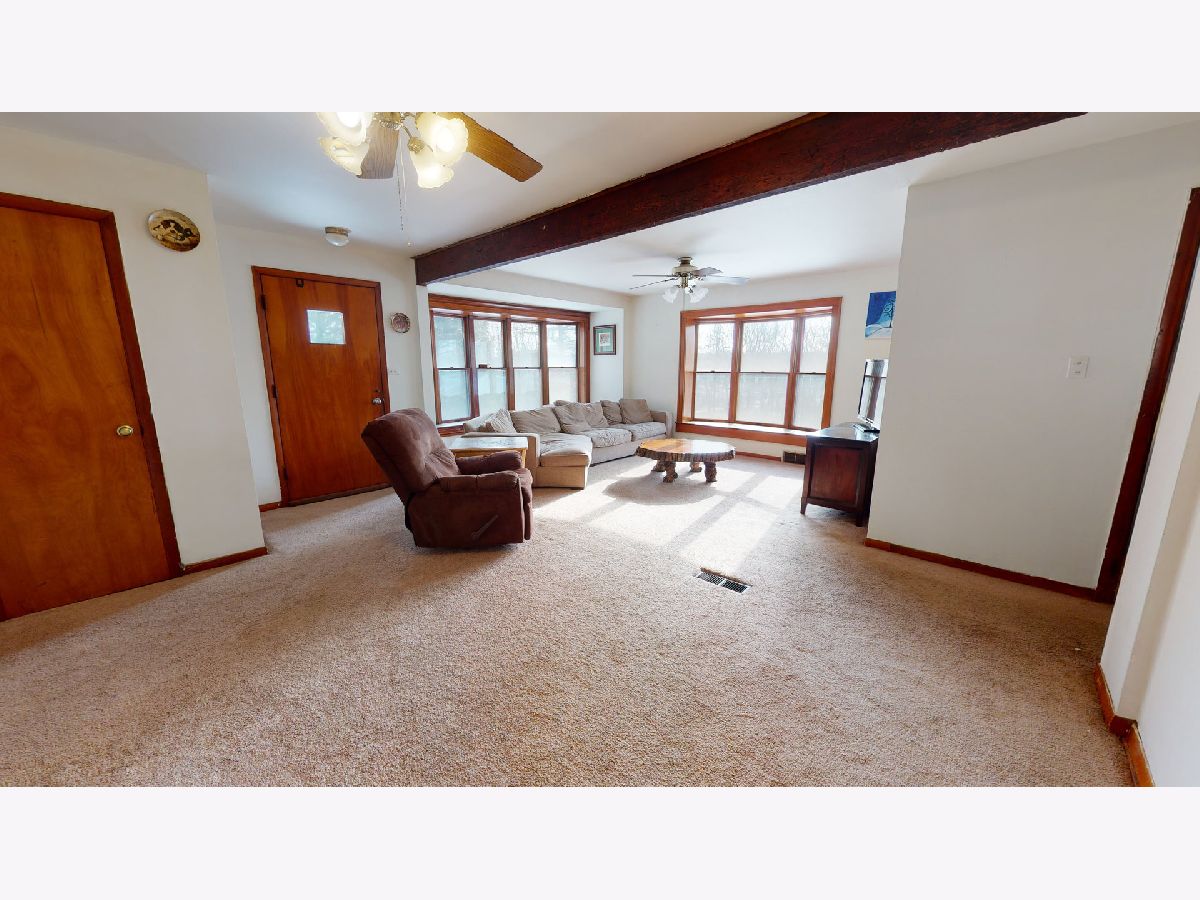 Check out our Interactive 3D Tour! Looking for Acreage? This is it! Approximately 2.7 acres of ultra private land nestled on a dead-end street. All Brick home offering 5 bedrooms and 2 full baths with a full unfinished basement and a detached, oversized 2.5 car garage. Home is located in unincorporated Cook County with the feel of being in the country but yet close to everything you need! The large living room is carpeted - there is hardwood under the carpet. Nice wood beam that gives the room separation and a bay window overlooking the front yard. Large eat-in kitchen with ample cabinet and countertop space, brick accent wall/backsplash and black appliances. Enclosed back porch off of the kitchen area - this is a great spot to sit and enjoy your morning coffee and take in the peaceful, serene setting! Two bedrooms on the main level - both with hardwood floors and a full updated bathroom with newly tiled shower and updated vanity and lighting. Second level offers three bedrooms and a full updated bathroom - tub has new tile surround, updated vanity and lighting. Walk-in attic space that can easily be converted to extra living space if desired. The roof was replaced approximately 7 years ago and the water heater - approx. 5 years ago. Absolutely beautiful acreage! Great location with easy access to 355, shopping and dining. There are two separate PIN numbers. Two sheds on the property are in AS IS condition. Schedule your showing today!