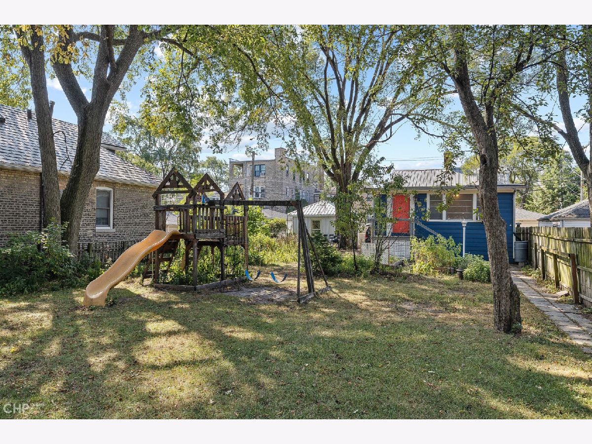 Delight in the charm of this 2-bedroom cottage situated deep on a lot that offers fenced yard, raised garden beds and patio with fire-pit for your chilly evening enjoyment. Generous living room and separate dining area plus semi-finished basement with unique 8 foot high ceilings adds fabulous flexible family space. Close to park with open field and playground, the home is just a few short blocks to the new Robert Crown Center with ice rinks, basketball court and branch library. Home is being sold "as-is"