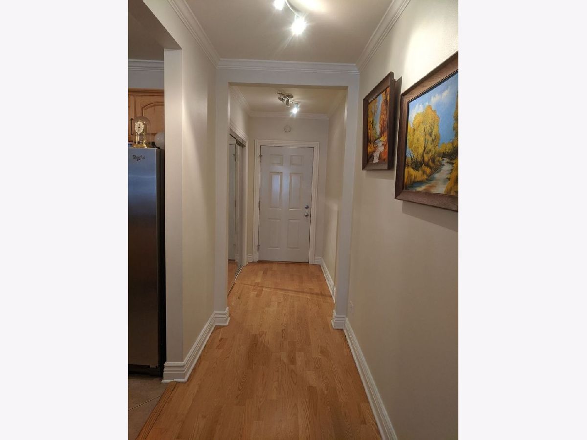 Beautiful 2 bedroom 1 bath unit in Des Plaines! Large living and dining combo, newer kitchen w/granite counters, SS appliances & breakfast bar. Crown molding, hardwood floors, Newer windows. Monthly assessment includes heat & water! Marble bath w/Jacuzzi. Covered parking included! Close to transportation, Metra, downtown Des Plaines!