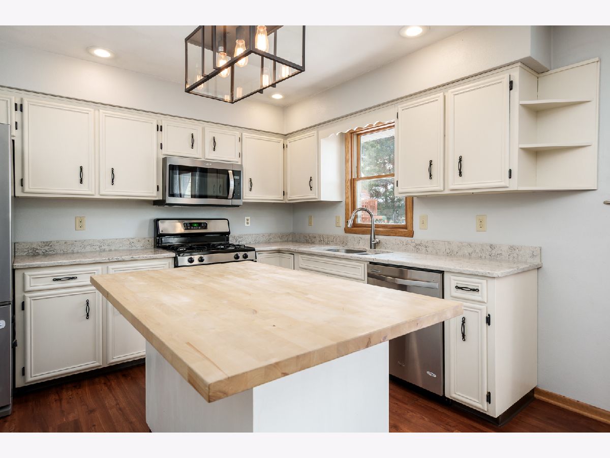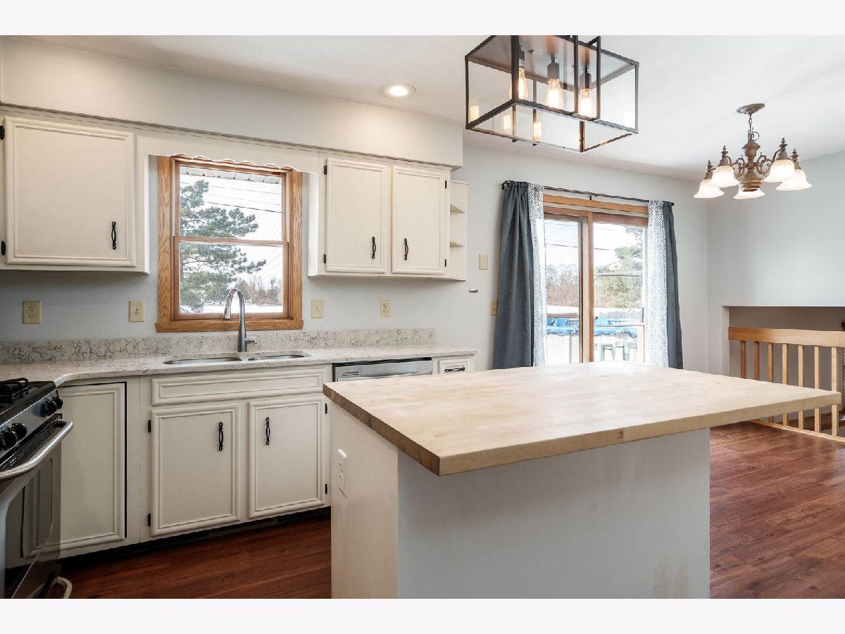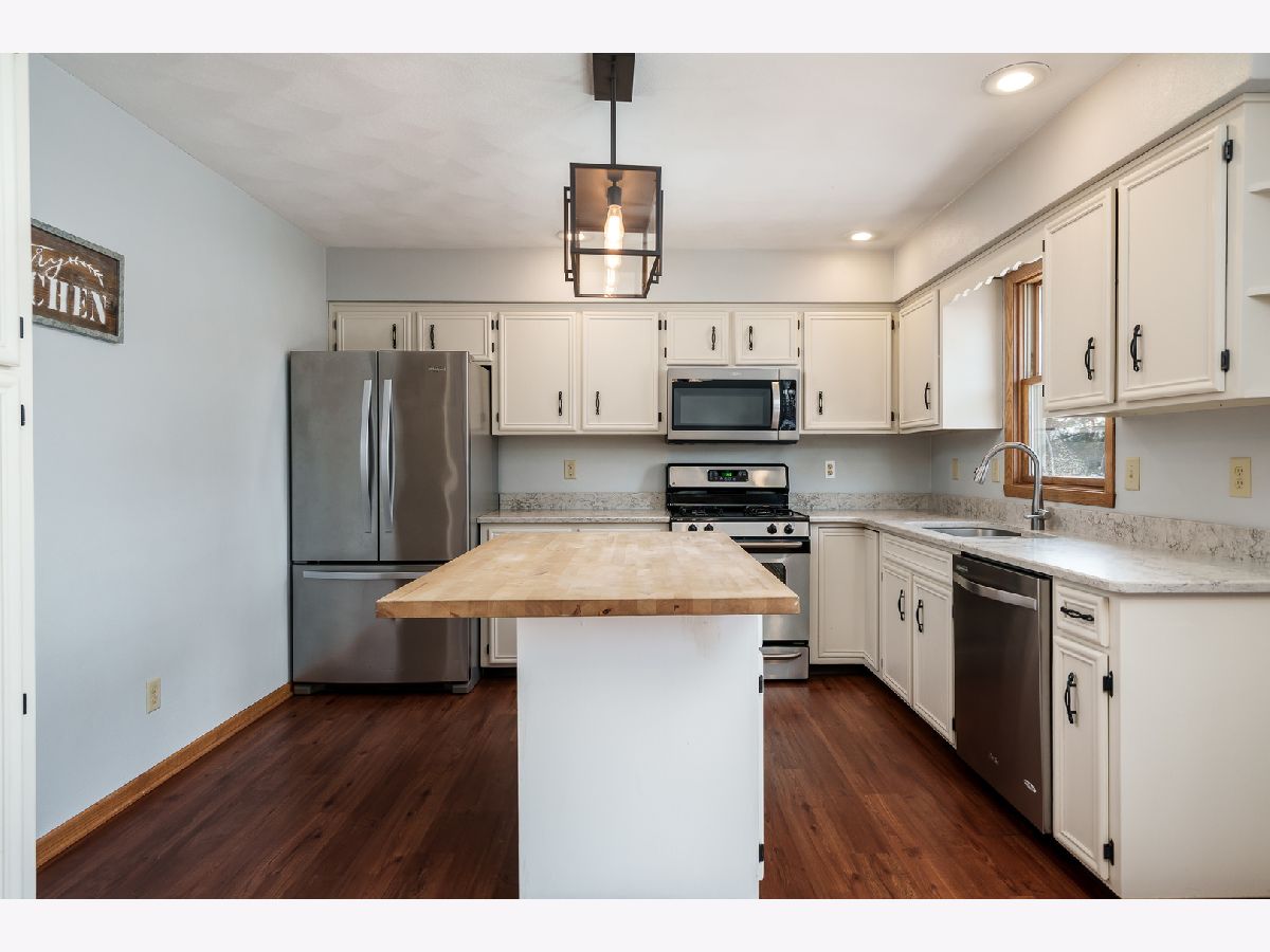 Welcome to this spacious tri-level home in the desirable Kensington Subdivision, located in the Hononegah School District. A charming covered front porch welcomes you inside, where you'll find a formal living room and an open entry flowing into the dining area and updated kitchen. Luxury vinyl plank flooring runs through these main spaces, and the kitchen features painted cabinetry, a center island with butcher block top, and newer light fixtures. Just a few steps down, the expansive family room offers a brick fireplace and space for a home office or reading nook. Off this area is the fourth bedroom and a full bathroom ideal for guests or related living. Upstairs, three additional bedrooms include a private primary suite with its own full bath, plus a hall bathroom for the remaining rooms. The basement provides room to expand with space for a future rec room. Step outside to a fully fenced backyard with a newer pool (2024) and a large deck perfect for entertaining. Addie water softener system and newer hot water heater. An extended parking pad and a 31/2-car garage add exceptional convenience. As an added plus the sellers are offering a home warranty with the sale of this home. A fantastic layout, great location, and thoughtful updates make this home a standout opportunity!