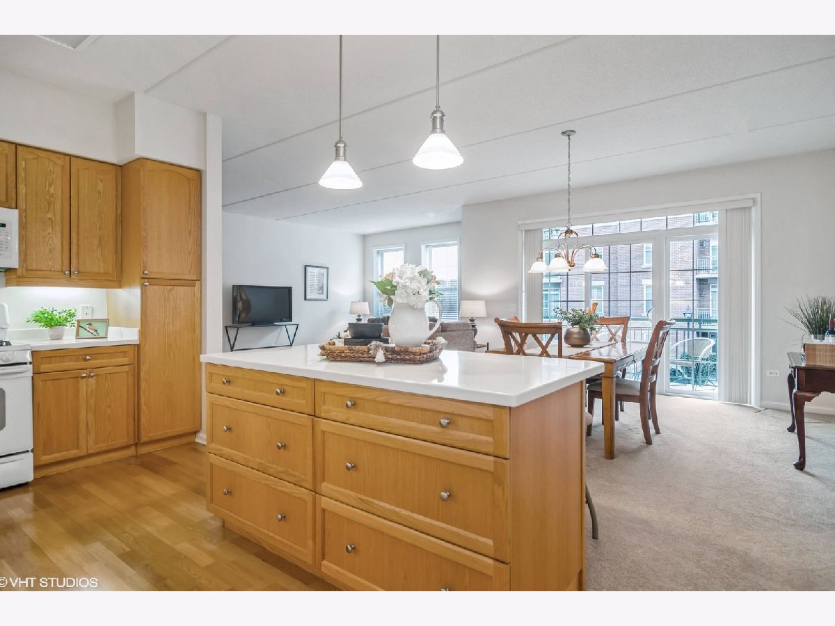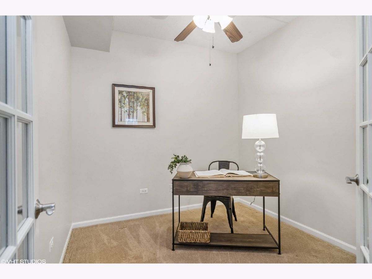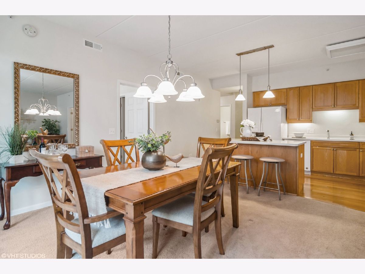 This light-filled beautiful 1 bedroom + den unit offers an incredible lifestyle in the perfect downtown Palatine location walking distance to Metra, pubs/restaurants, groceries, shopping, and directly across from Town Square! The open-concept floorplan features an oversized living room with sliders to the balcony, a great-sized kitchen with tons of cabinets and a center island outfitted with pull-out drawers and a breakfast bar. There is a separate dining area perfect for entertaining with plenty of room for your china cabinet or sideboard. The den adjoins the living room and has French doors for privacy, perfect for a home office or guest. The Primary Bedroom is generously sized and features a walk-in closet and ensuite bathroom. In addition to all these features, you'll find a powder room and in-unit laundry with a full-size washer and dryer. You'll love the outdoor space-a large balcony with room for a table and chairs to relax and take in the neighborhood activity. This unit also comes with indoor parking (space #9) in the heated garage and a private extra-large storage room behind your spot! Access is easy from either the indoor parking garage with elevators or the lobby foyer. Plenty of guest parking is also available