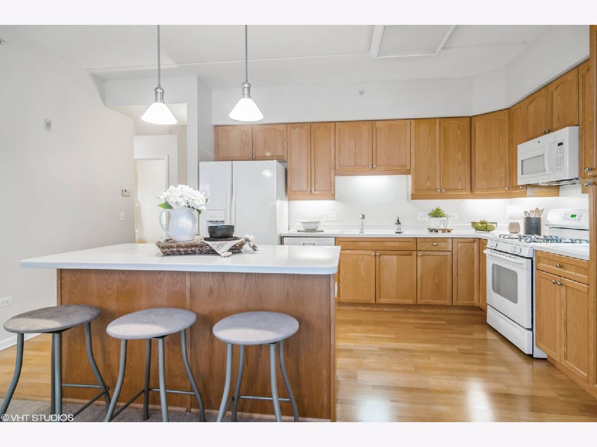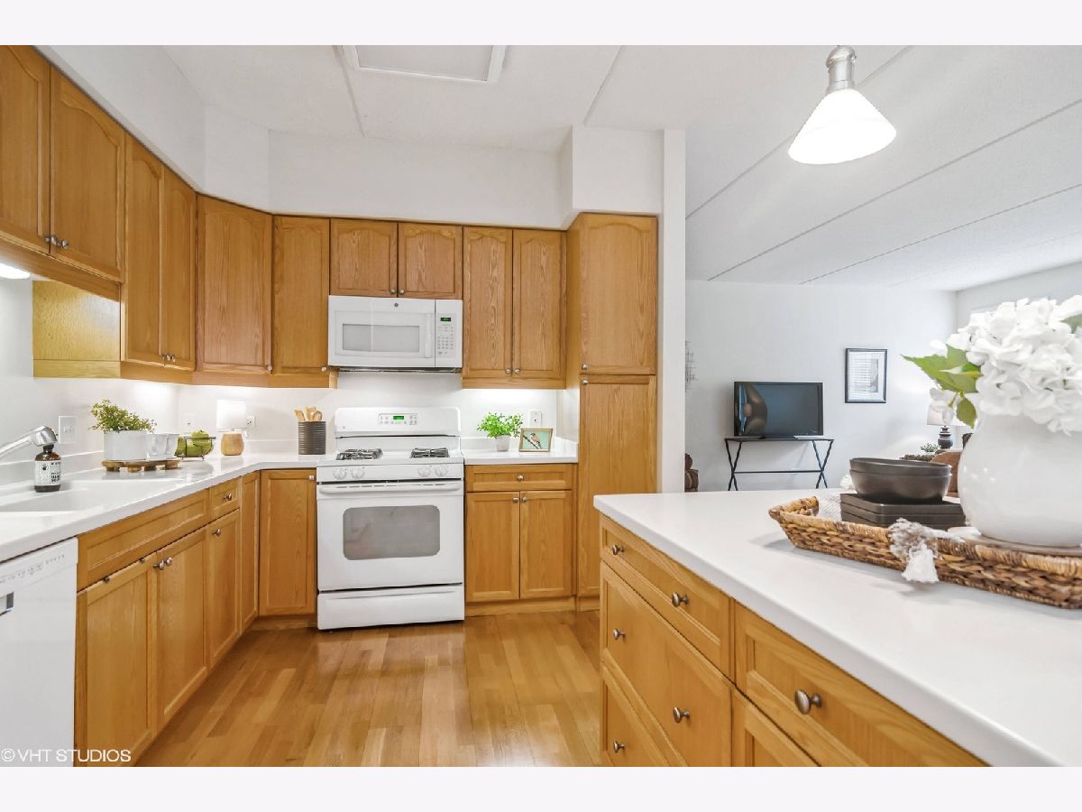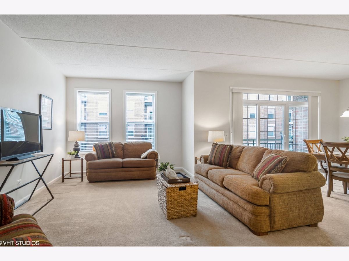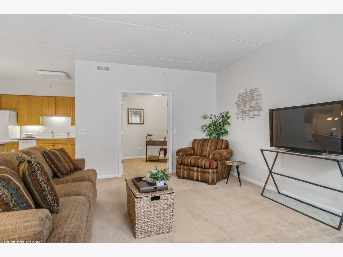 This light-filled beautiful 1 bedroom + den unit offers an incredible lifestyle in the perfect downtown Palatine location walking distance to Metra, pubs/restaurants, groceries, shopping, and directly across from Town Square! The open-concept floorplan features an oversized living room with sliders to the balcony, a great-sized kitchen with tons of cabinets and a center island outfitted with pull-out drawers and a breakfast bar. There is a separate dining area perfect for entertaining with plenty of room for your china cabinet or sideboard. The den adjoins the living room and has French doors for privacy, perfect for a home office or guest. The Primary Bedroom is generously sized and features a walk-in closet and ensuite bathroom. In addition to all these features, you'll find a powder room and in-unit laundry with a full-size washer and dryer. You'll love the outdoor space-a large balcony with room for a table and chairs to relax and take in the neighborhood activity. This unit also comes with indoor parking (space #9) in the heated garage and a private extra-large storage room behind your spot! Access is easy from either the indoor parking garage with elevators or the lobby foyer. Plenty of guest parking is also available