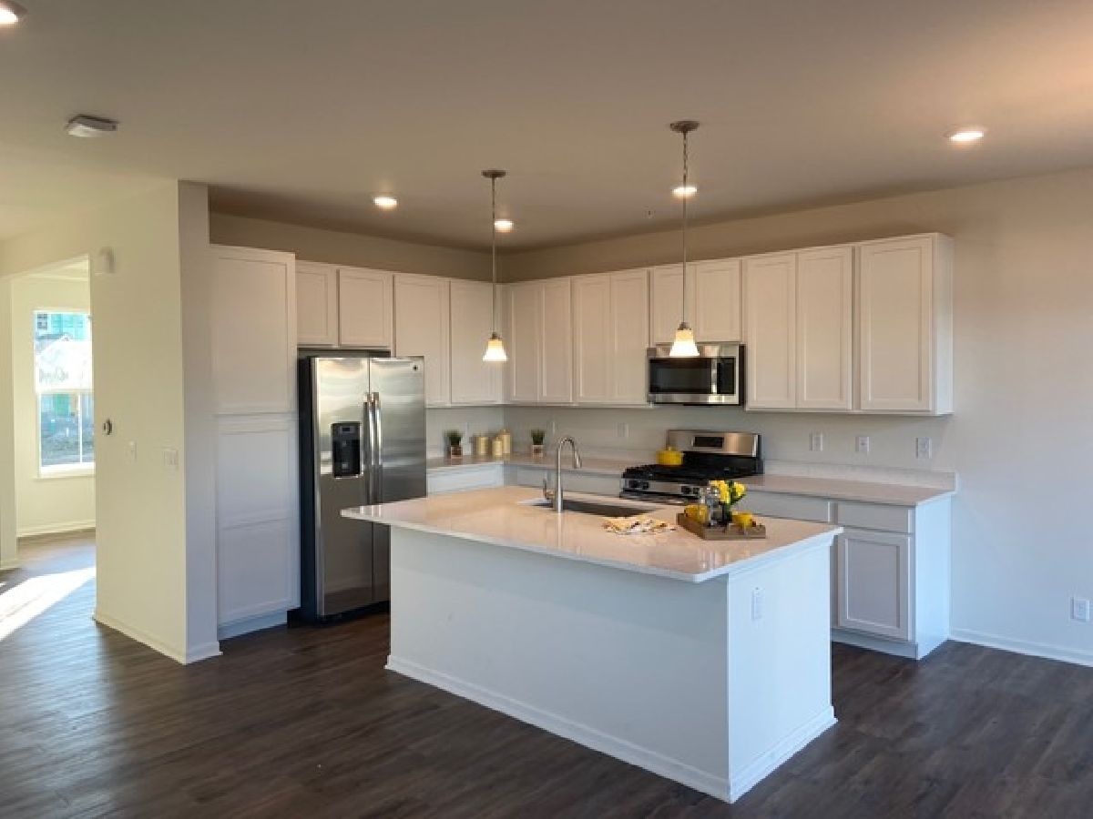 This Home has a covered front porch entry & gracious foyer to greet family & friends! Dining room is perfect for hosting all your special celebrations in life! Open floor plans allows great movement between spacious family rm & kitchen! The EI plan provides you with a dream kitchen- 42" Timeless Maple Cabinets, Center Island, Quartz Counters & GE Stainless Appliance Suite! Sunny Eating Area leads you to the back yard! Master Suite includes 2 Walk in Closets, Dual Sinks, Maple Vanity & Quartz Counters in Bath! Bedrooms 2 & 3 also feature Walk in Closets! 2nd Floor Laundry-ultimate ease! Loft makes for great play space or 2nd Family Room! Quality Build with 200 AMP Electrical, 95% Efficient Furnace & 13 SEER A/C! Insulated steel garage door with keypad & opener! 30yr Roof Shingles gives peace of mind! Stunning development to be a part of!