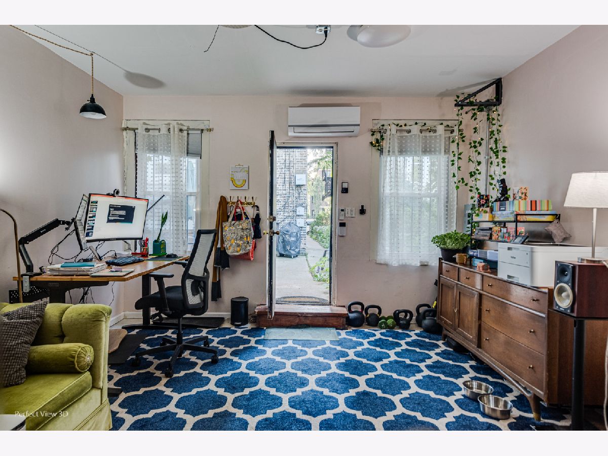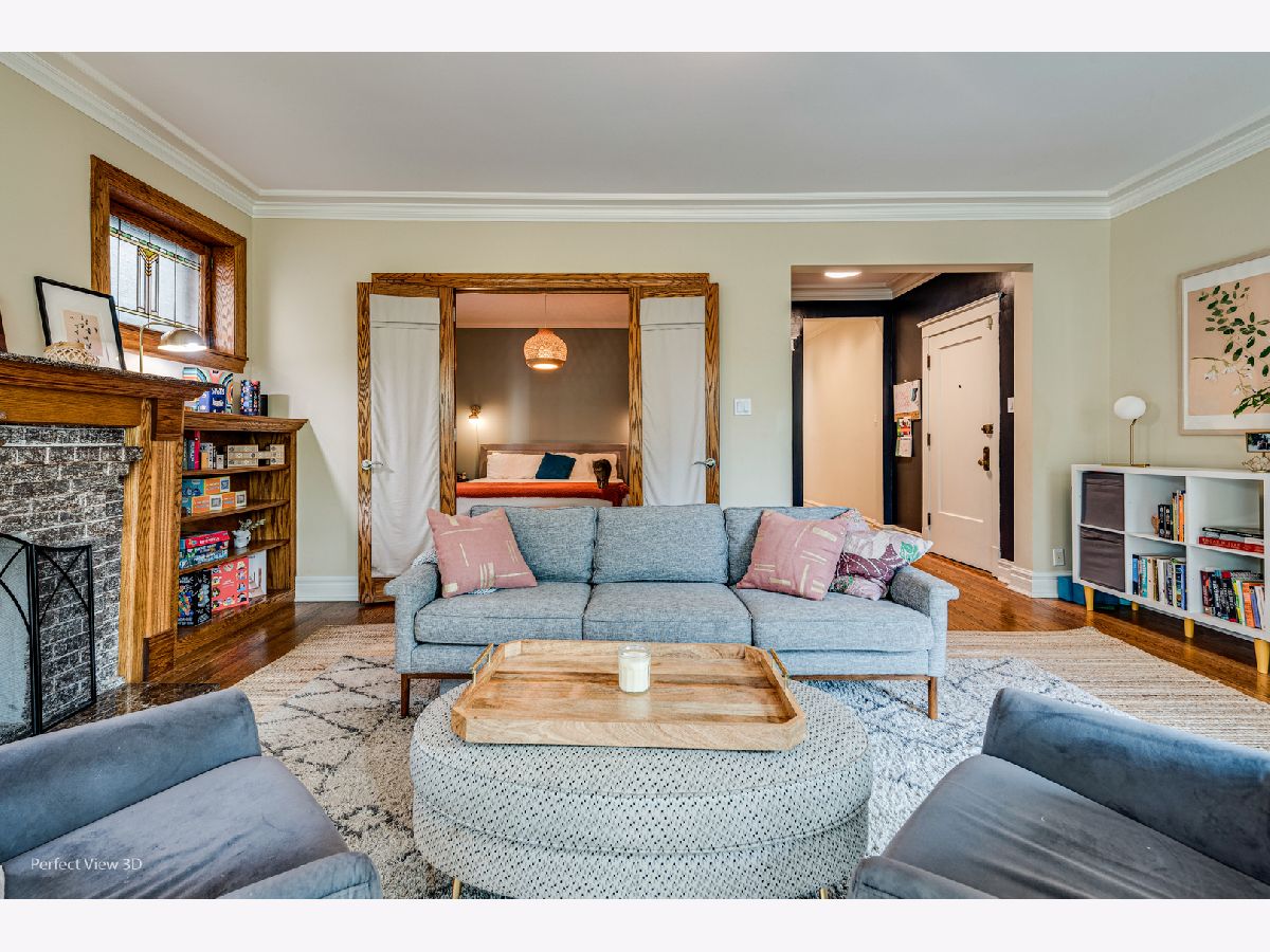 Stunning Edgewater condo in a center entrance six-flat building, featuring multiple live/workspaces. This unit boasts a beautiful gas fireplace flanked by built bookshelves and original Stained Glass windows. Beautifully updated kitchen with beautiful wood cabinets and high end stainless steel appliances plus a beautiful tile back splash. Large redone bathroom with a vintage flair. The spacious unit is modernized to perfection with charming vintage details intact. Ample storage within the unit and even more in the basement. Great backyard for gardening and multiple seating areas. The garage has been converted into a heated and air-conditioned office with an electric car charger. Conveniently located six blocks from Andersonville, two blocks from the L, three blocks from the Xpress bus downtown, and a short walk to the beach and Whole Foods. Don't miss out on this exceptional home-schedule a viewing today!