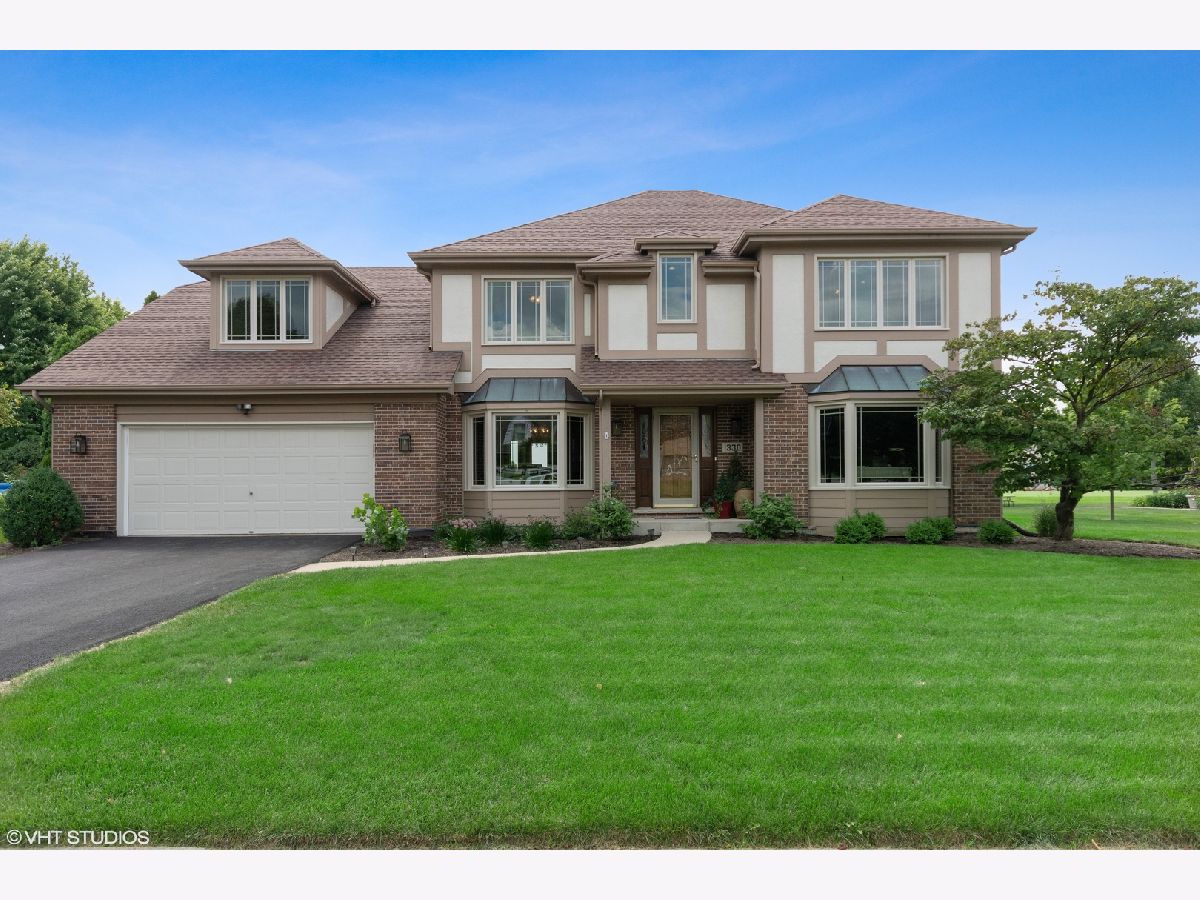 Over $100,000 in updates and improvements in the last 4 years! Gorgeous hardwood floors throughout main floor (minus 2nd kitchen & 5th bedroom/office), stairs, upper hallway - NEW 2018. Recessed lighting added throughout the home in 2018, ALL on dimmers! Complete kitchen update in 2018 with all new KitchenAid appliances, granite countertops. Island has pull-out storage cabinets below and lovely glass chandeliers hanging above. Kitchen open to the expansive family room and the gorgeous floor to ceiling, wood burning fireplace with gas starter and high-end realistic gas fire logs. The vaulted ceiling is accented with wood beams and skylights. Also, a ceiling fan/light new in 2018. Enjoy year-round views of the golf course, stretching far out into the distance, with beautiful scenery in every season! Just off of the Main Kitchen is the 2nd kitchen with the 5th bedroom or office, and a full bathroom. This combination would make a perfect guest suite or in-law arrangement. 2nd Kitchen is also a fantastic bonus for large-group entertaining! Dining Room has crown moulding, chair rail, recessed lighting, beautiful chandelier, and bay window. Living Room has crown moulding, recessed lighting, a bay window, and french glass doors. NEW carpet in all bedrooms. Master suite has a sitting area, vaulted ceiling with crown moulding, and a walk-in closet. Master bath includes a double sink vanity, large jetted soaking tub, and a separate shower. Spacious 2nd bedroom with sitting/study nook. 2 more bedrooms and a full bathroom round out the top floor. Large basement with multi-use room finished in 2017. Could be a 2nd office, media/gaming room, exercise room, etc. Tons of storage space with shelving. Walk out from the kitchen onto the patio and relax under the SunSetter motorized retractable awning with incorporated lighting (NEW in 2019) and enjoy those unobstructed views of the golf course! Perfect space for entertaining! Professionally landscaped, front & back, in 2019. Driveway NEW in 2018. Walk to elementary school, parks and Sunset Pool/Community Center. Quick drive to beautiful downtown Geneva, Fox River Trails, Metra, shopping, expressways, etc.