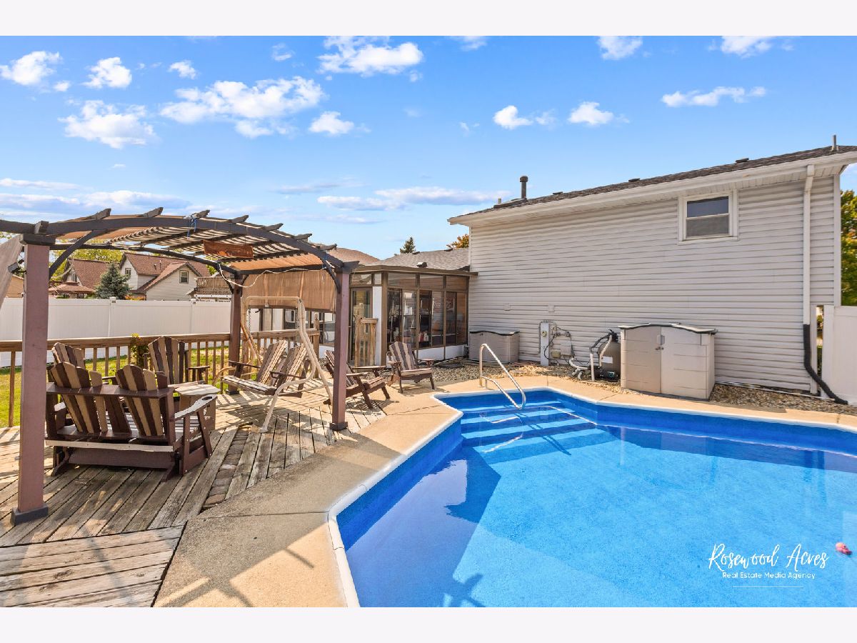 SPLASH! This home has options. In ground pool for the hot summer days or hot tub in the sun room for the cooler days and evenings. Wonderful backyard! Covered pergola with plenty of space to have gatherings and grilling area located near the pergola and in ground pool. This tri-level home has 3 bedrooms on the upper level and an updated bath with skylight. Main level hosts a gourmet kitchen with large bar. The kitchen is bright and cheery with ceramic tile back splash, wood grain look ceramic floors and a striking Coke Cola flare throughout. 2 sinks with plenty of workspace and prep area. Also, plenty of storage, a movable workstation with pot rack overhead. Generous sized dining room is conveniently located a few steps away. Lower level offers a living room and home office or possible 4th bedroom and bath with shower. Just off the kitchen you will find the sun room with the hot tub and extra entertaining area. Just a few more steps you're at the pool. Once you're in the fenced back yard you will notice a rustic shed with covered porch and rocking chairs just waiting for you. Large garden area also greets you if you wanting to get your hands dirty. Updates include September 2024 hot water heater, 2022-2024 front window, pool cover, pool liner, pool filter, pump, fencing. 2014 roof, 2004-2009 windows, siding, shed, kitchen, flooring in bedrooms, ceramic tile. 1 yr Home warranty offered with acceptable offer.