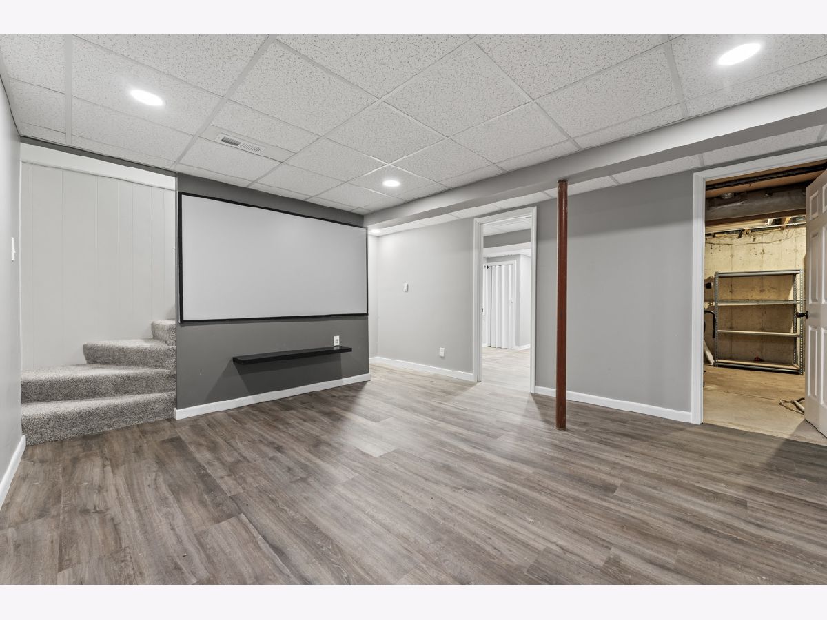 Imagine spending your evenings and weekends on a spacious brick paver patio, where you can enjoy your favorite music from built-in speakers while grilling on the gas grill next to a convenient beverage refrigerator. With plenty of room for friends and family, the fenced yard provides a safe space for kids and pets to play freely. As you enter through the front door, you'll be welcomed by an abundance of natural light and beautiful hardwood floors in the living and dining areas, as well as the cozy family room, complete with a wood-burning fireplace and flanking windows. The open kitchen features stainless steel appliances, including a new refrigerator (2023), and an inviting eating area that overlooks your perfect backyard retreat. Upstairs, you'll find three comfortable bedrooms and a shared primary bathroom. The finished basement offers a fantastic theater room and an additional bedroom, perfect for guests or extra privacy. Plus, the home is equipped with a water filtration system and softener for your convenience.
