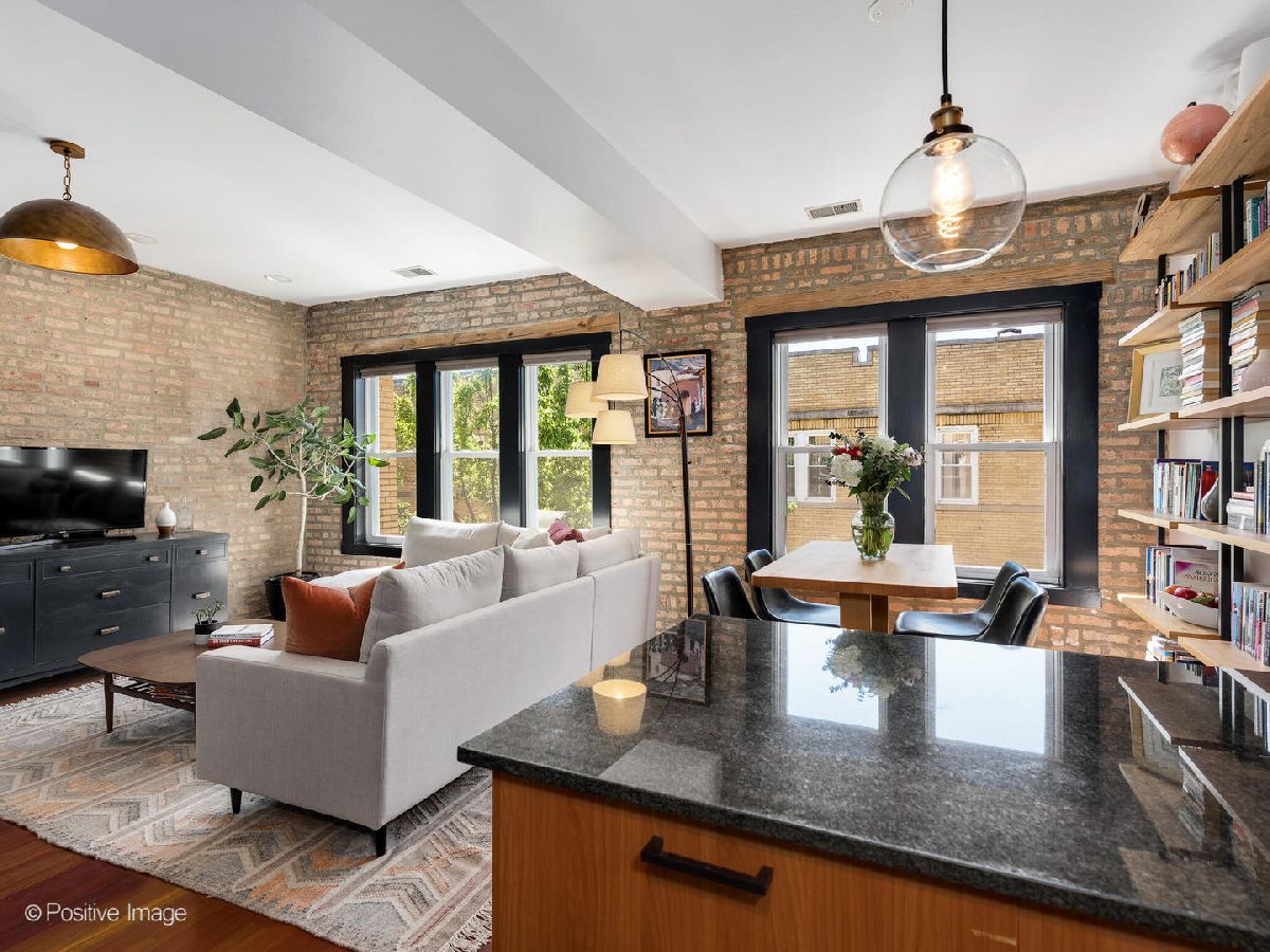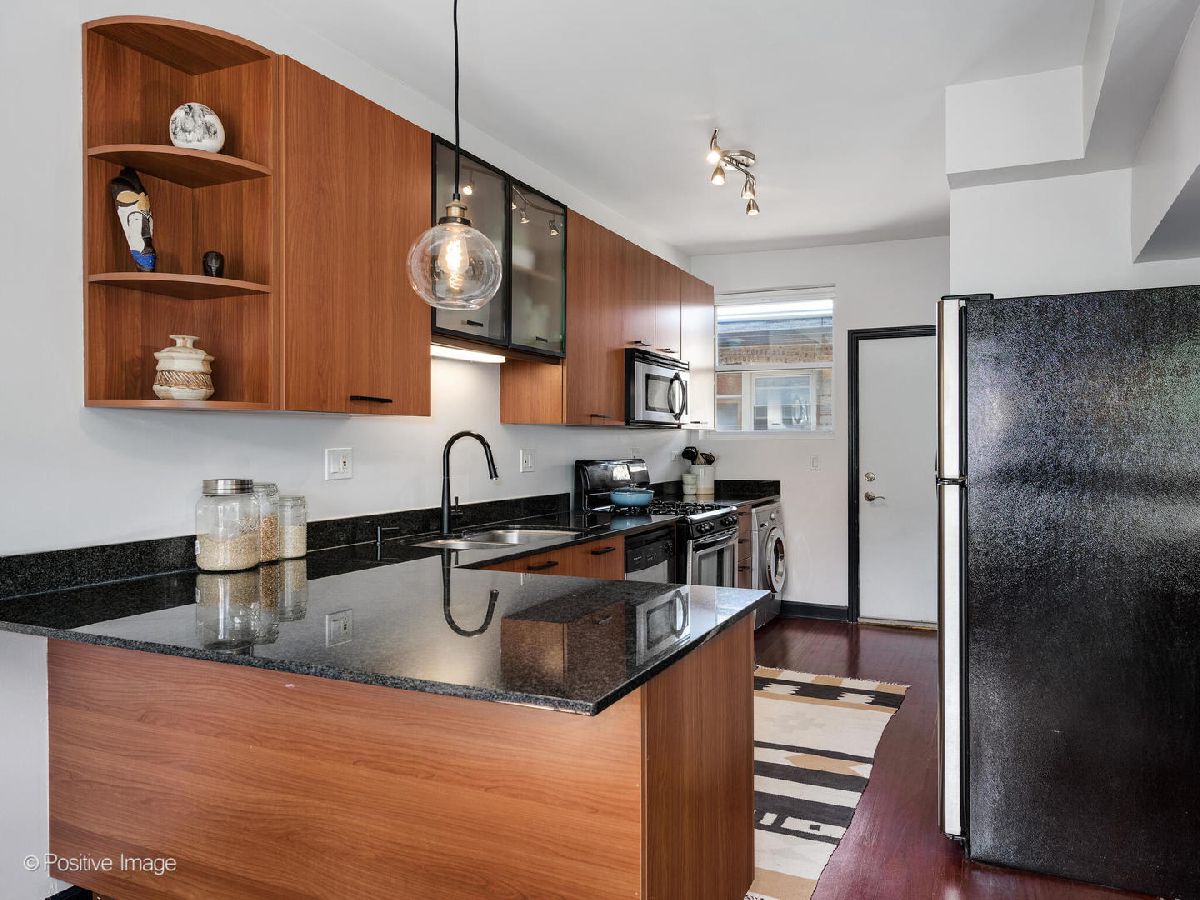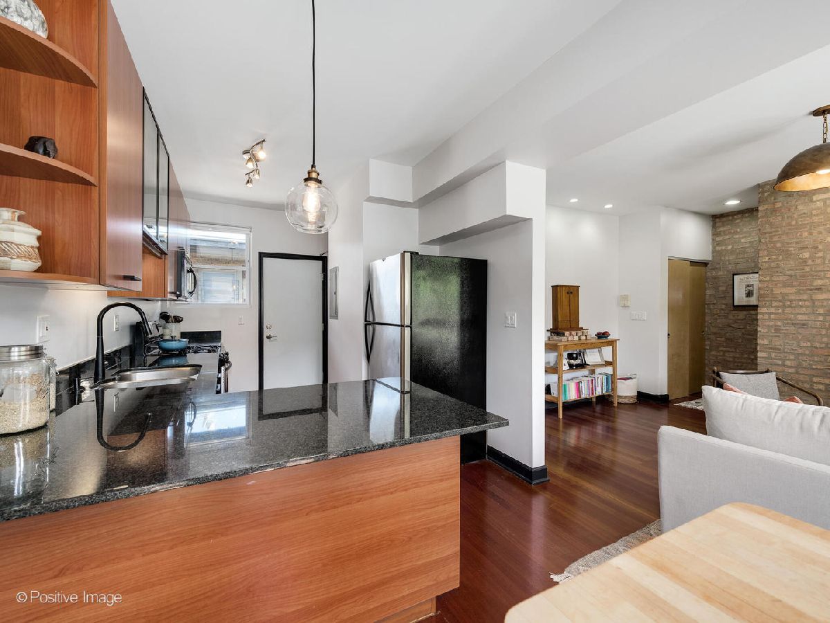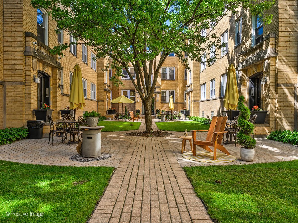 Welcome to this top floor 1 bedroom condo located in a charming courtyard building barely one block from the picturesque lakefront in Rogers Park! The moment you enter this home, you'll be greeted by tons of character including exposed brick walls, custom fixtures and a spacious layout perfect for any lifestyle. An open concept floor plan, the generously sized living room has a full wall of west-facing windows that are outfitted with high-end window treatments and flood in all day natural light. The kitchen is updated with a stainless steel appliance package, black hardware and newer faucet, granite counter tops, and breakfast bar seating for casual dining. Directly off of the kitchen is a back deck, perfect for a bistro table setup, small herb garden, flower boxes or for a compost bin. Off of the kitchen and living room is a designated dining area offering ample space for entertaining or use as a home office nook. The bedroom features a large closet, and is adjacent to the bathroom which has an extra wide vanity with great storage, a deep soaking tub and is finished with a window and natural stone tiling throughout. Not to miss is the in-unit laundry! Some of the best features of this home are the Brazilian Cherry hardwood floors, central AC/heat & entryway coat closet for additional storage. With nearly every light fixture and a bedroom fan newly installed, you are sure to appreciate the updates throughout this outstanding condo! Outside you'll find the most charming courtyard with shared tables, umbrellas & seating. Additionally, a private oversized storage closet in the basement provides extra storage. This ideal location is extremely convenient, just blocks from a myriad of neighborhood amenities including the Morse Red line, multiple CTA bus lines, parks, cafes, restaurants & so much more! Very easy street parking right outside. Don't miss the opportunity to make this exceptional home yours and experience the best of city living with the lakefront at your doorstep.