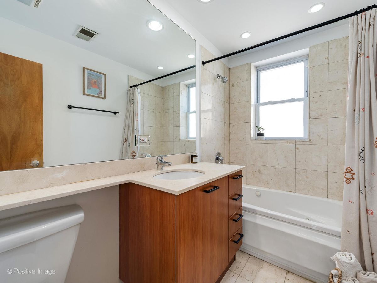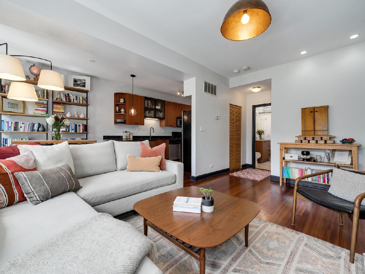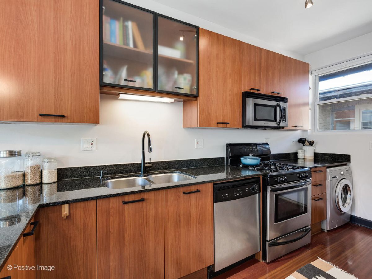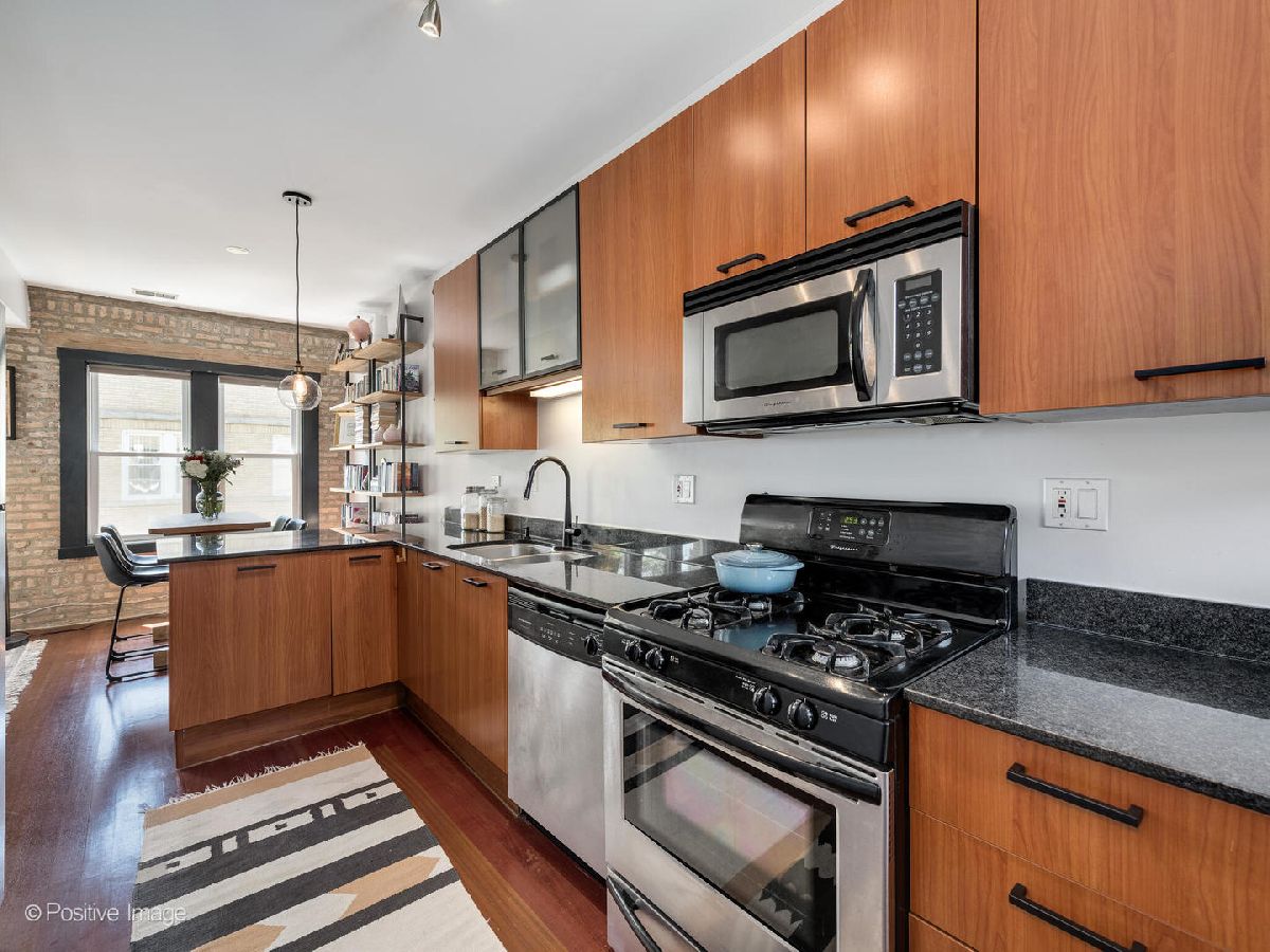 Welcome to this top floor 1 bedroom condo located in a charming courtyard building barely one block from the picturesque lakefront in Rogers Park! The moment you enter this home, you'll be greeted by tons of character including exposed brick walls, custom fixtures and a spacious layout perfect for any lifestyle. An open concept floor plan, the generously sized living room has a full wall of west-facing windows that are outfitted with high-end window treatments and flood in all day natural light. The kitchen is updated with a stainless steel appliance package, black hardware and newer faucet, granite counter tops, and breakfast bar seating for casual dining. Directly off of the kitchen is a back deck, perfect for a bistro table setup, small herb garden, flower boxes or for a compost bin. Off of the kitchen and living room is a designated dining area offering ample space for entertaining or use as a home office nook. The bedroom features a large closet, and is adjacent to the bathroom which has an extra wide vanity with great storage, a deep soaking tub and is finished with a window and natural stone tiling throughout. Not to miss is the in-unit laundry! Some of the best features of this home are the Brazilian Cherry hardwood floors, central AC/heat & entryway coat closet for additional storage. With nearly every light fixture and a bedroom fan newly installed, you are sure to appreciate the updates throughout this outstanding condo! Outside you'll find the most charming courtyard with shared tables, umbrellas & seating. Additionally, a private oversized storage closet in the basement provides extra storage. This ideal location is extremely convenient, just blocks from a myriad of neighborhood amenities including the Morse Red line, multiple CTA bus lines, parks, cafes, restaurants & so much more! Very easy street parking right outside. Don't miss the opportunity to make this exceptional home yours and experience the best of city living with the lakefront at your doorstep.