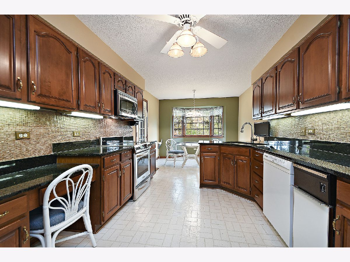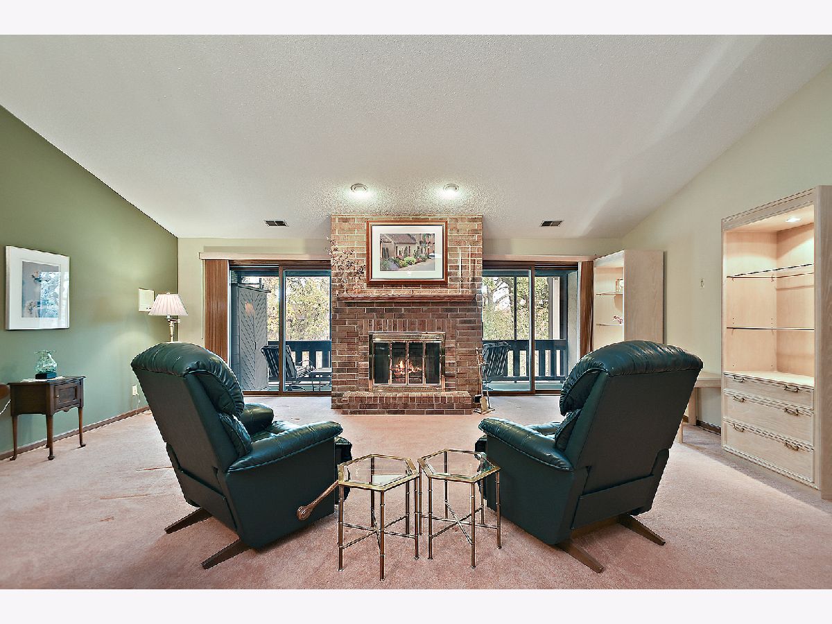 Rarely available 2FR condo with over 1900 sq. ft. approximately. You will love the spaciousness, the views from your living room, kitchen, balcony and 2nd bedroom/office of the beautiful wooded area with tall Oak Trees. Features include wood entry and walk way, vaulted ceilings, skylight, floor to ceiling brick fireplace, extra large hall closet, kitchen with granite countertop, undercabinet lighting and upgraded backsplash, newer SS appliances, bay bow window in breakfast dinette area overlooking the beautiful woods, super huge master suite with vaulted ceilings, master bathroom with walk in closet, walk in shower, whirlpool tub and double bowl sink plus skylight. Brand new HVAC and humidifer in 2020, new washer and dryer in 2020. Situated on a quiet cul de sac lot, only 4 units in this building. Entra parking.