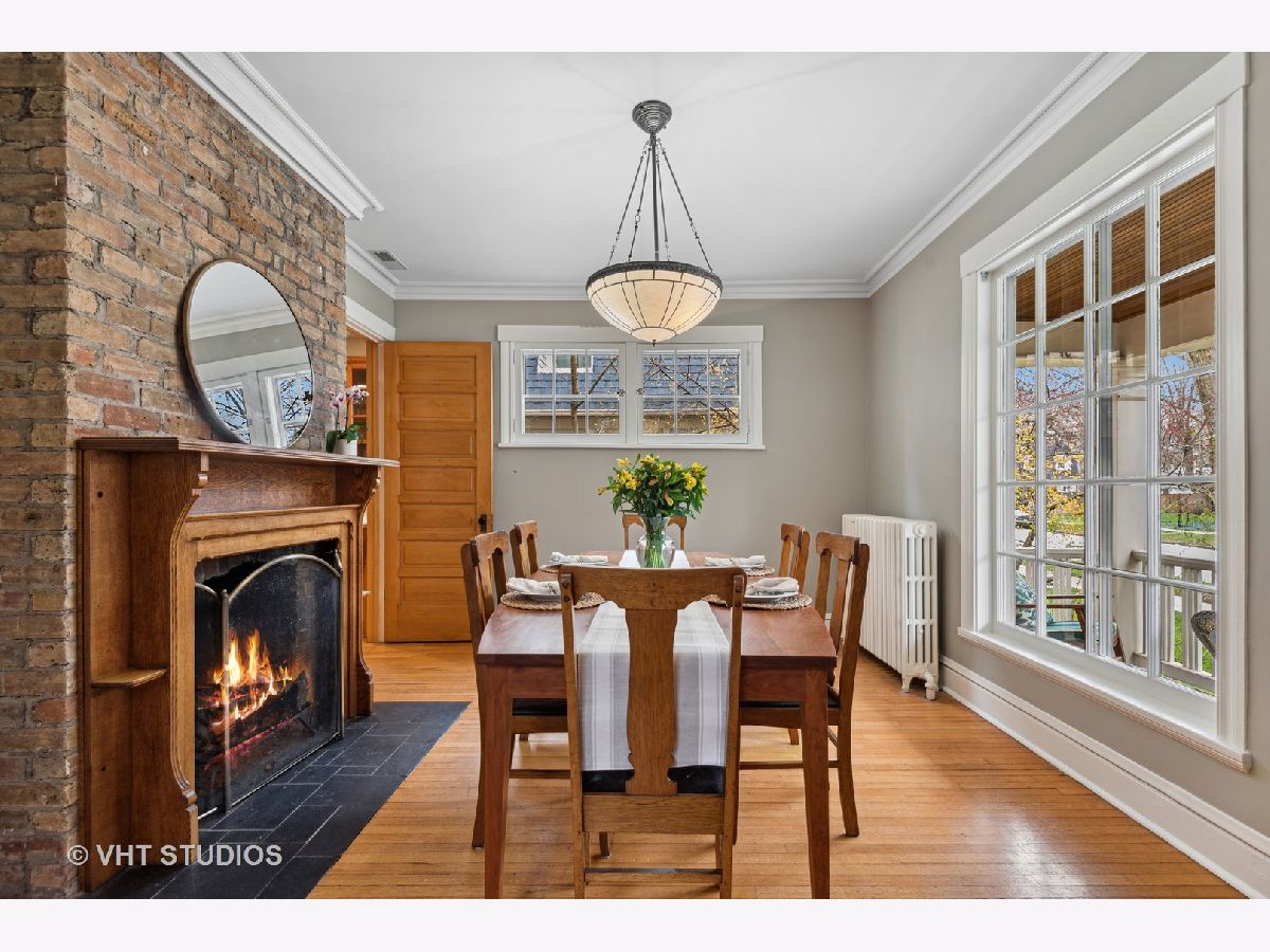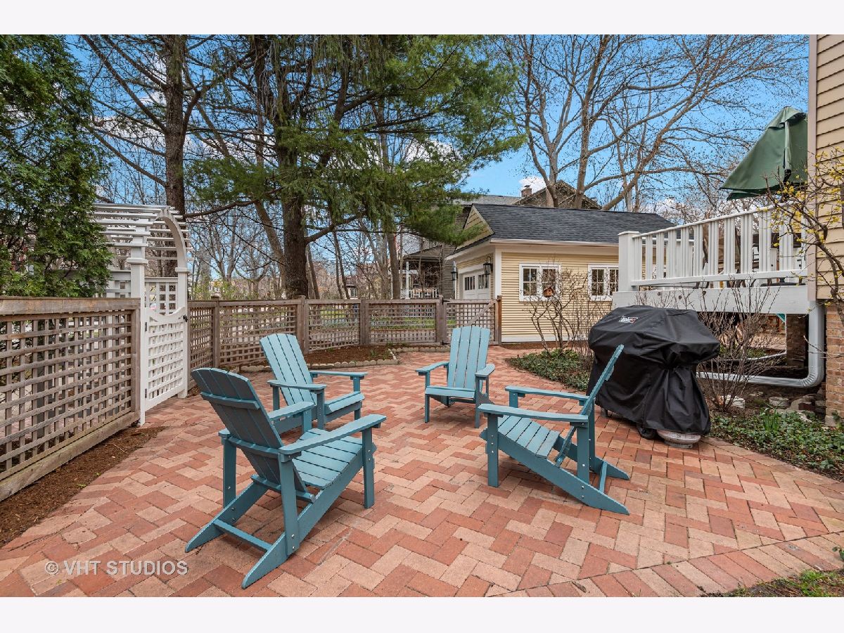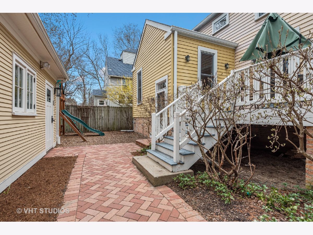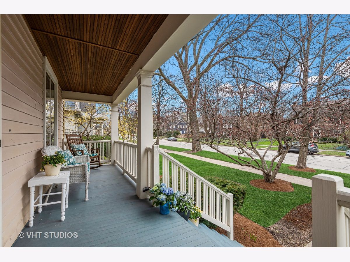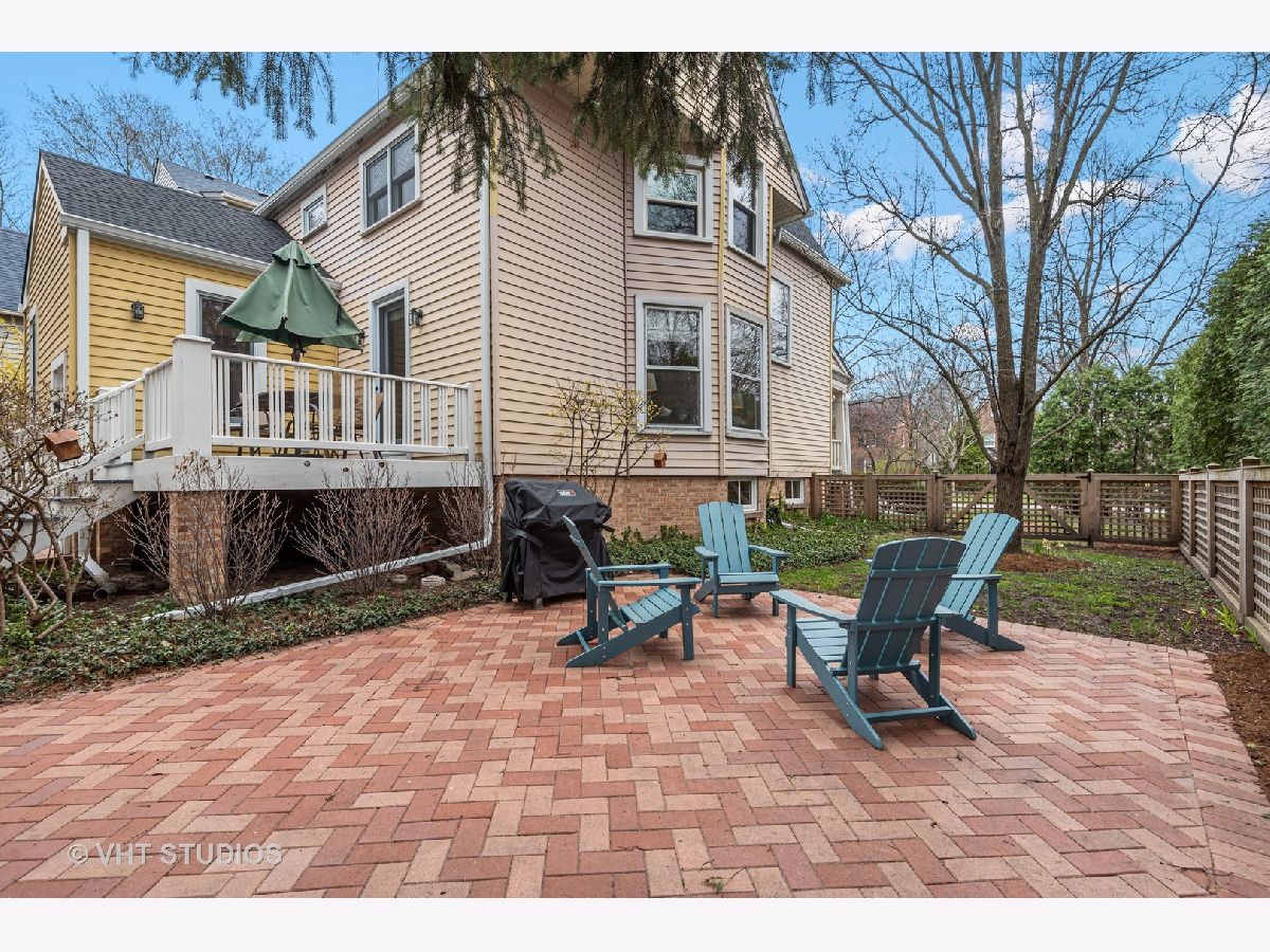 Three stories of absolute charm, architectural details and space in this wonderful Landmark Victorian style home in the Dewey School district! Designed by S.A. Jennings in 1893, this home was moved from across the street to its current location in 1957. Remodeled in 2001 with a back addition including new replacement thermopane windows, a new back hall mudroom, half bath, new stairs to the basement, remodeled kitchen, and new stairs to the third floor suite. The inviting front porch welcomes you into the front foyer with original oak staircase and the bright living room with a bay window and sitting area leading to the back deck. The dining room features a large picture window with southern exposure, an original pocket door and a wood burning fireplace. Huge open kitchen with room for a large table features cherry cabinets, maple floors, walk in pantry, Wolf range, JennAir refrigerator and Bosch dishwasher - a great space for entertaining and family gatherings! Upstairs, you will find a front bedroom with built in shelving and original oak cabinet, second bedroom with bay window, and a large third bedroom with three closets and adjacent bathroom - formally used as the primary suite. The third floor features a front bedroom with vaulted ceiling, a huge skylight and private shower bathroom - currently used as the primary suite. More finished space is located in the basement which offers separate TV watching space, play space, half bath and home office. The utility room with laundry and storage completes that level. A new one car garage with extra storage was built in 2018 with approval from the Historic Preservation Committee. Enjoy the summertime in the fenced back yard on the back deck, paver patio and adjacent play space with the included jungle gym! Ideal location within blocks of downtown Evanston's shops, restaurants, coffee houses; Dewey School, the lakefront and both the Metra and CTA trains. Improvements since 2013 include new roof (2021), newer kitchen appliances, third floor AC, remodeled basement half bath, and new custom garage built with architectural cedar. Please exclude the dining room light fixture.
