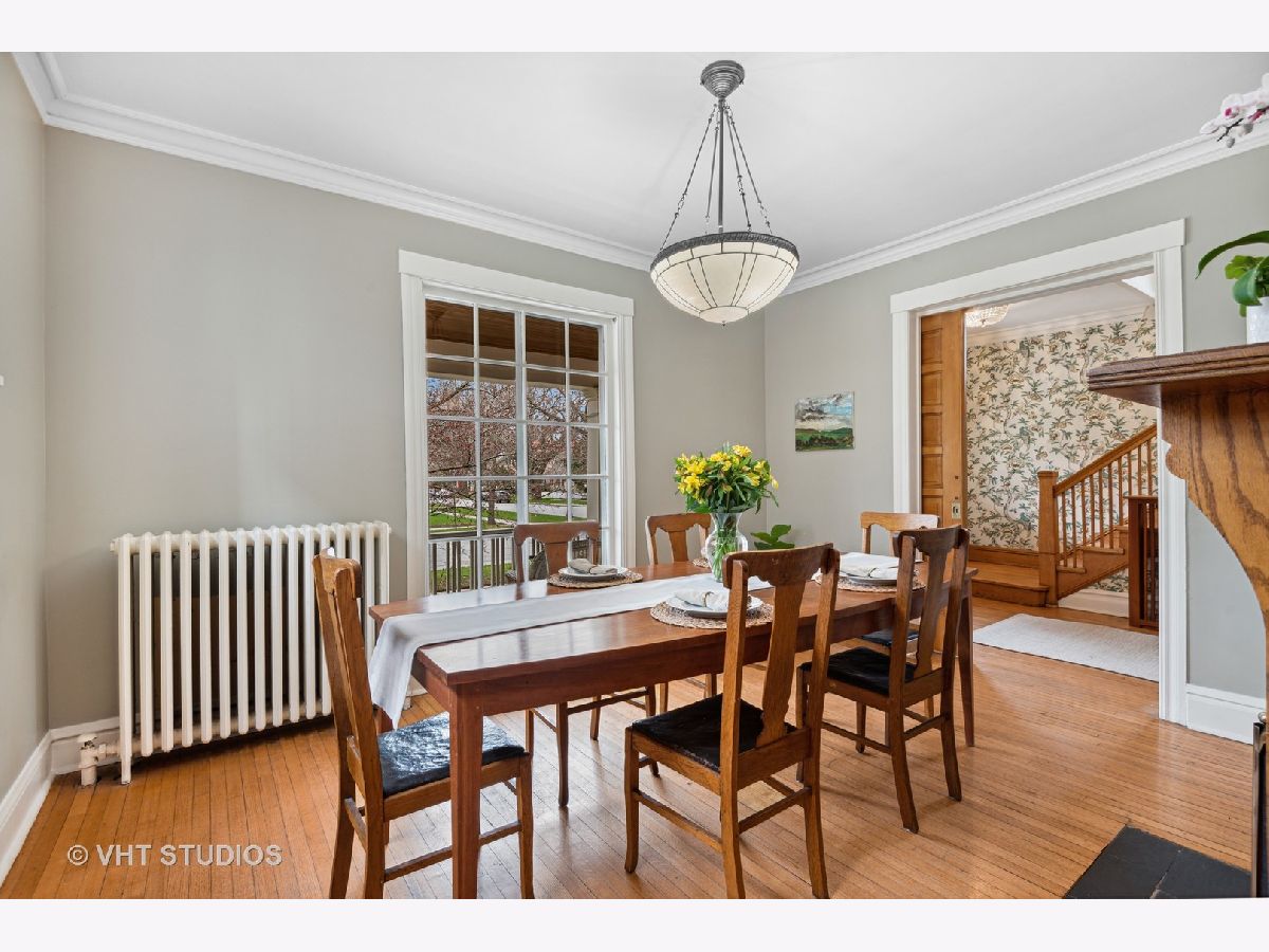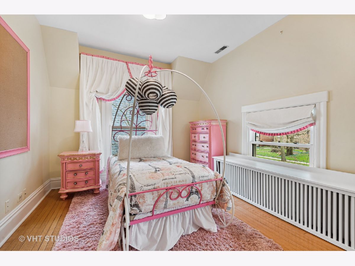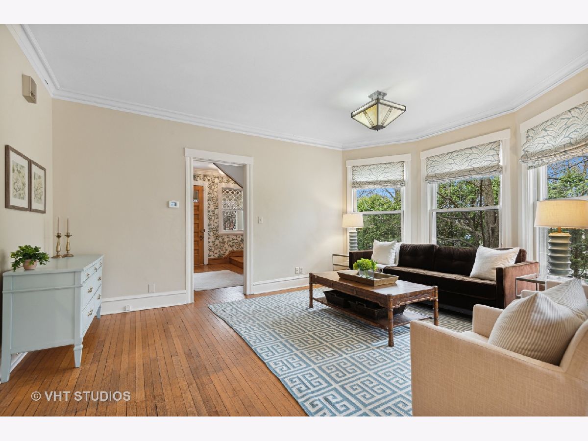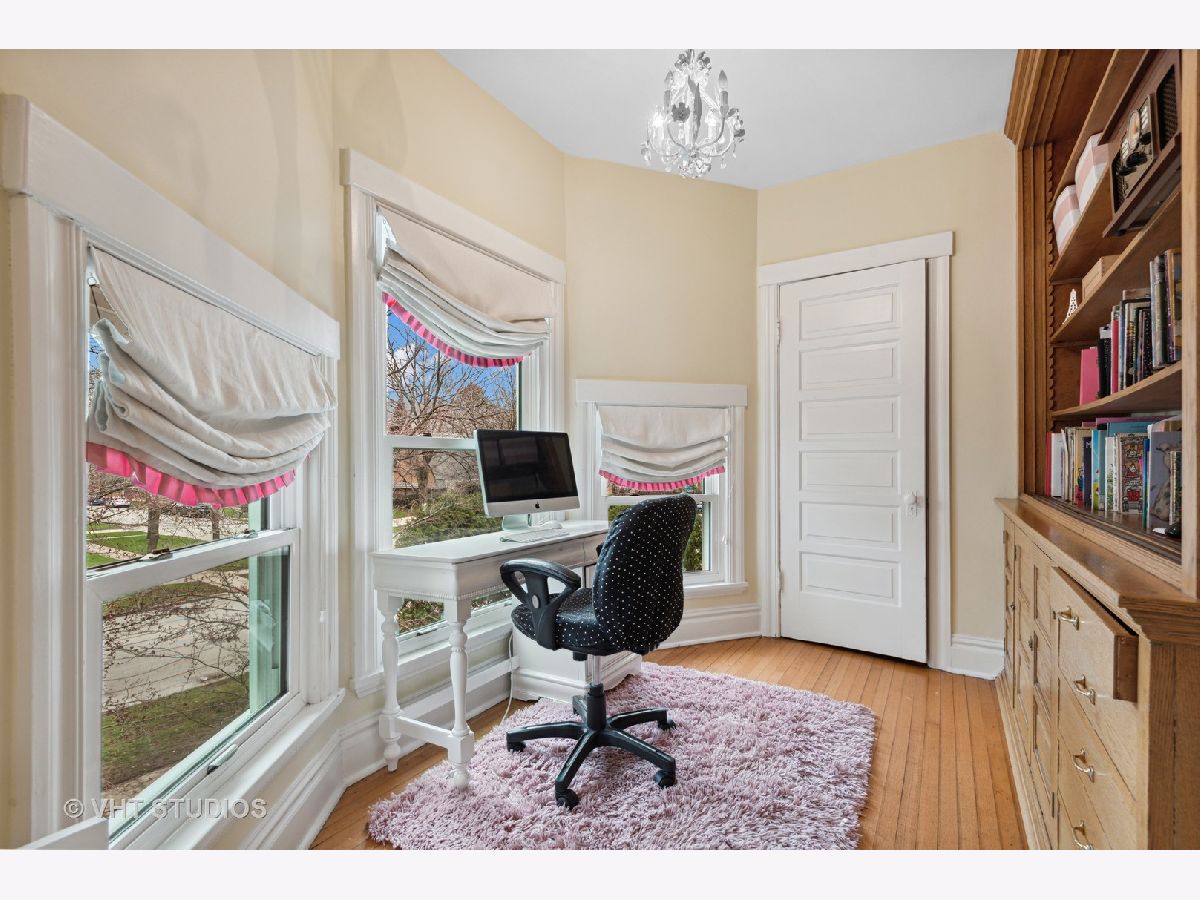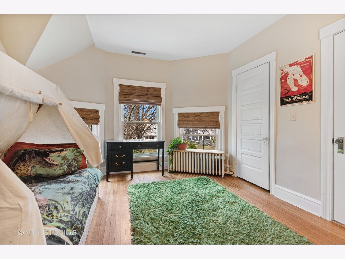 Three stories of absolute charm, architectural details and space in this wonderful Landmark Victorian style home in the Dewey School district! Designed by S.A. Jennings in 1893, this home was moved from across the street to its current location in 1957. Remodeled in 2001 with a back addition including new replacement thermopane windows, a new back hall mudroom, half bath, new stairs to the basement, remodeled kitchen, and new stairs to the third floor suite. The inviting front porch welcomes you into the front foyer with original oak staircase and the bright living room with a bay window and sitting area leading to the back deck. The dining room features a large picture window with southern exposure, an original pocket door and a wood burning fireplace. Huge open kitchen with room for a large table features cherry cabinets, maple floors, walk in pantry, Wolf range, JennAir refrigerator and Bosch dishwasher - a great space for entertaining and family gatherings! Upstairs, you will find a front bedroom with built in shelving and original oak cabinet, second bedroom with bay window, and a large third bedroom with three closets and adjacent bathroom - formally used as the primary suite. The third floor features a front bedroom with vaulted ceiling, a huge skylight and private shower bathroom - currently used as the primary suite. More finished space is located in the basement which offers separate TV watching space, play space, half bath and home office. The utility room with laundry and storage completes that level. A new one car garage with extra storage was built in 2018 with approval from the Historic Preservation Committee. Enjoy the summertime in the fenced back yard on the back deck, paver patio and adjacent play space with the included jungle gym! Ideal location within blocks of downtown Evanston's shops, restaurants, coffee houses; Dewey School, the lakefront and both the Metra and CTA trains. Improvements since 2013 include new roof (2021), newer kitchen appliances, third floor AC, remodeled basement half bath, and new custom garage built with architectural cedar. Please exclude the dining room light fixture.