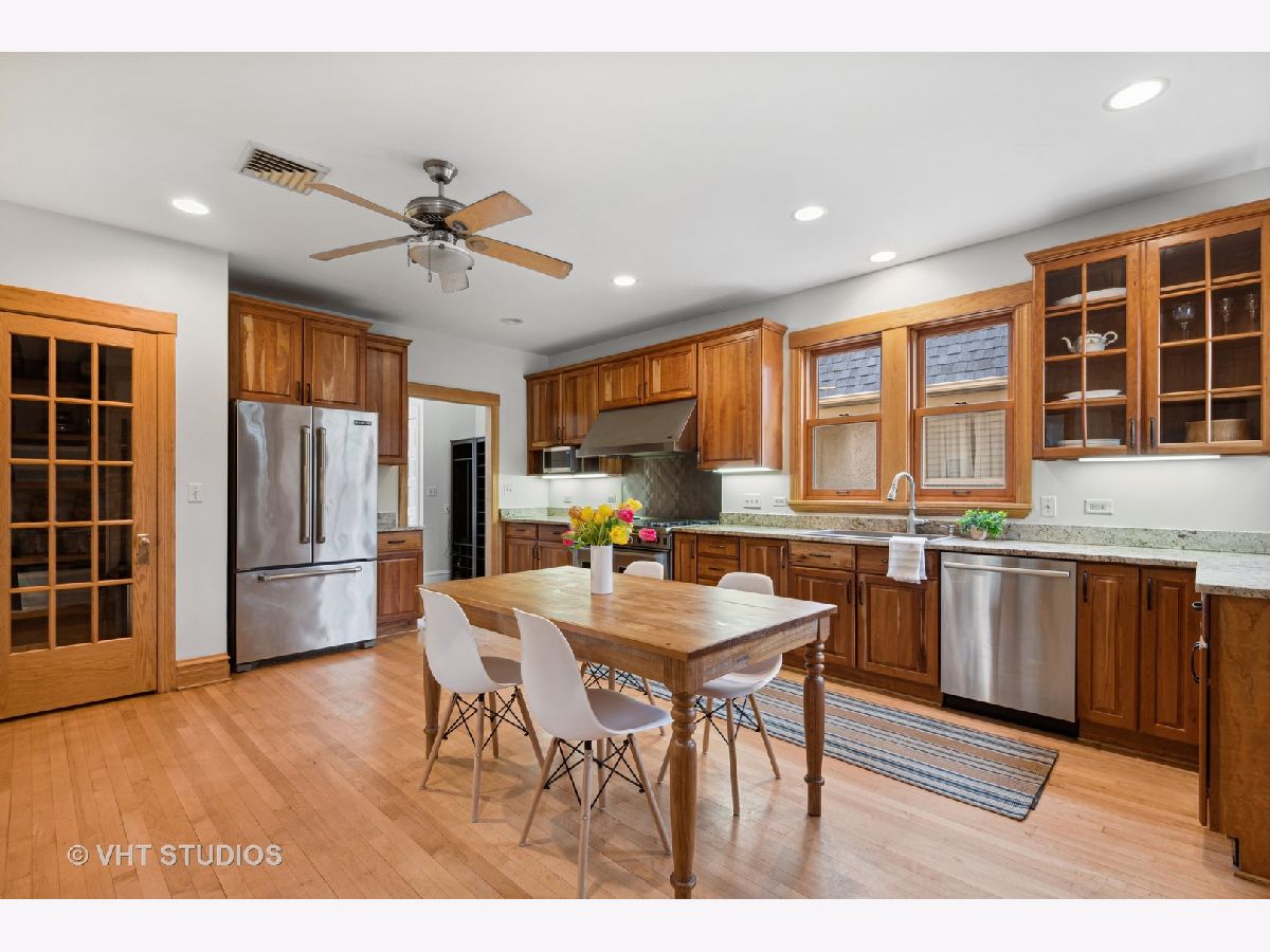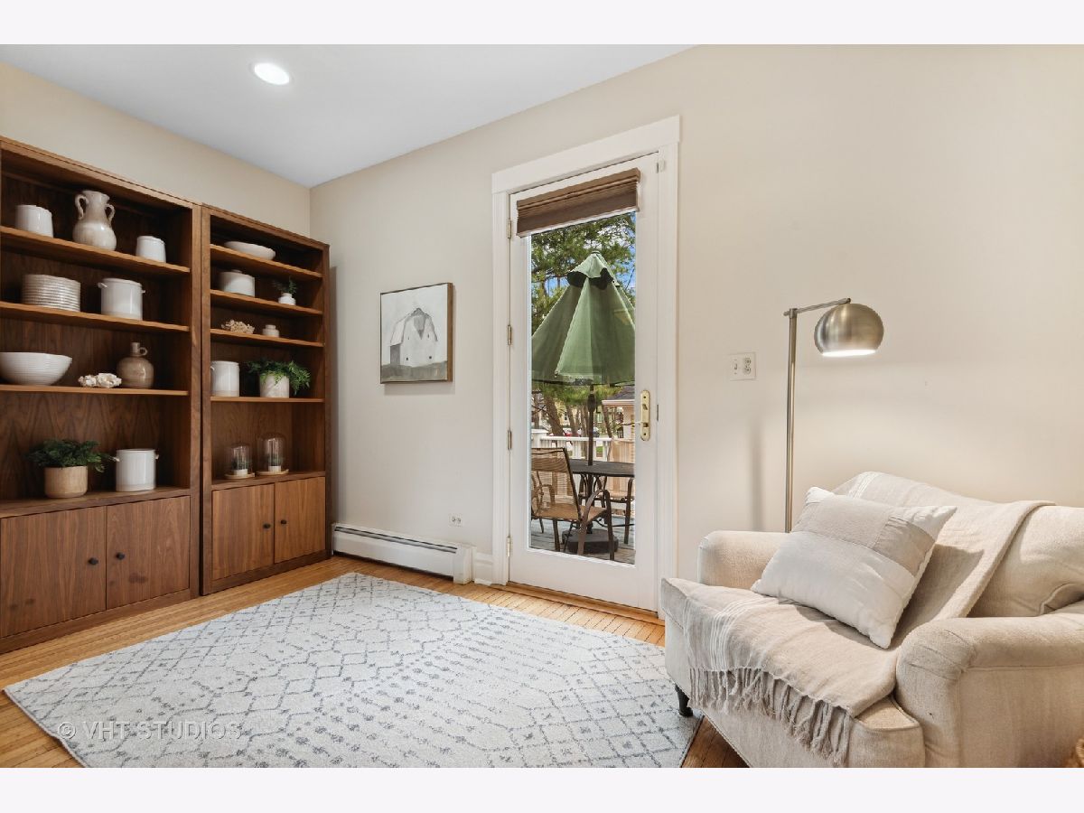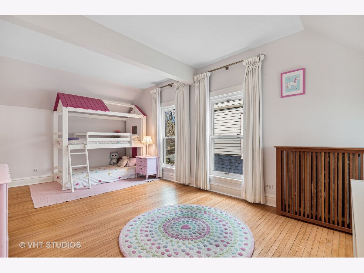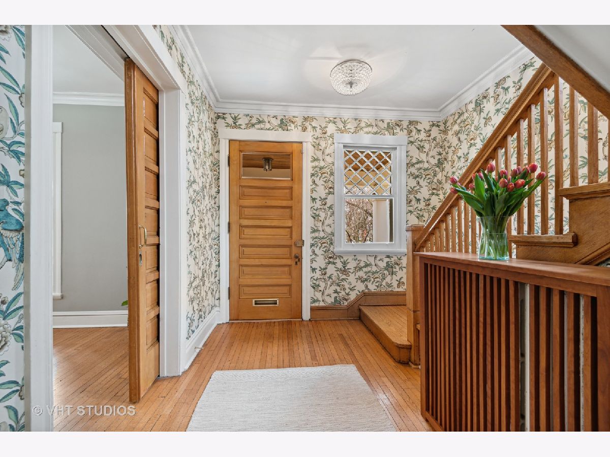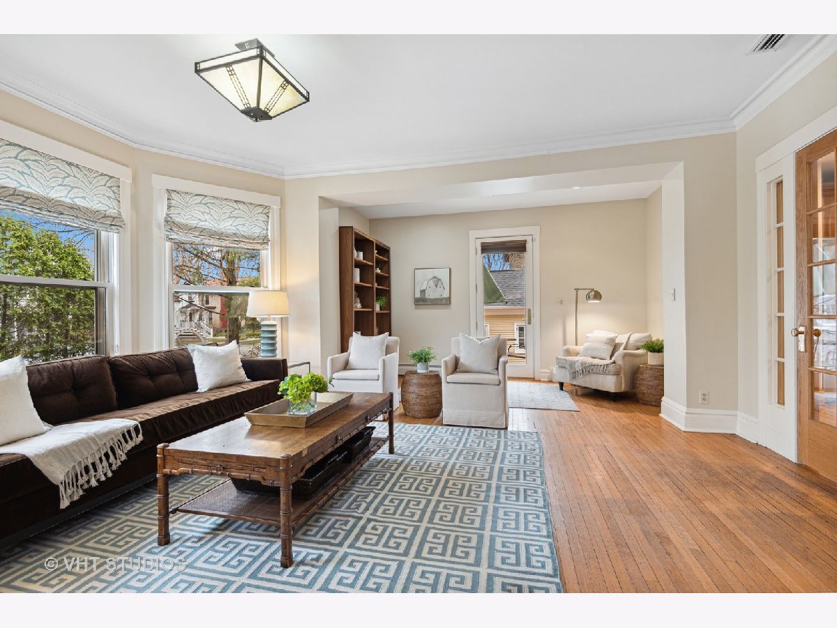 Three stories of absolute charm, architectural details and space in this wonderful Landmark Victorian style home in the Dewey School district! Designed by S.A. Jennings in 1893, this home was moved from across the street to its current location in 1957. Remodeled in 2001 with a back addition including new replacement thermopane windows, a new back hall mudroom, half bath, new stairs to the basement, remodeled kitchen, and new stairs to the third floor suite. The inviting front porch welcomes you into the front foyer with original oak staircase and the bright living room with a bay window and sitting area leading to the back deck. The dining room features a large picture window with southern exposure, an original pocket door and a wood burning fireplace. Huge open kitchen with room for a large table features cherry cabinets, maple floors, walk in pantry, Wolf range, JennAir refrigerator and Bosch dishwasher - a great space for entertaining and family gatherings! Upstairs, you will find a front bedroom with built in shelving and original oak cabinet, second bedroom with bay window, and a large third bedroom with three closets and adjacent bathroom - formally used as the primary suite. The third floor features a front bedroom with vaulted ceiling, a huge skylight and private shower bathroom - currently used as the primary suite. More finished space is located in the basement which offers separate TV watching space, play space, half bath and home office. The utility room with laundry and storage completes that level. A new one car garage with extra storage was built in 2018 with approval from the Historic Preservation Committee. Enjoy the summertime in the fenced back yard on the back deck, paver patio and adjacent play space with the included jungle gym! Ideal location within blocks of downtown Evanston's shops, restaurants, coffee houses; Dewey School, the lakefront and both the Metra and CTA trains. Improvements since 2013 include new roof (2021), newer kitchen appliances, third floor AC, remodeled basement half bath, and new custom garage built with architectural cedar. Please exclude the dining room light fixture.