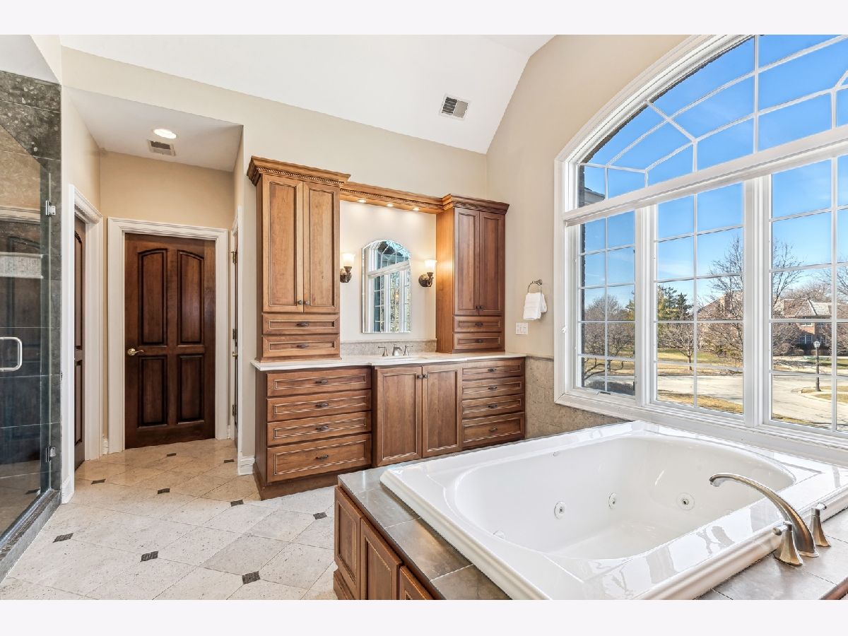 Timeless appeal, exquisite finishes and amazing attention to detail abounds in this custom Werchek built home. Thoughtfully designed for enjoying time with loved ones and friends along with times entertaining. This all brick home captivates breath taking views of Canterbury Lake through expansive windows. Enjoy summer eve on the wrap around deck overlooking the lake. Canterbury Lake boasts fishing, paddle boating, paddle boarding and ice skating. You'll recognize the thoughtful details from the moment you enter the elegant foyer with the sweeping grand staircase. Your focus immediately flows to the beautiful lake views, then to the realization of the exceptional quality. The living room and dining rooms boast expansive bayed windows, high profile crown moldings and hardwood flooring. The home office (library) has custom crafted cherry built ins. The Great Room beckons immediate attention with a soaring two story ceiling, an entire wall of double stacked palladian windows, a full brick fireplace, and hardwood flooring. The gourmet kitchen has newer applicances, granite counters, custom crafted cabinets, and a large bayed breakfast room inviting spectacular lake views. Enjoy two staircases, the formal bridal stairs to primary suite and the secondary provides easy access to the additional bedrooms. Retreat to the primary suite with a coffered ceilings, and peaceful suite with a coffered ceiling, and peaceful lake views through an expansive Palladian windows. The remodeled spa bath boasts his/her vanities, a jetted tub, and a separate shower. Also enjoy a large walk in the large walk in closet. All bedrooms have walk in closets. Two of the three additional bedrooms have expansive bayed windows. The two additional baths are designed with separate showers, bathing tubs, and generous sized vanities. The second floor also hosts the laundry room. Rarely available, a walk out lower level finished with every detail as the rest of the home. Perfect for entertaining and hosting graduation parties, etc. with a large rec room, family room, full service custom crafted cherry bar (2nd kitchen), all with hardwood flooring. The 5th bedroom with a full bath creates an extended family living quarters, nanny quarters. 3 car garage with a 4th bay for storage, high pitched newly replace roof. Award winning schools, minutes to the village square, parks, walking paths. Truly a special place to call HOME.